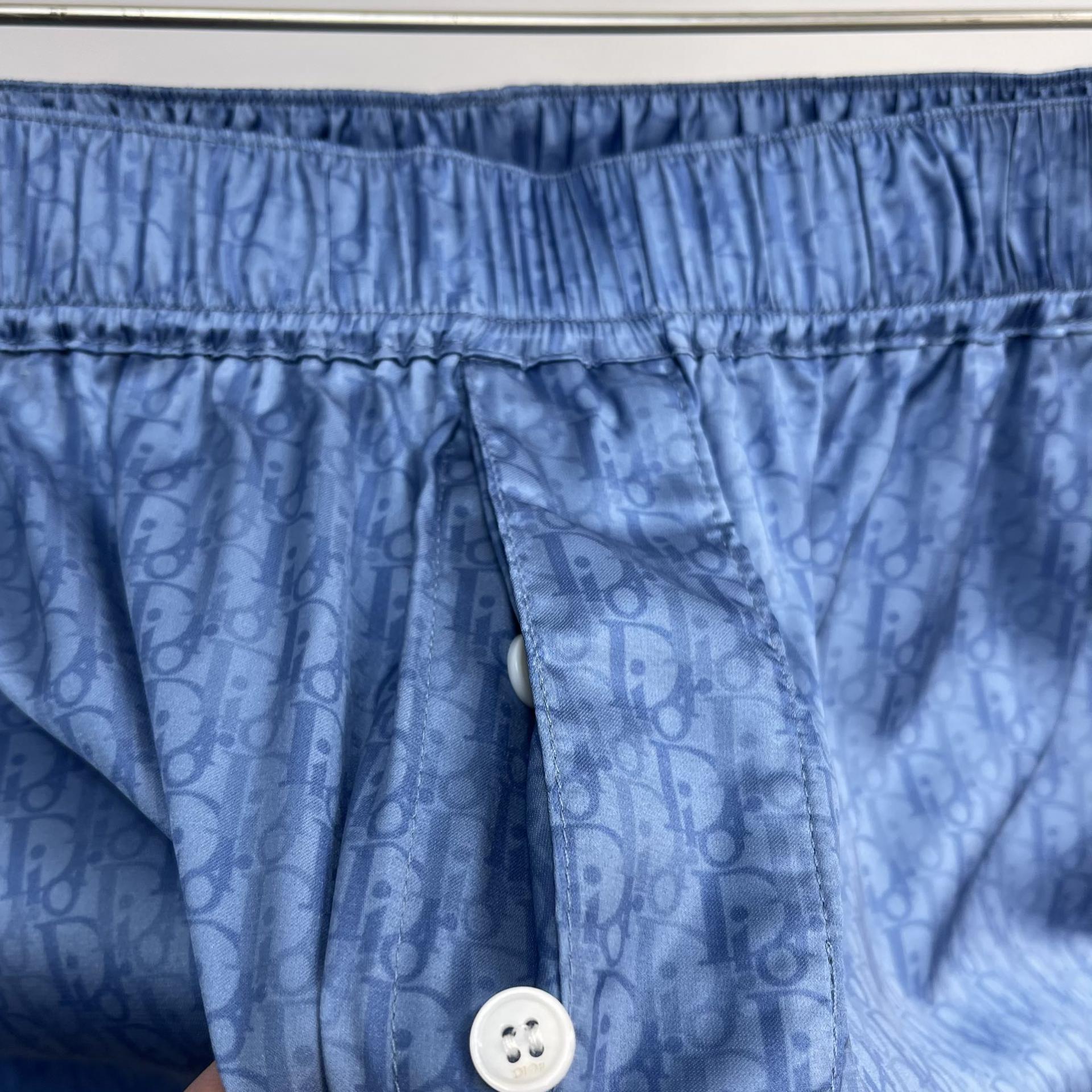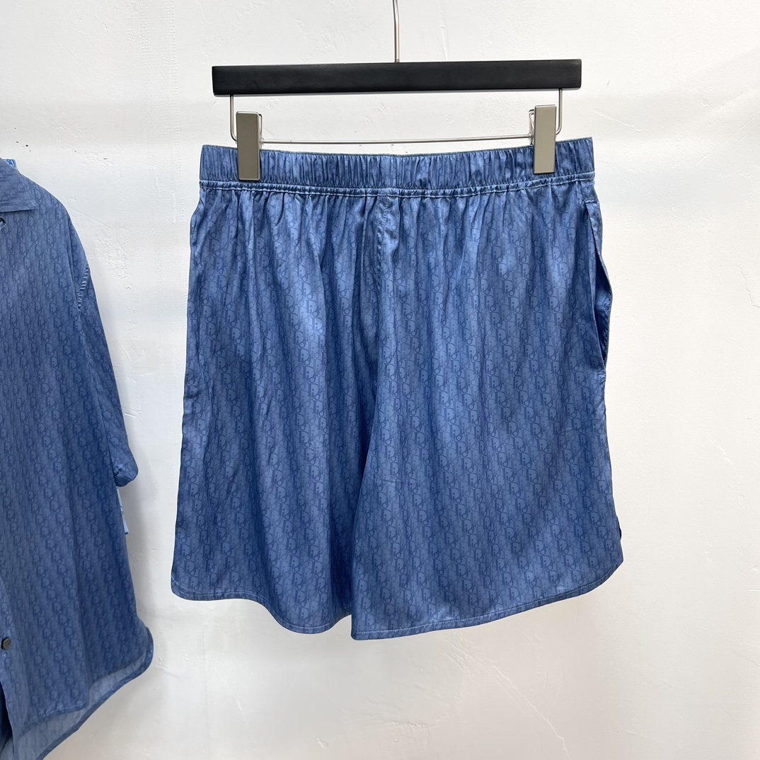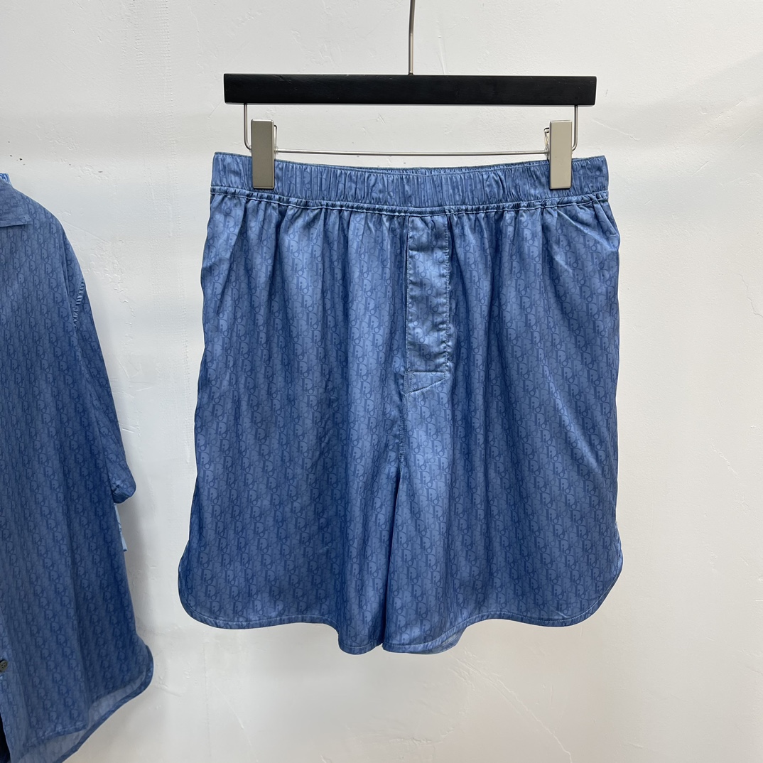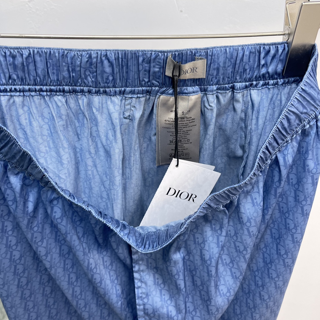 디올 오블리크 실크 코튼 자카드 쇼츠 블루