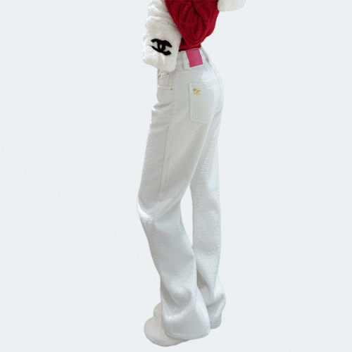 샤넬 로고 메탈 데님 팬츠 화이트