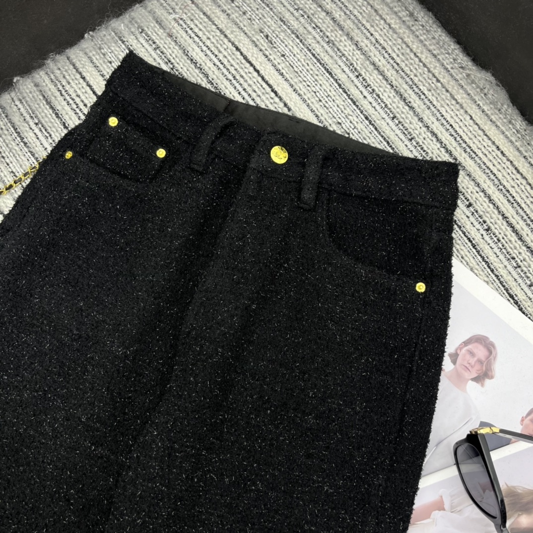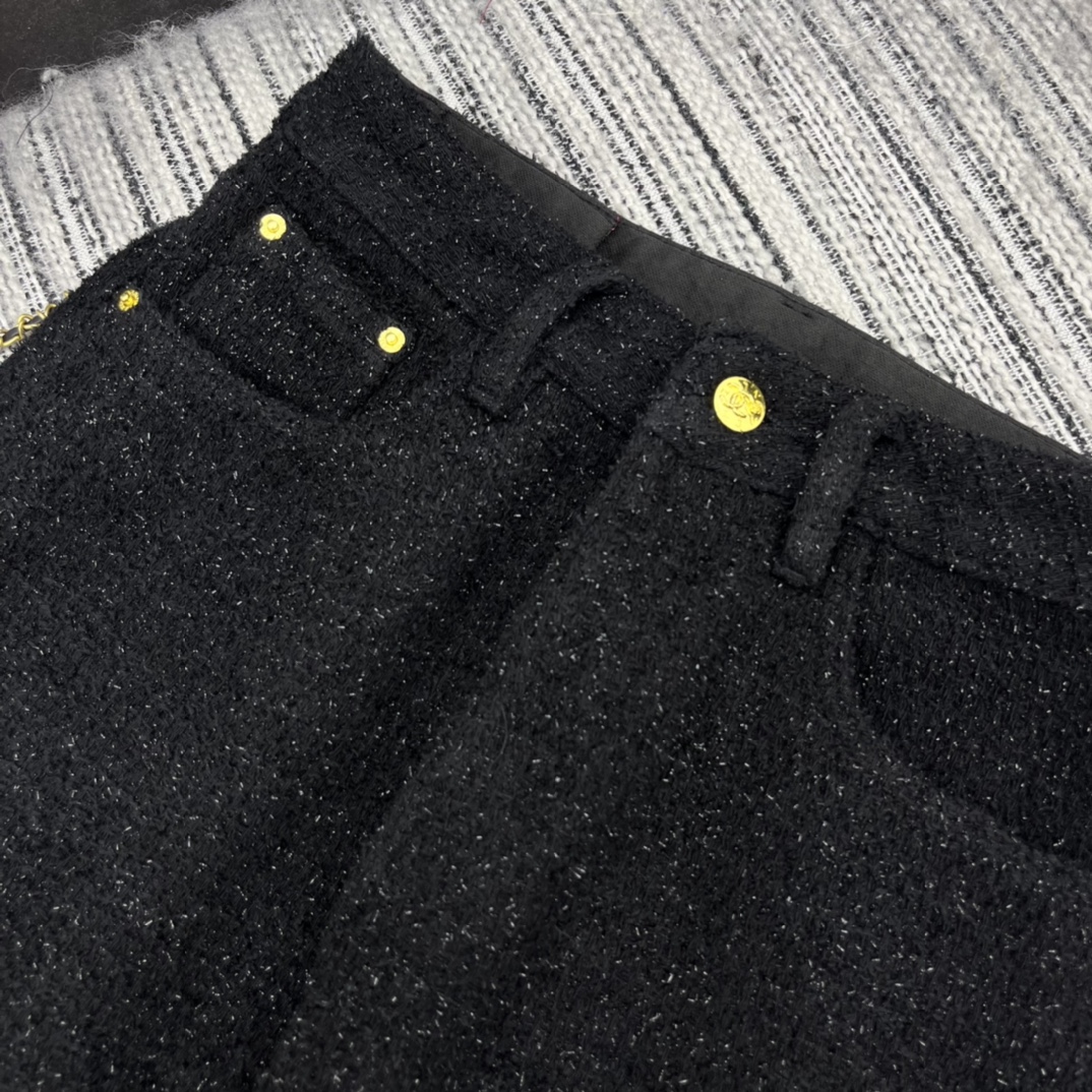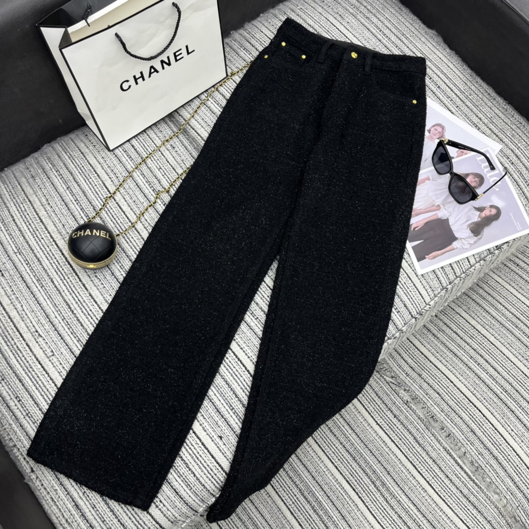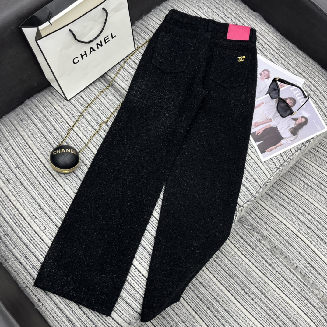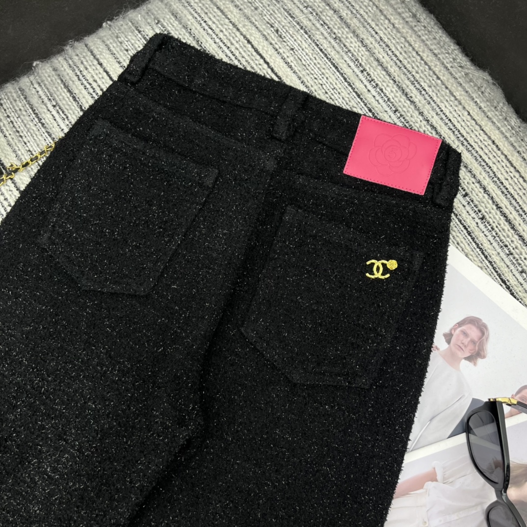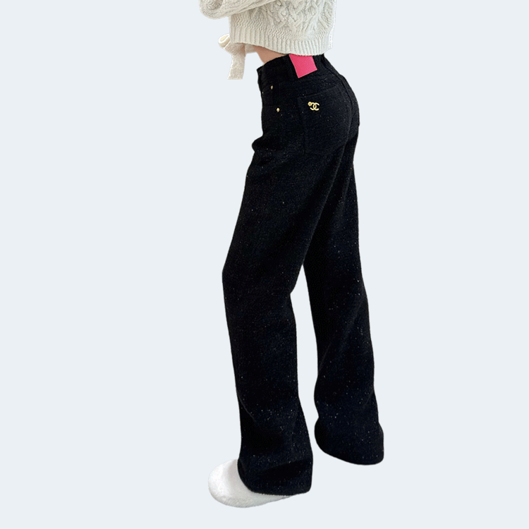 샤넬 로고 메탈 데님 팬츠 블랙