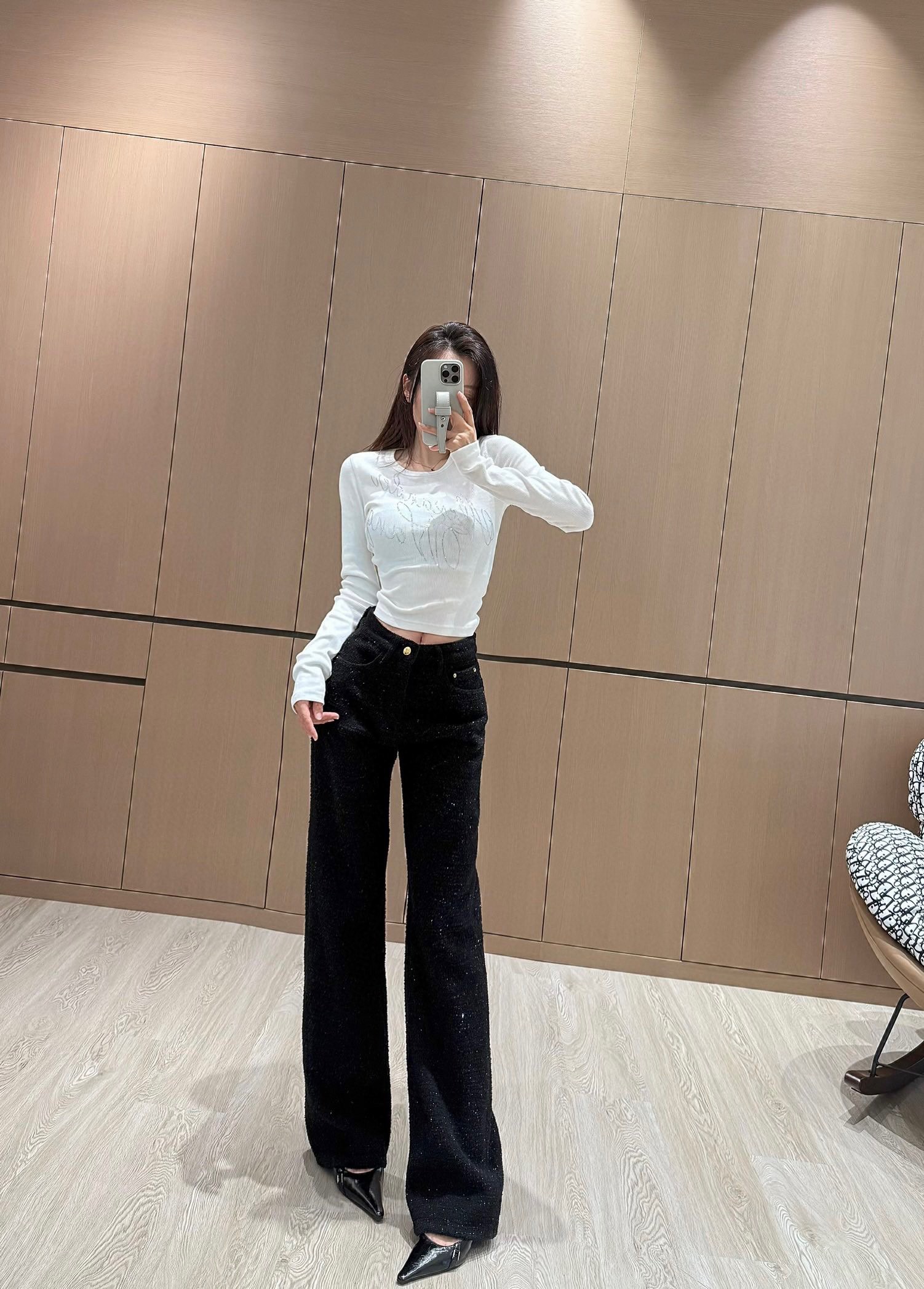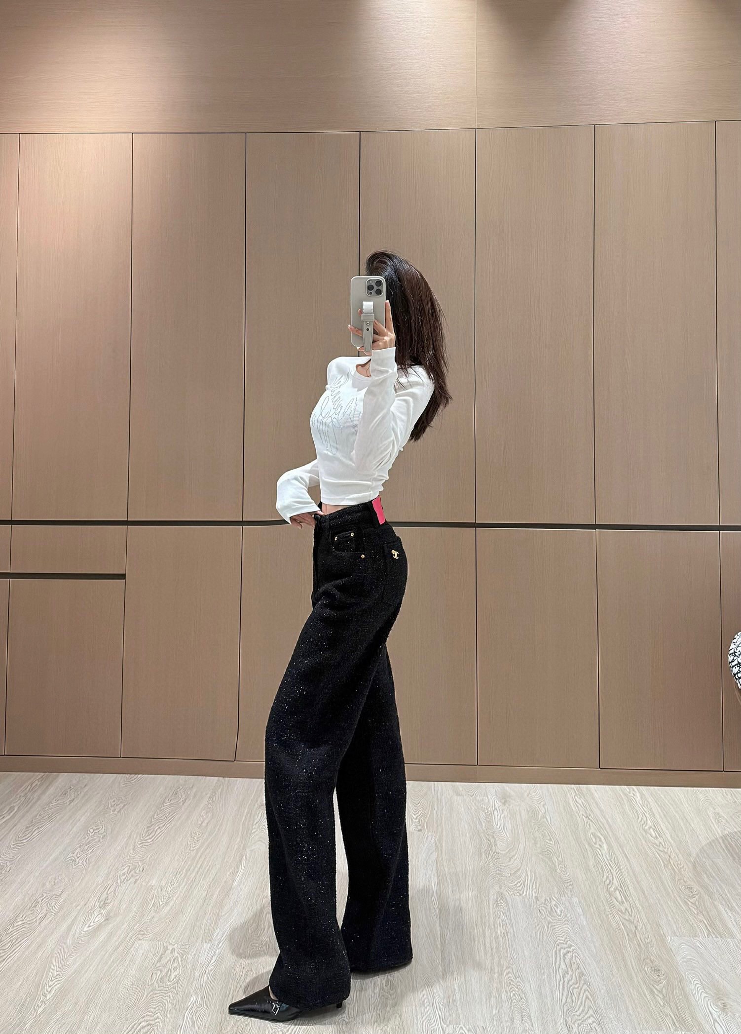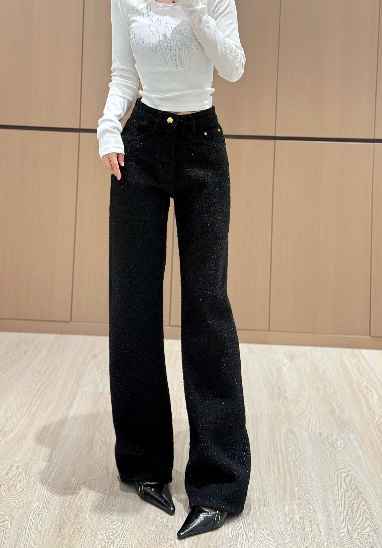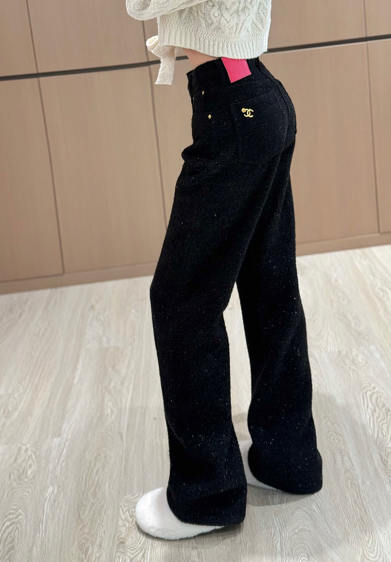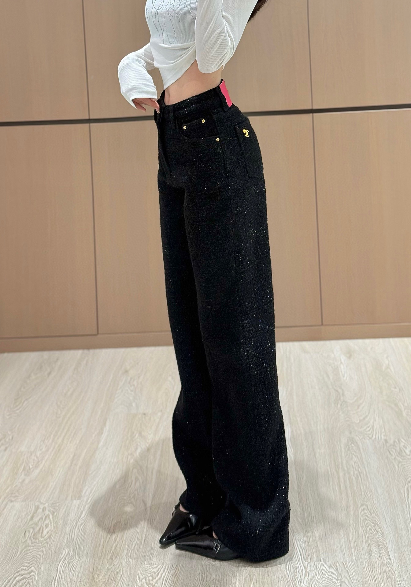 샤넬 로고 메탈 데님 팬츠 블랙