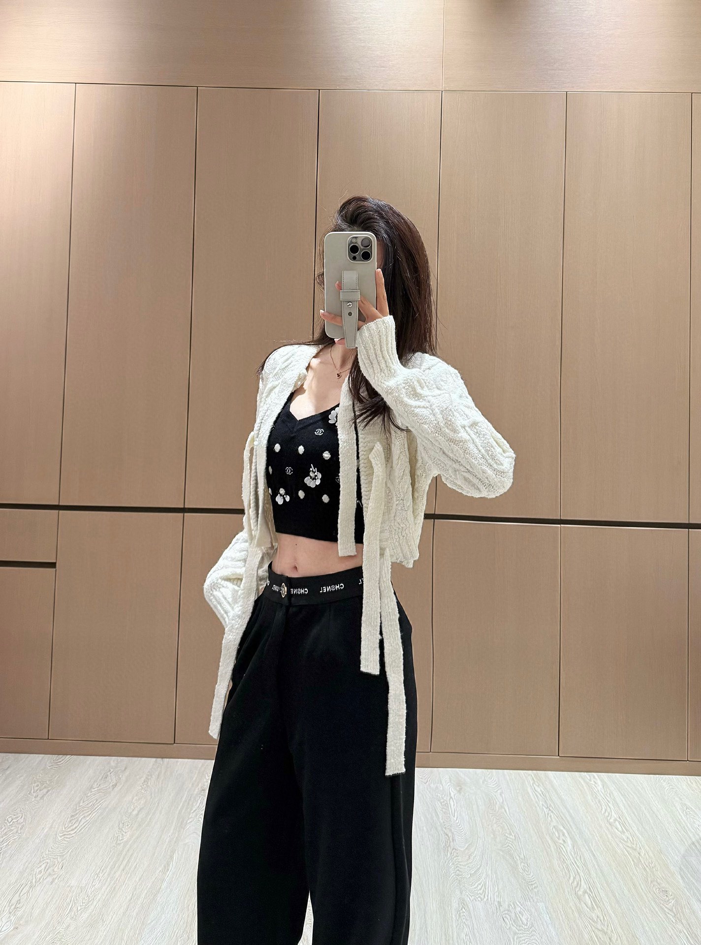 샤넬 모노그램 프린트 웹 팬츠 화이트