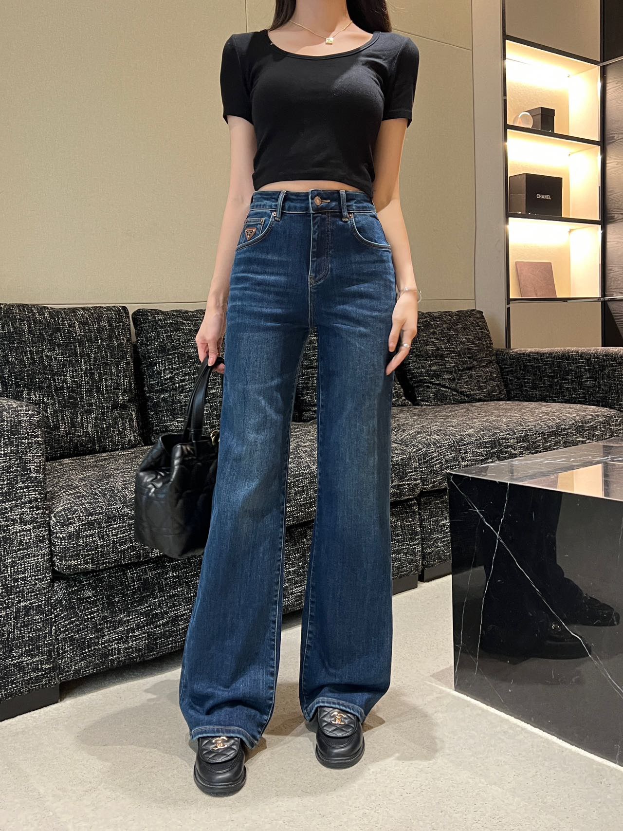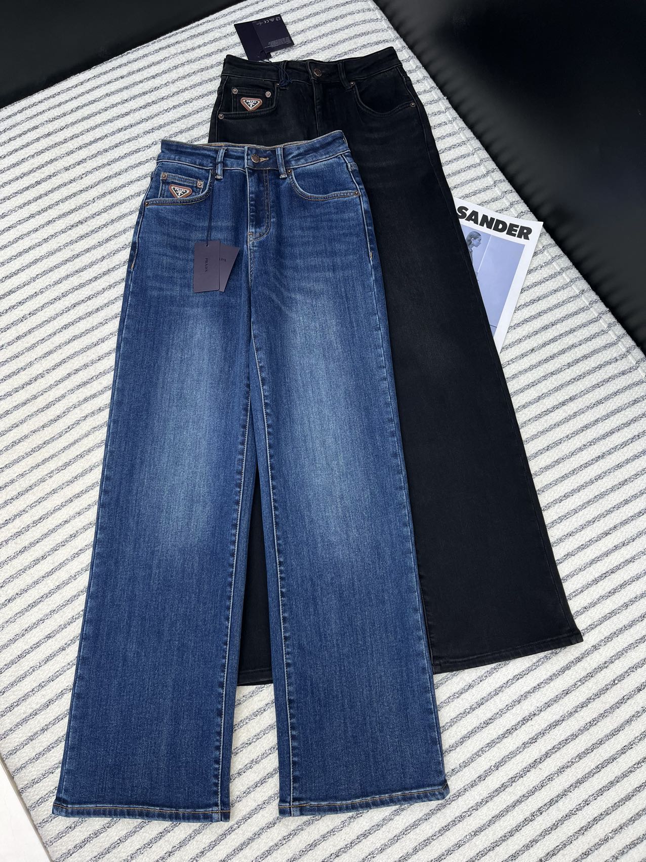 프라다 트라이앵글 로고 진 블랙