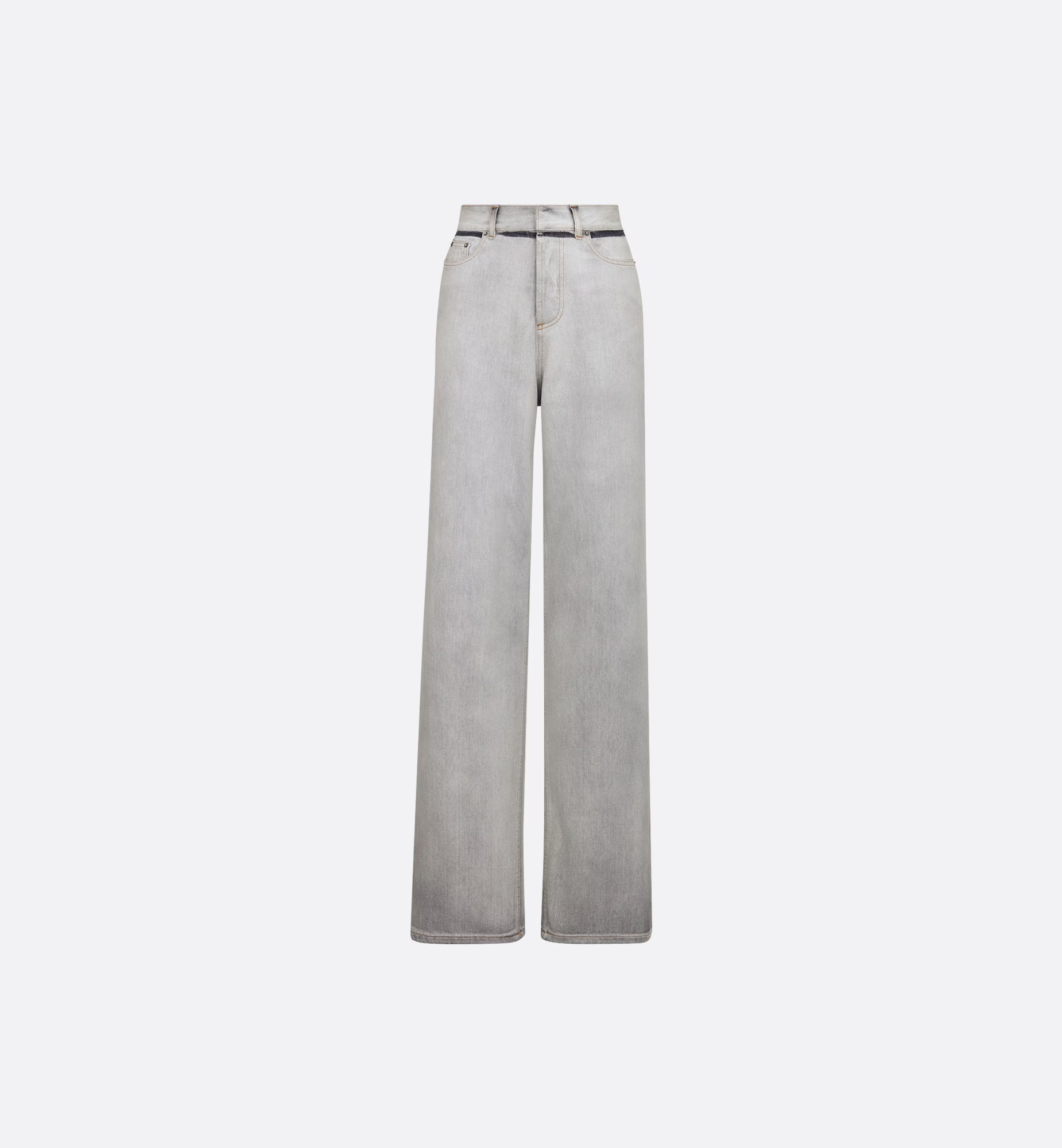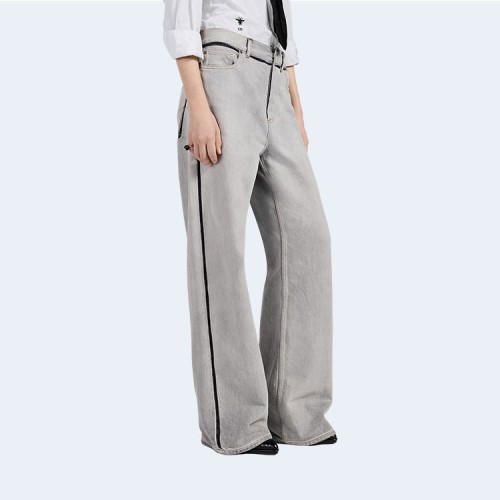 디올 라이트 그레이 코튼 데님 플레어 팬츠