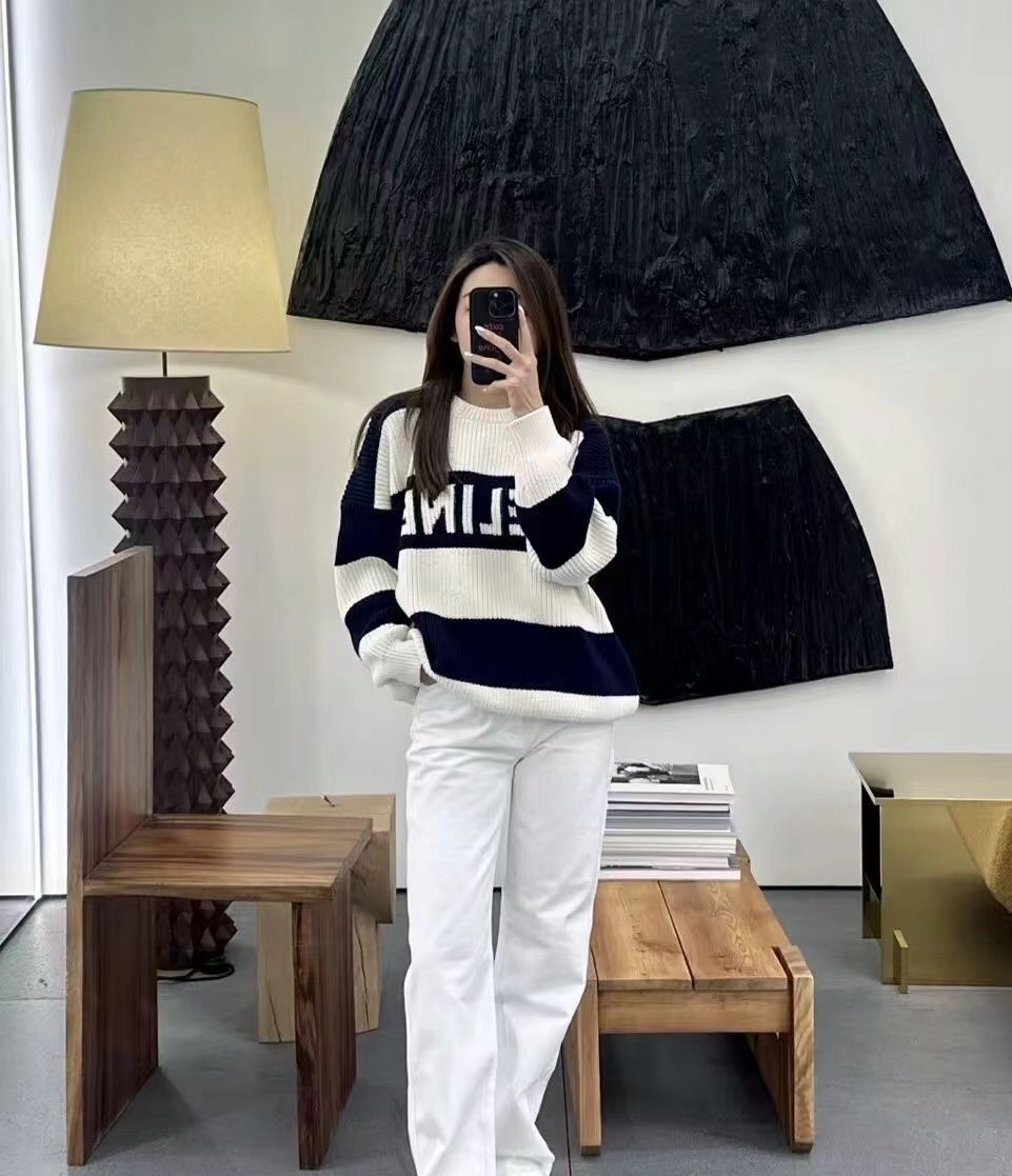 셀린느 스트라이프 코튼 오버사이즈 스웨터