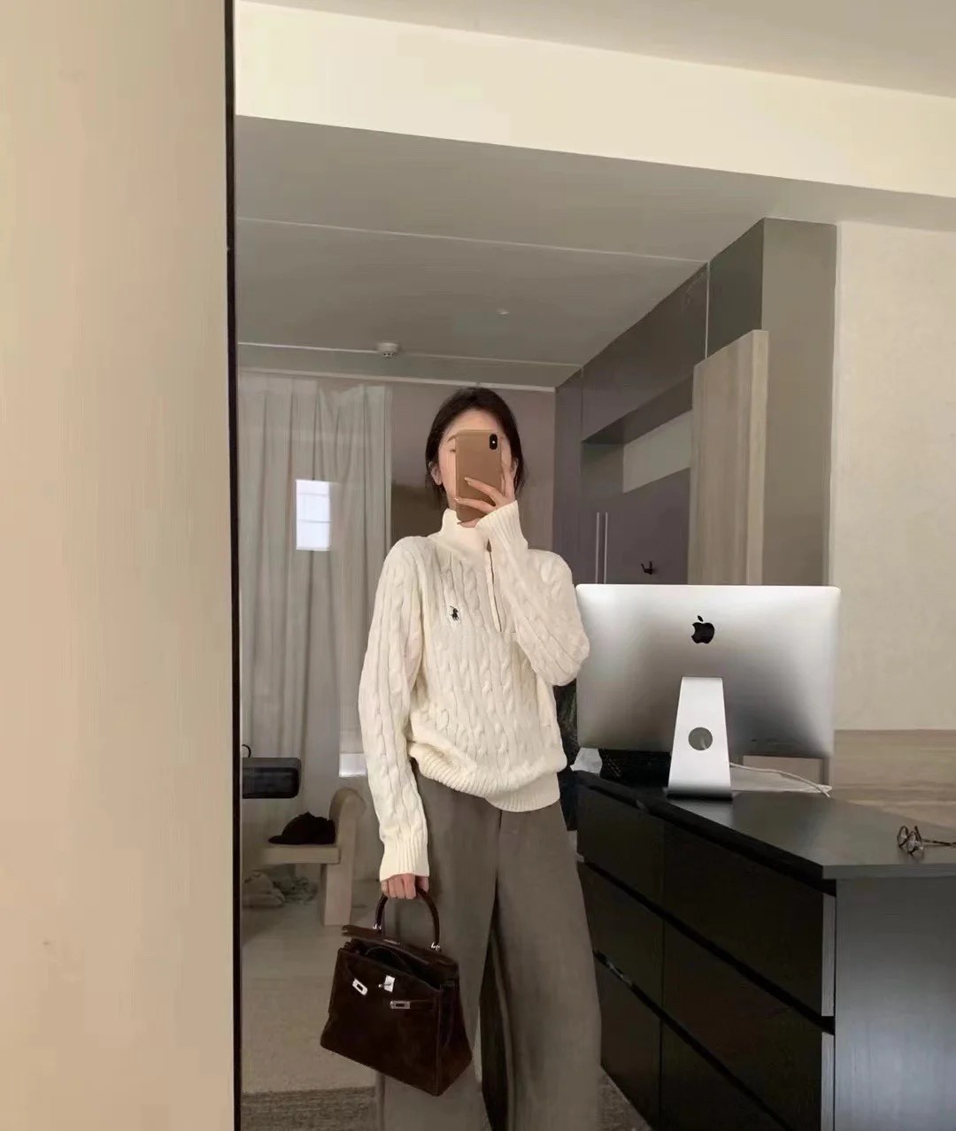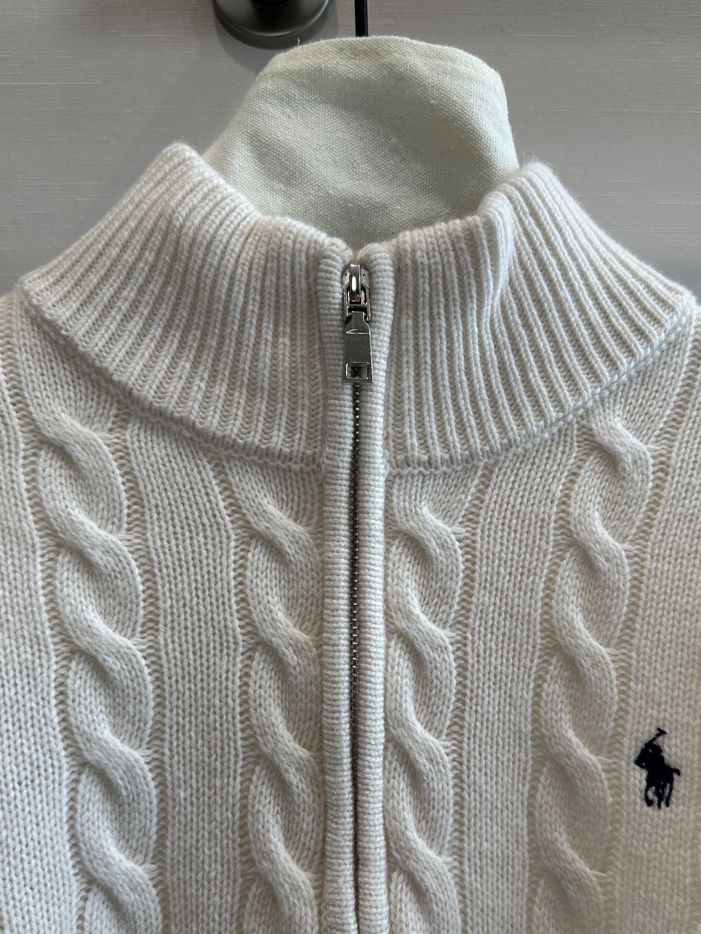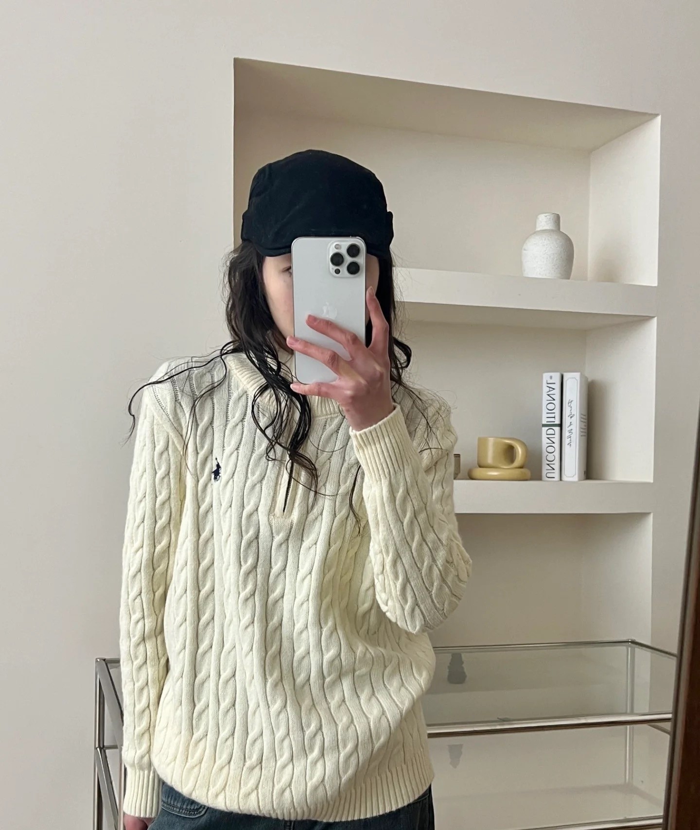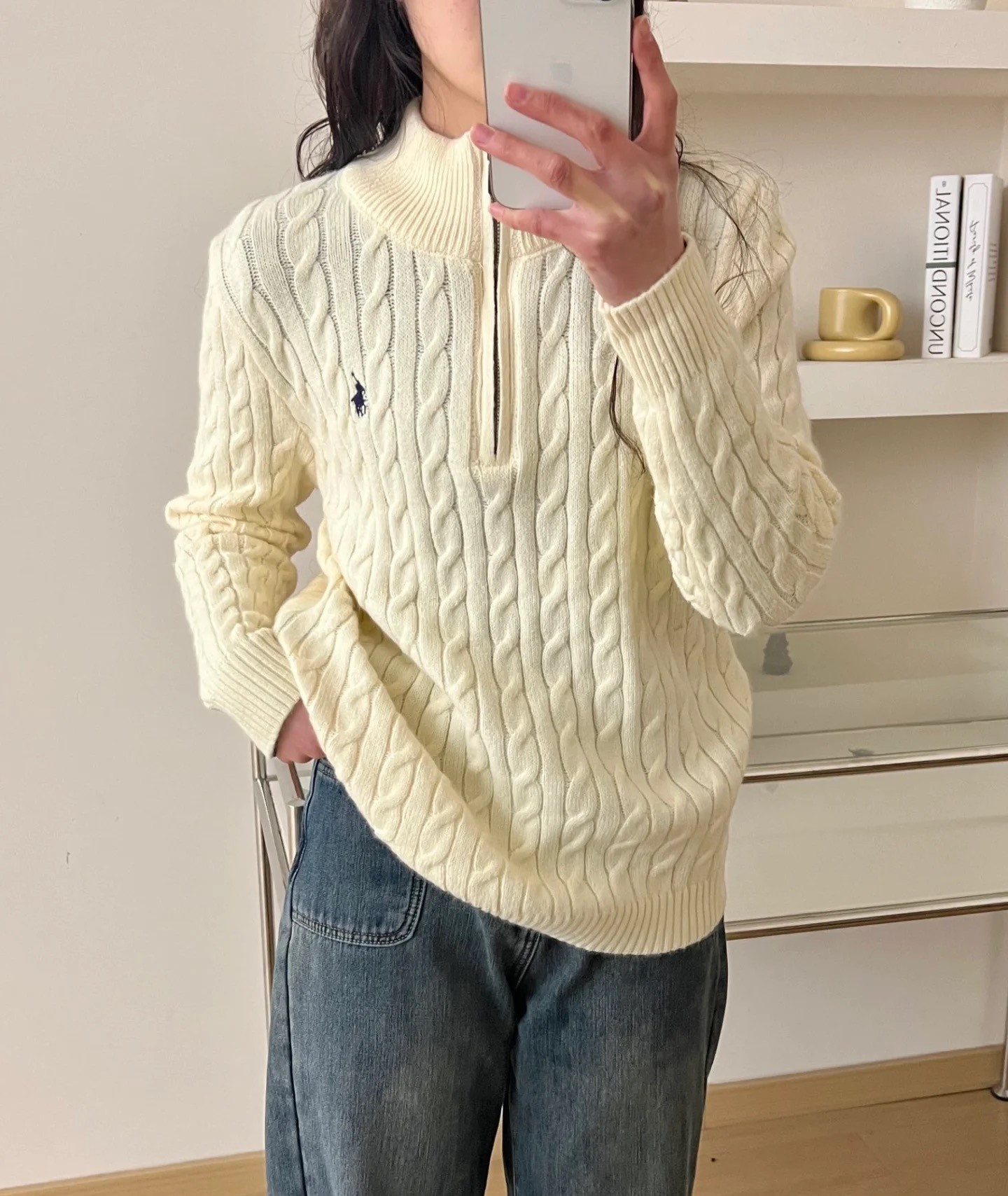 폴로 랄프로렌 케이블 쿼터 니트집업 아이보리