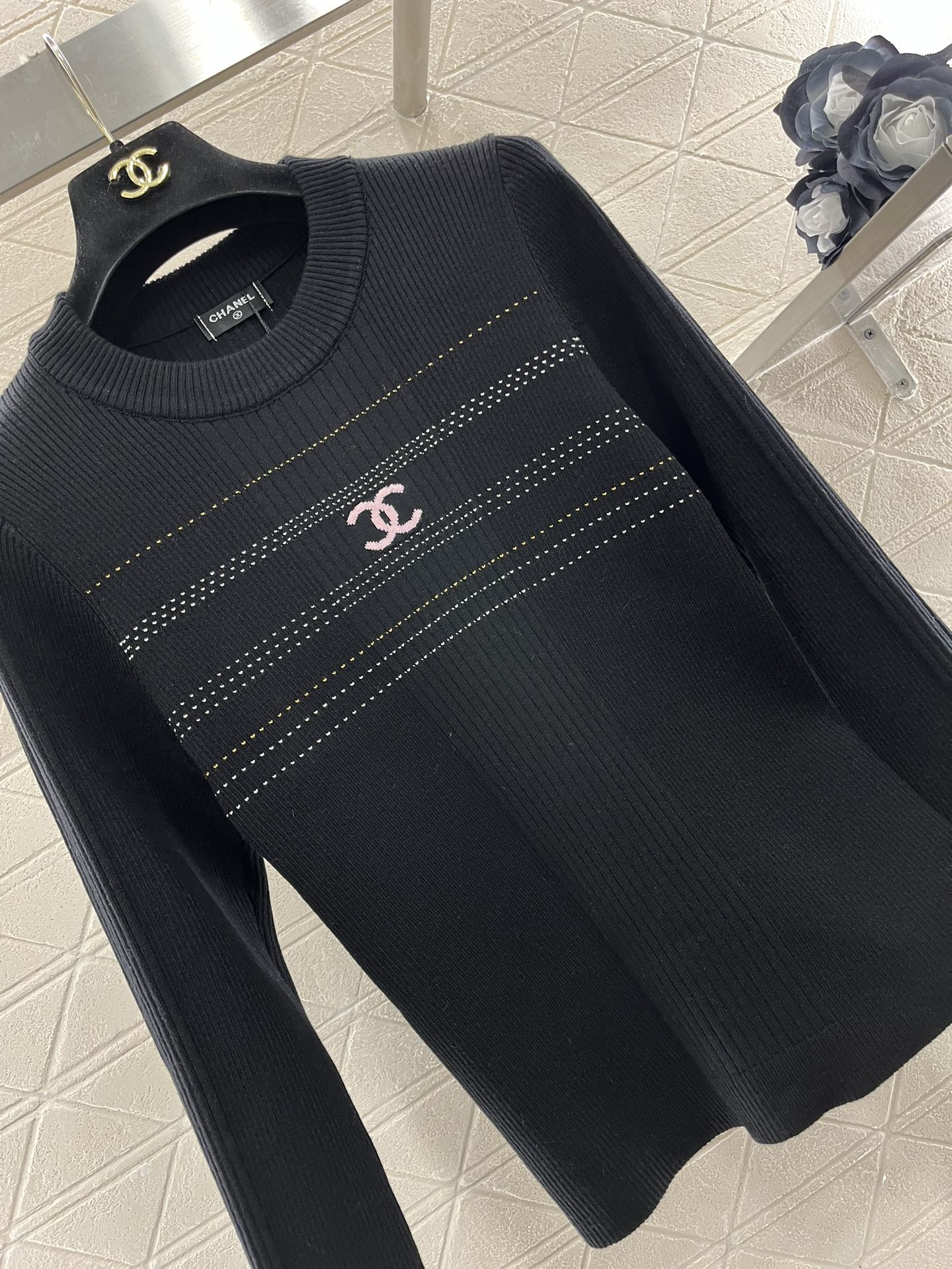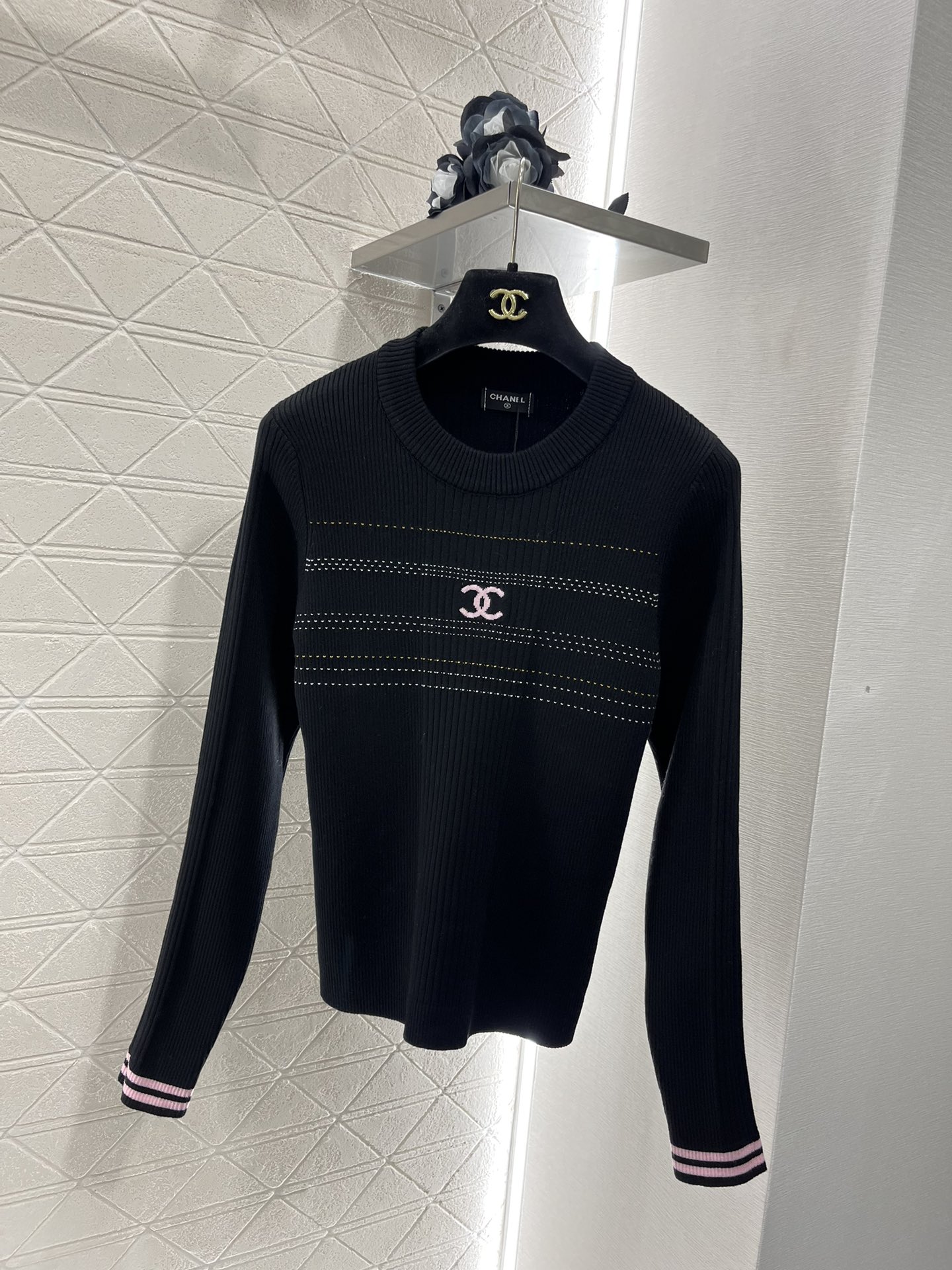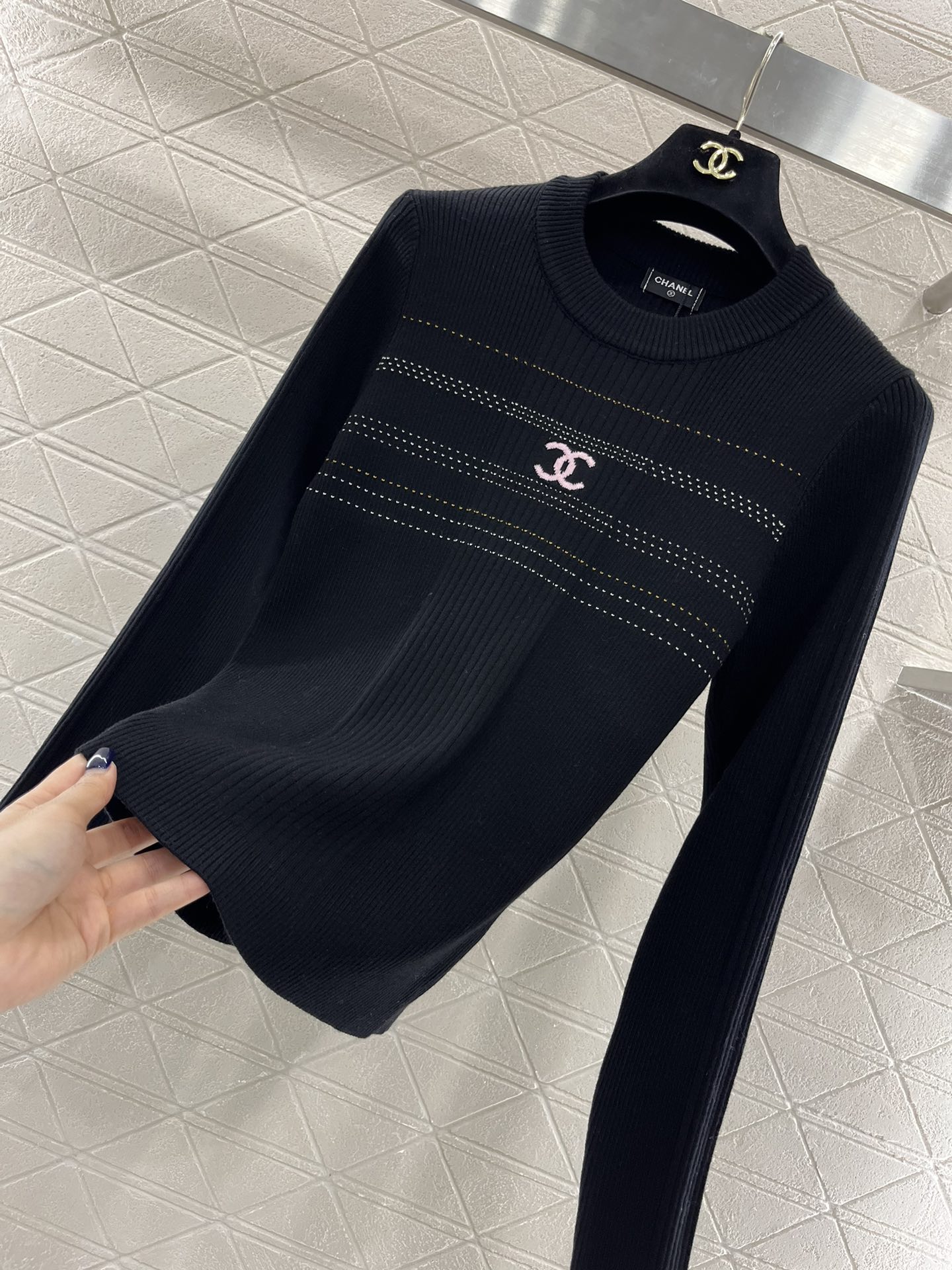 샤넬 엠브로이디드 크루넥 니트 블랙