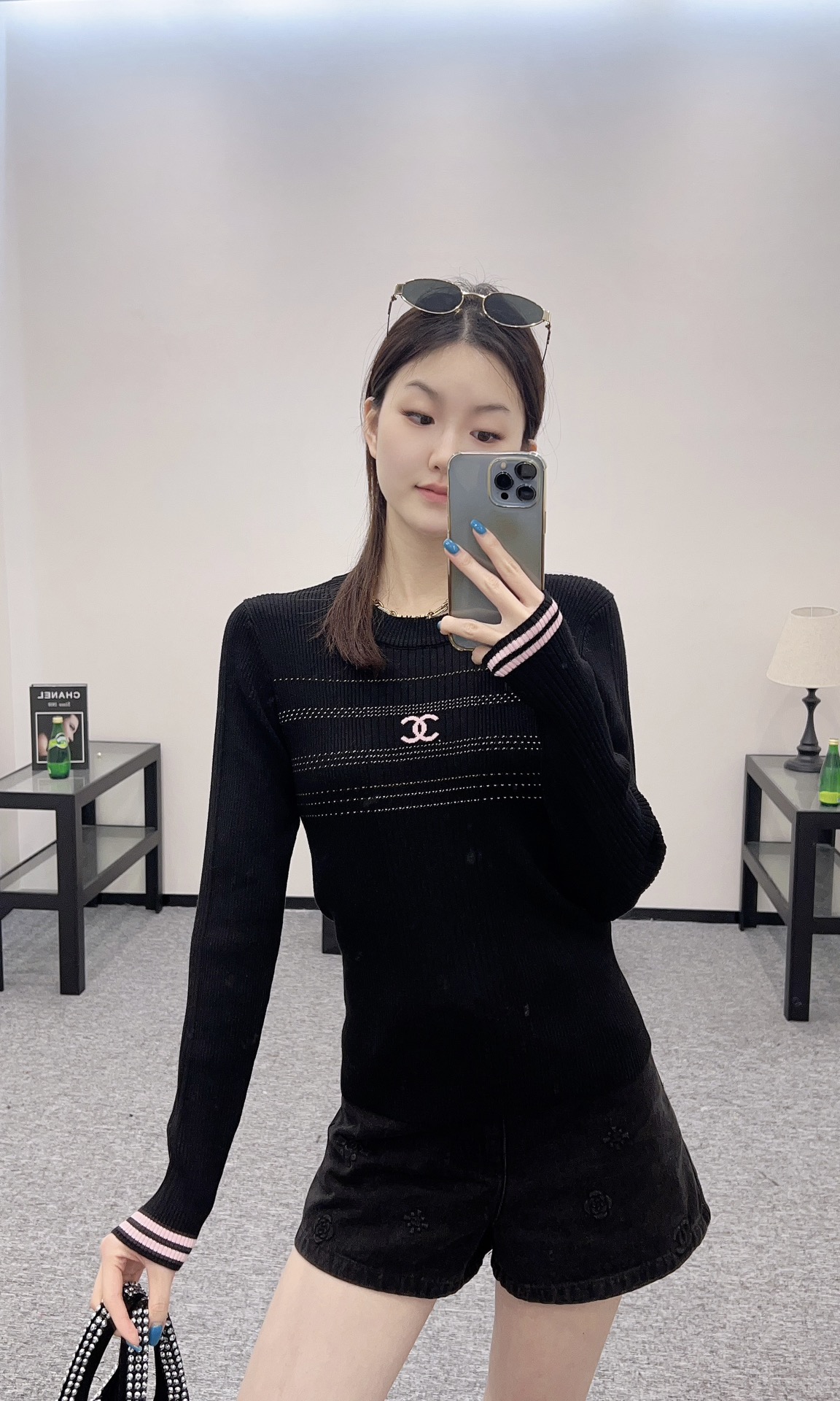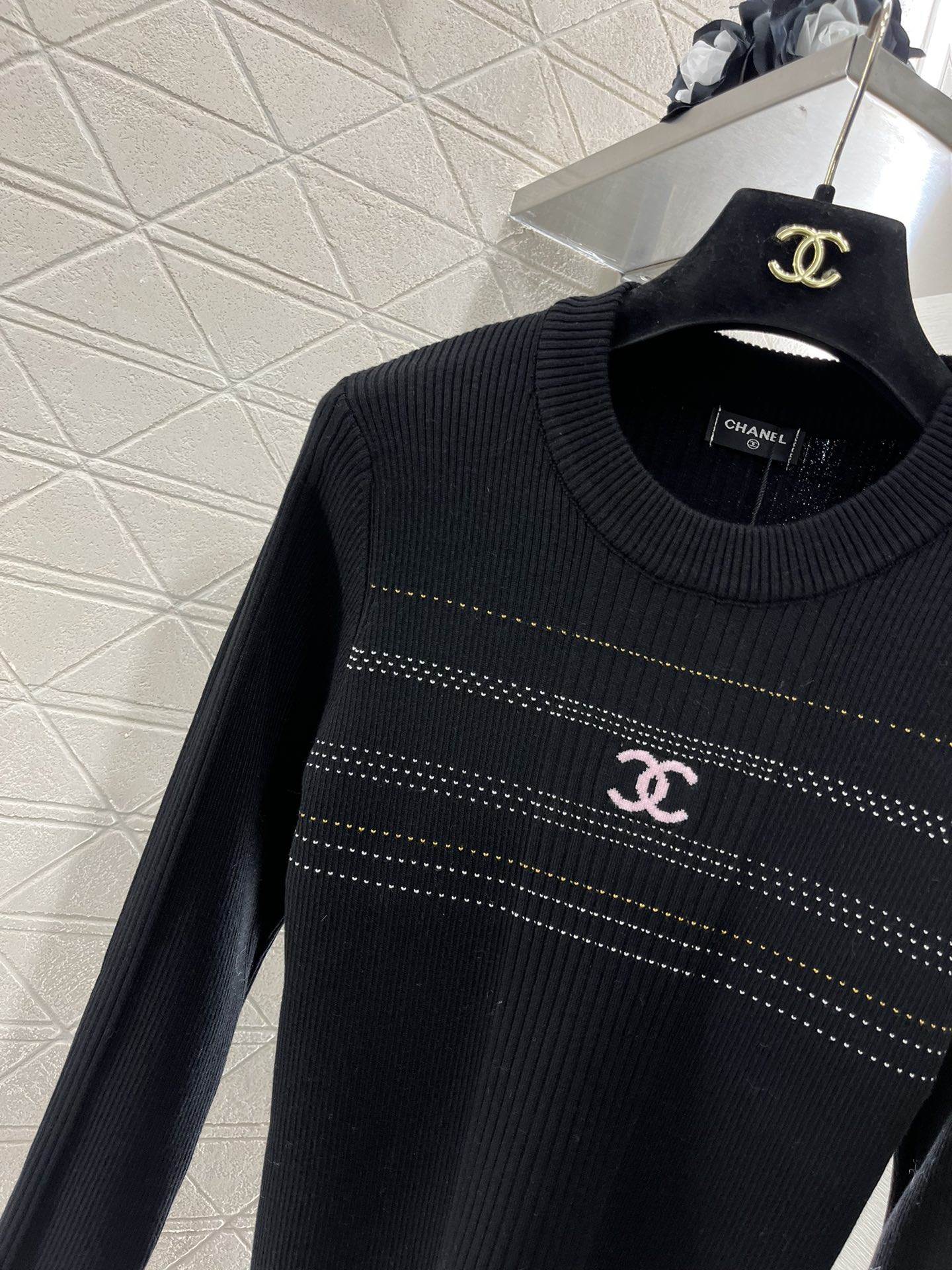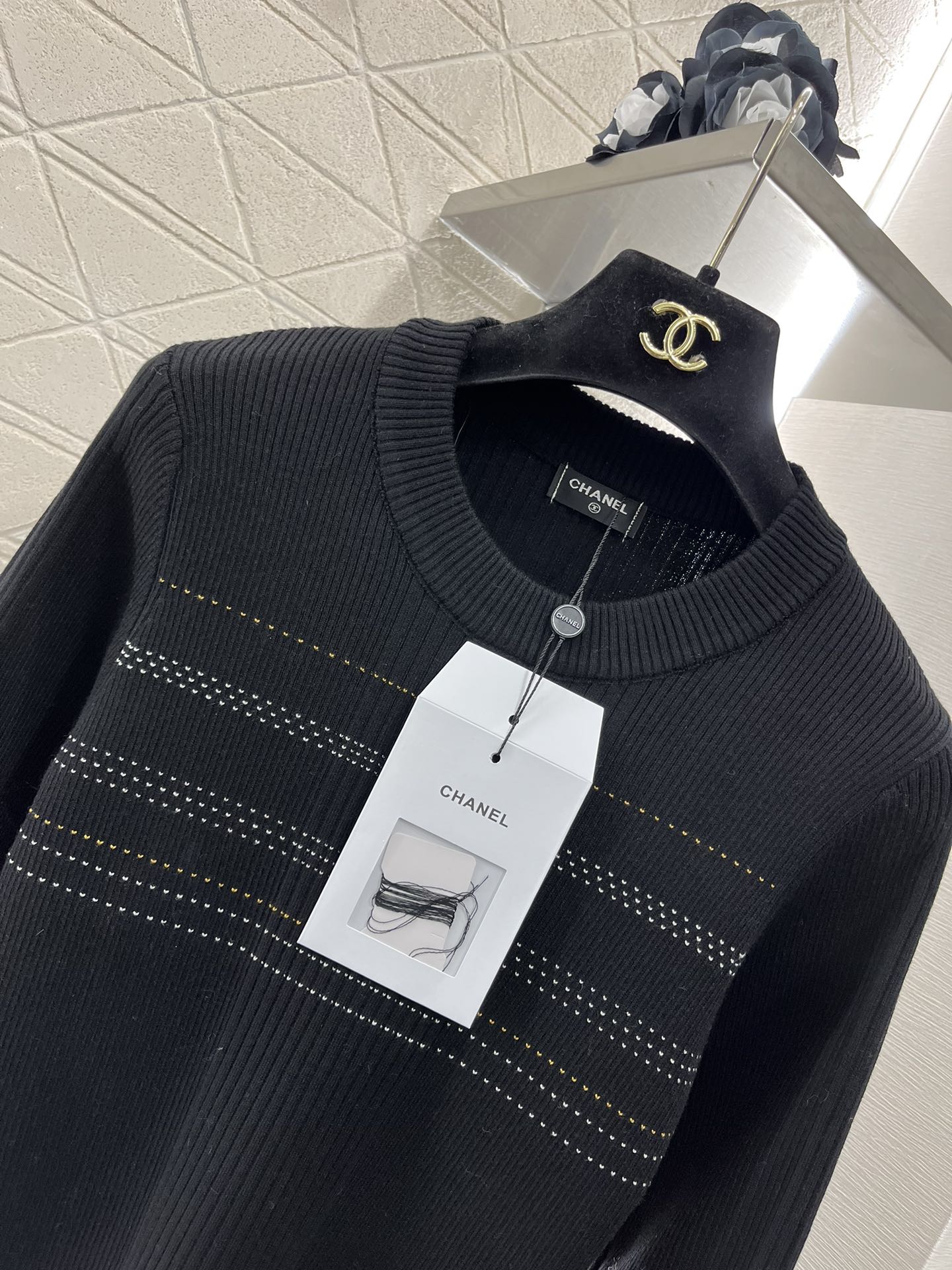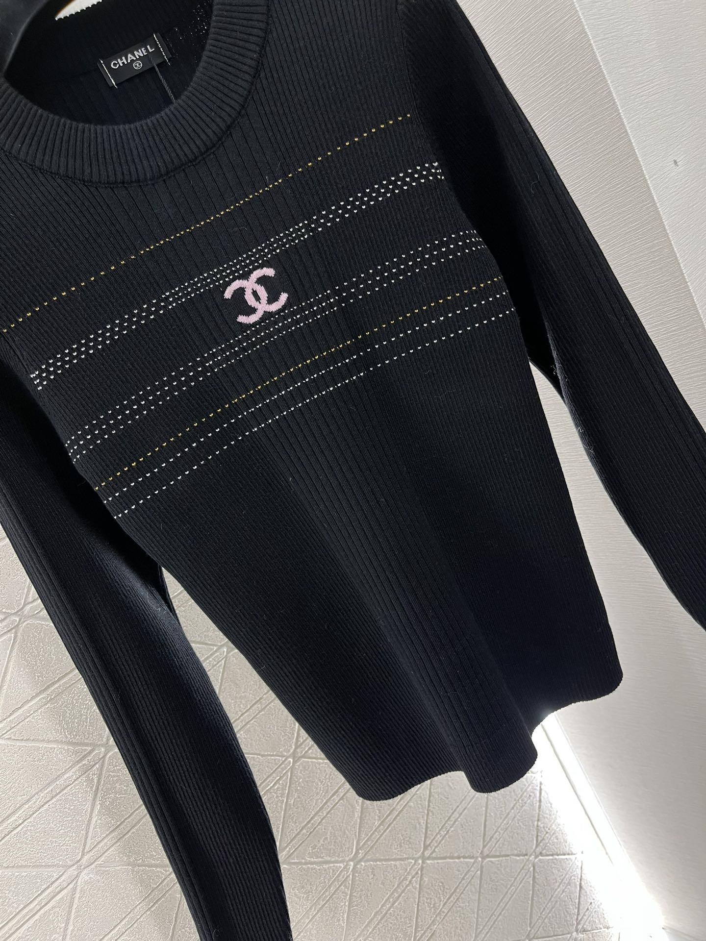 샤넬 엠브로이디드 크루넥 니트 블랙