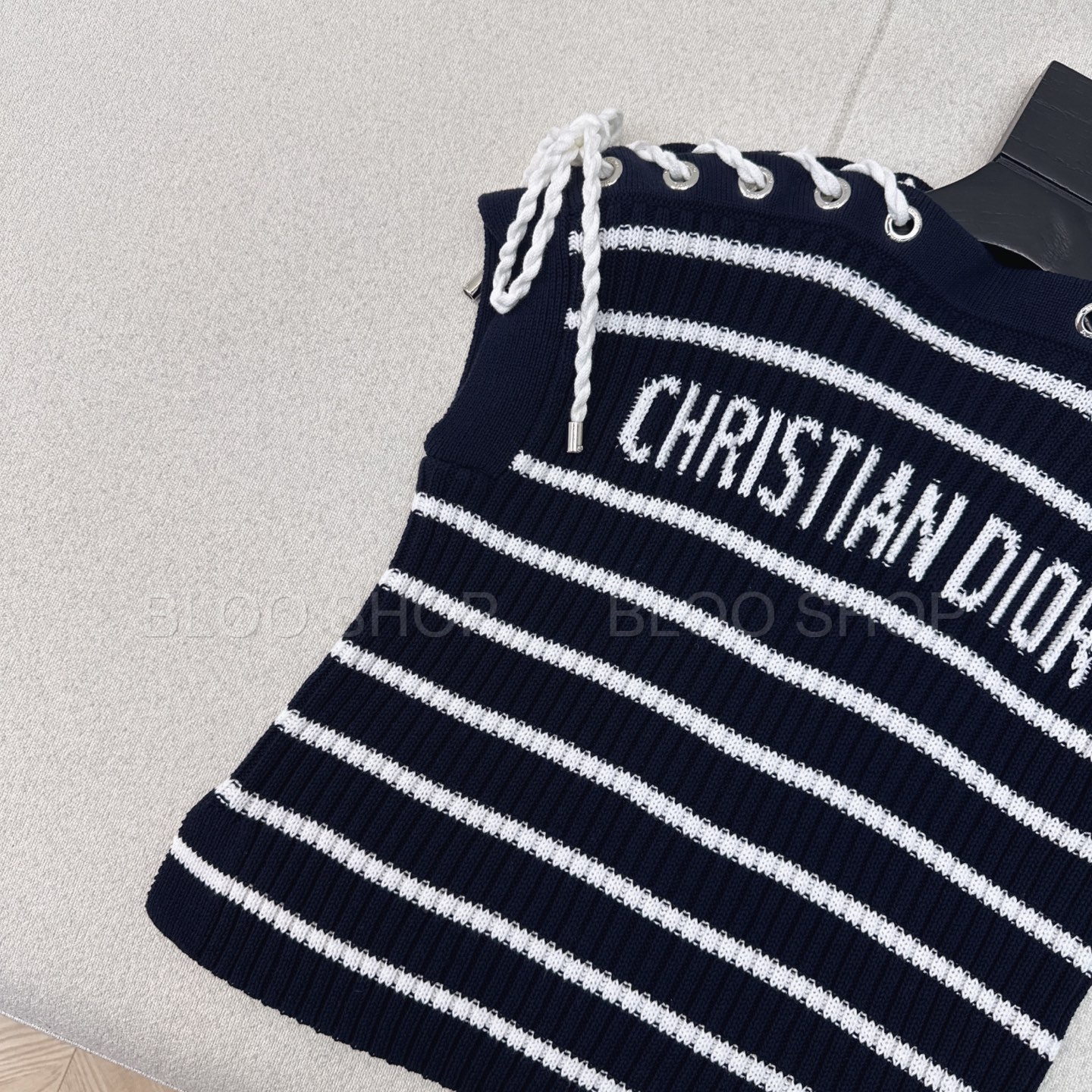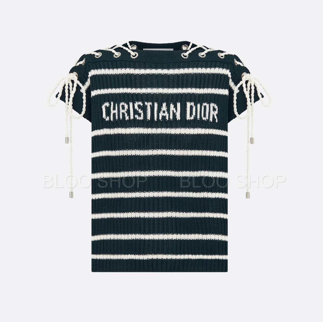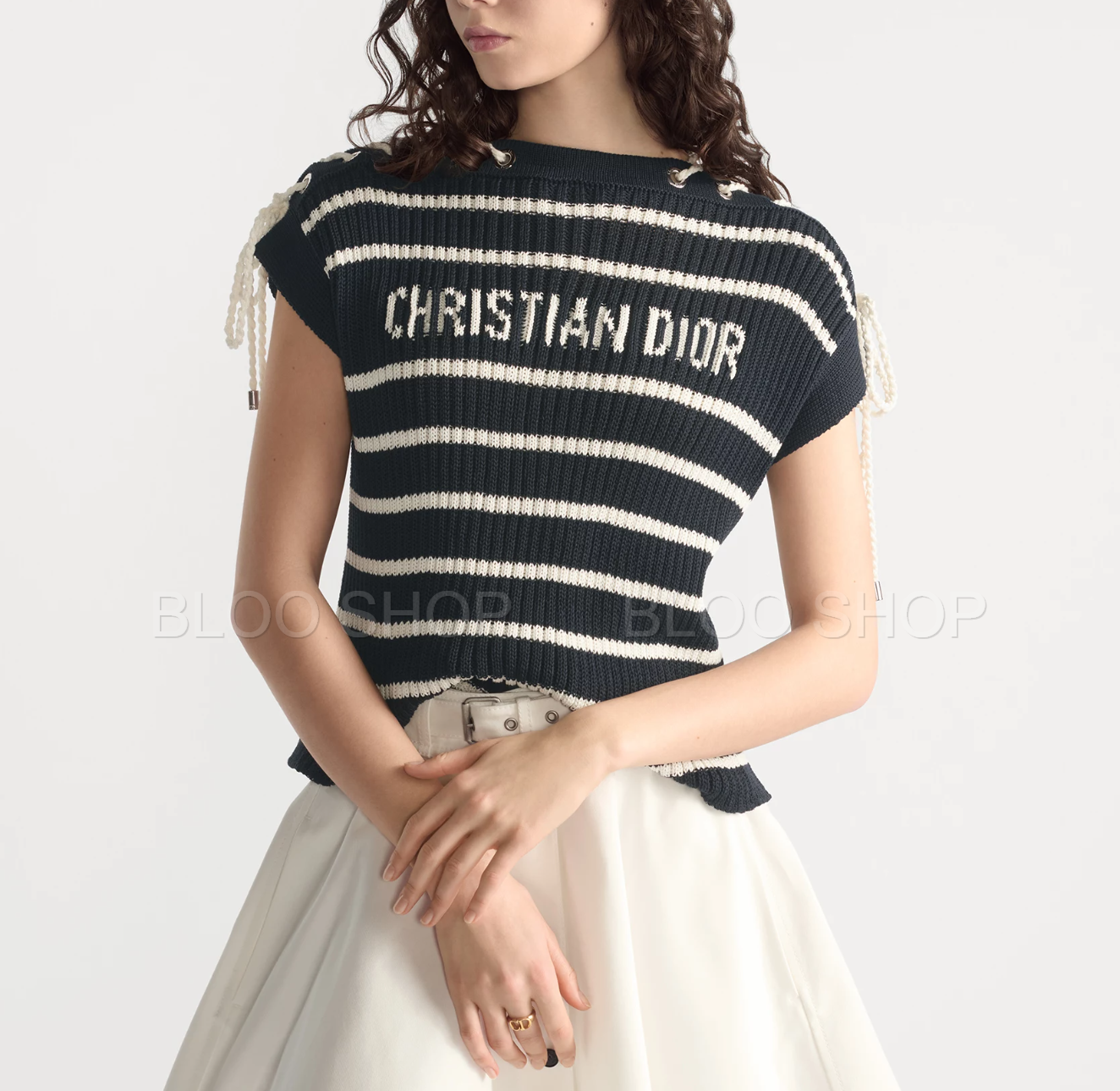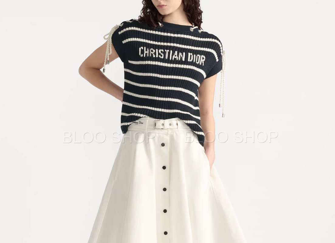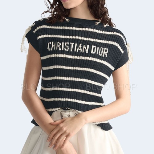 디올 Dioriviera 스트라이프 레이스업 캡 슬리브 스웨터
