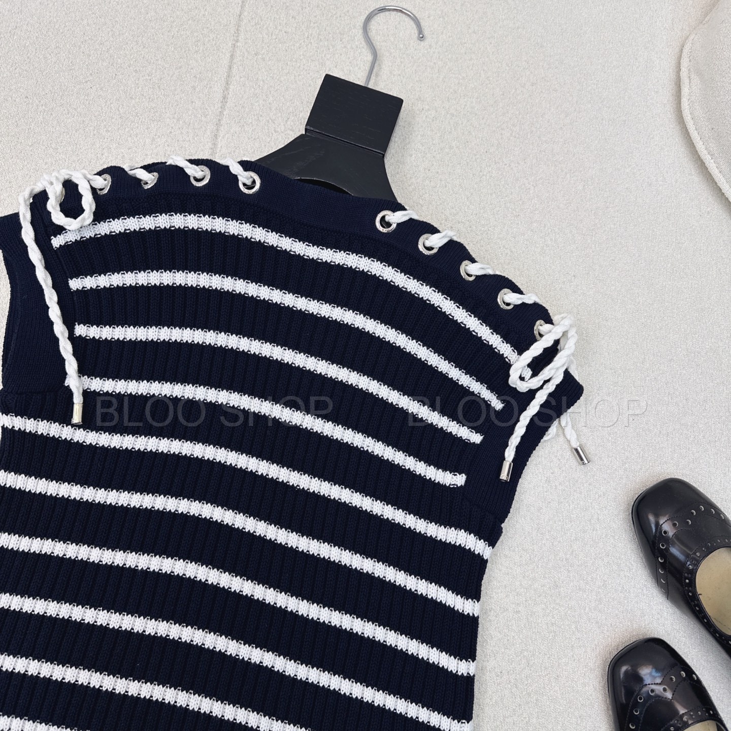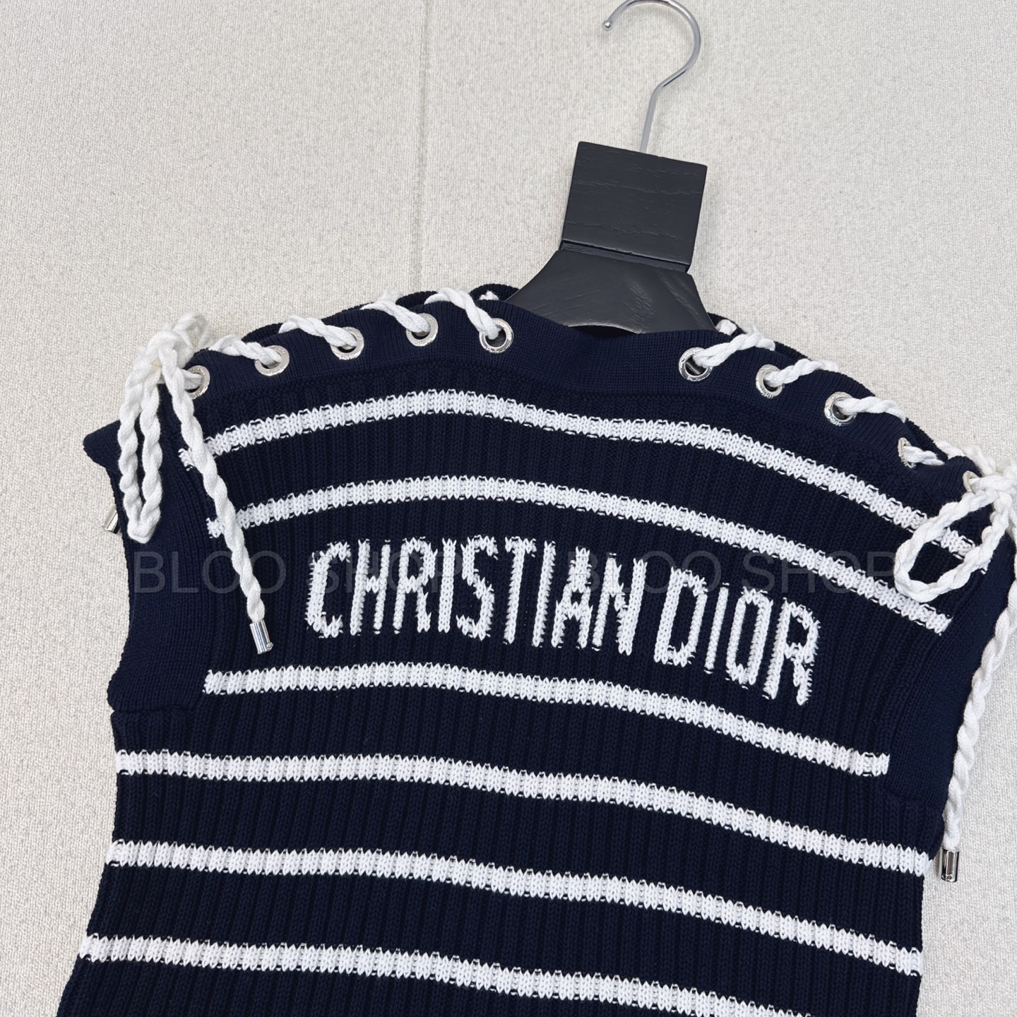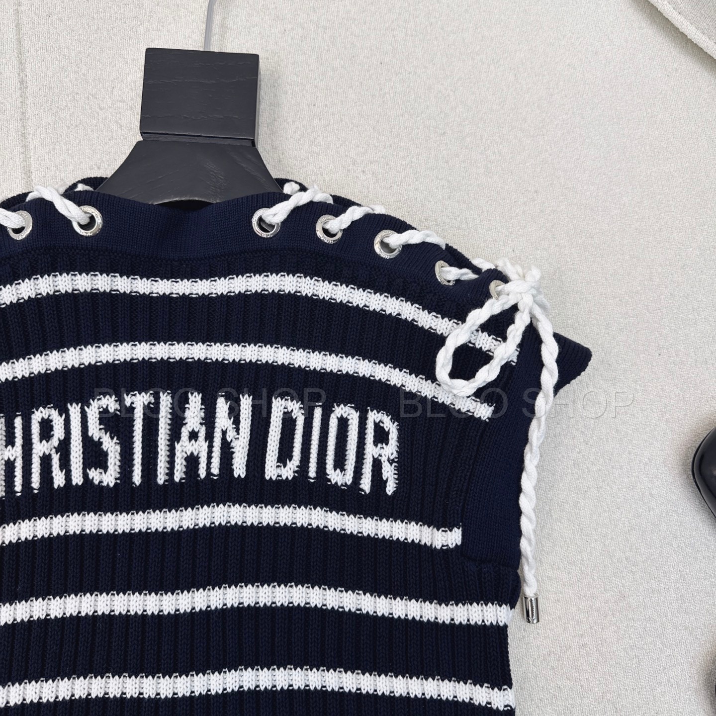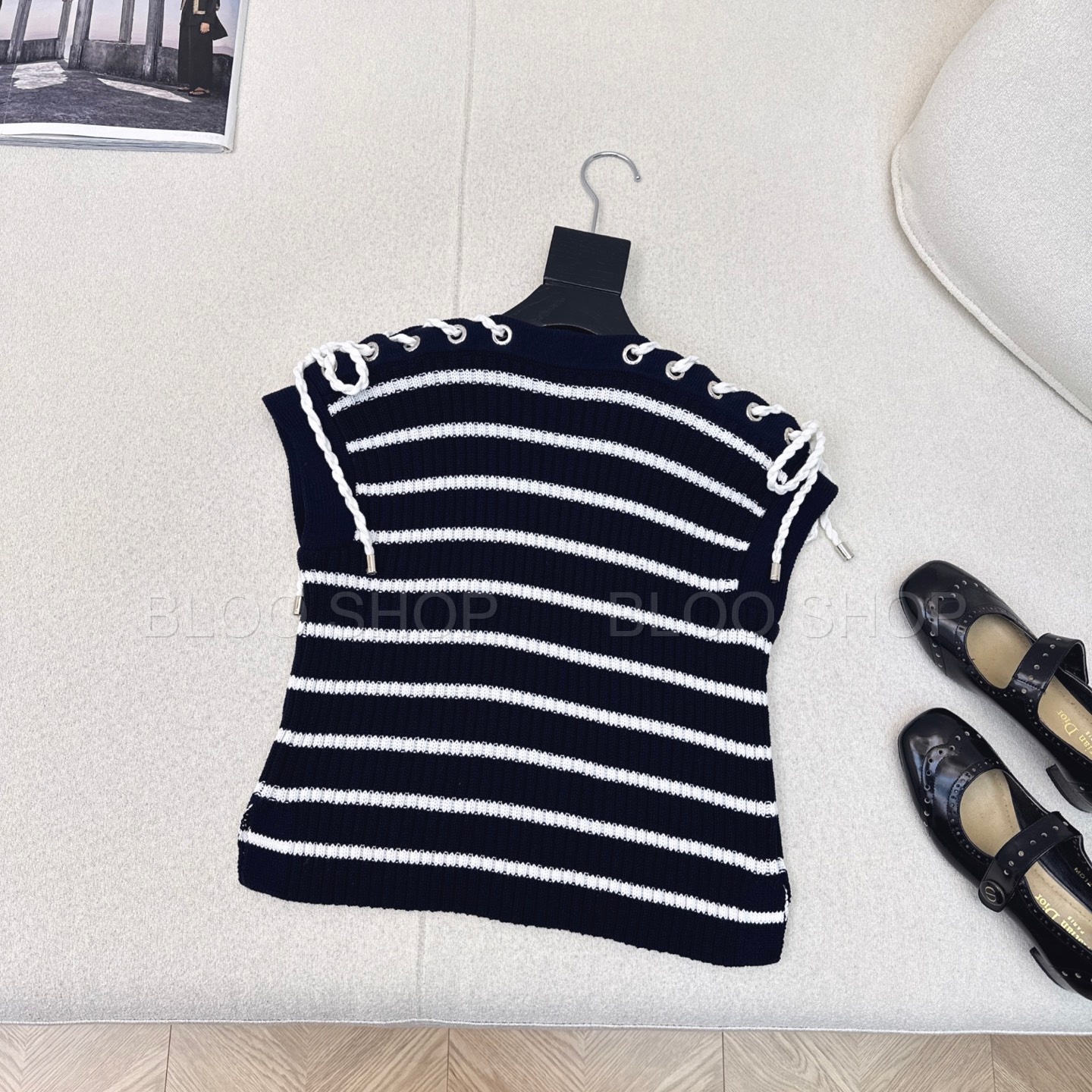 디올 Dioriviera 스트라이프 레이스업 캡 슬리브 스웨터