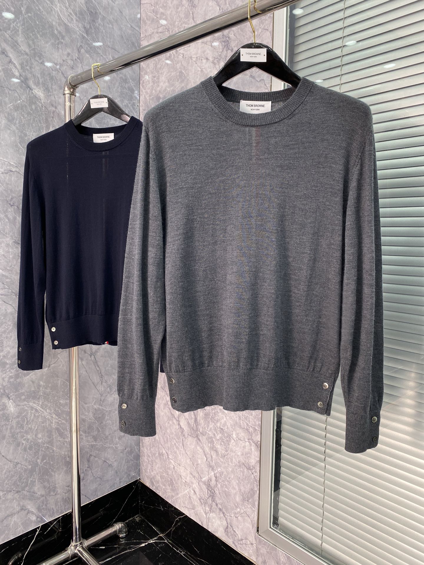 톰브라운 크루넥 센터백 니트 그레이