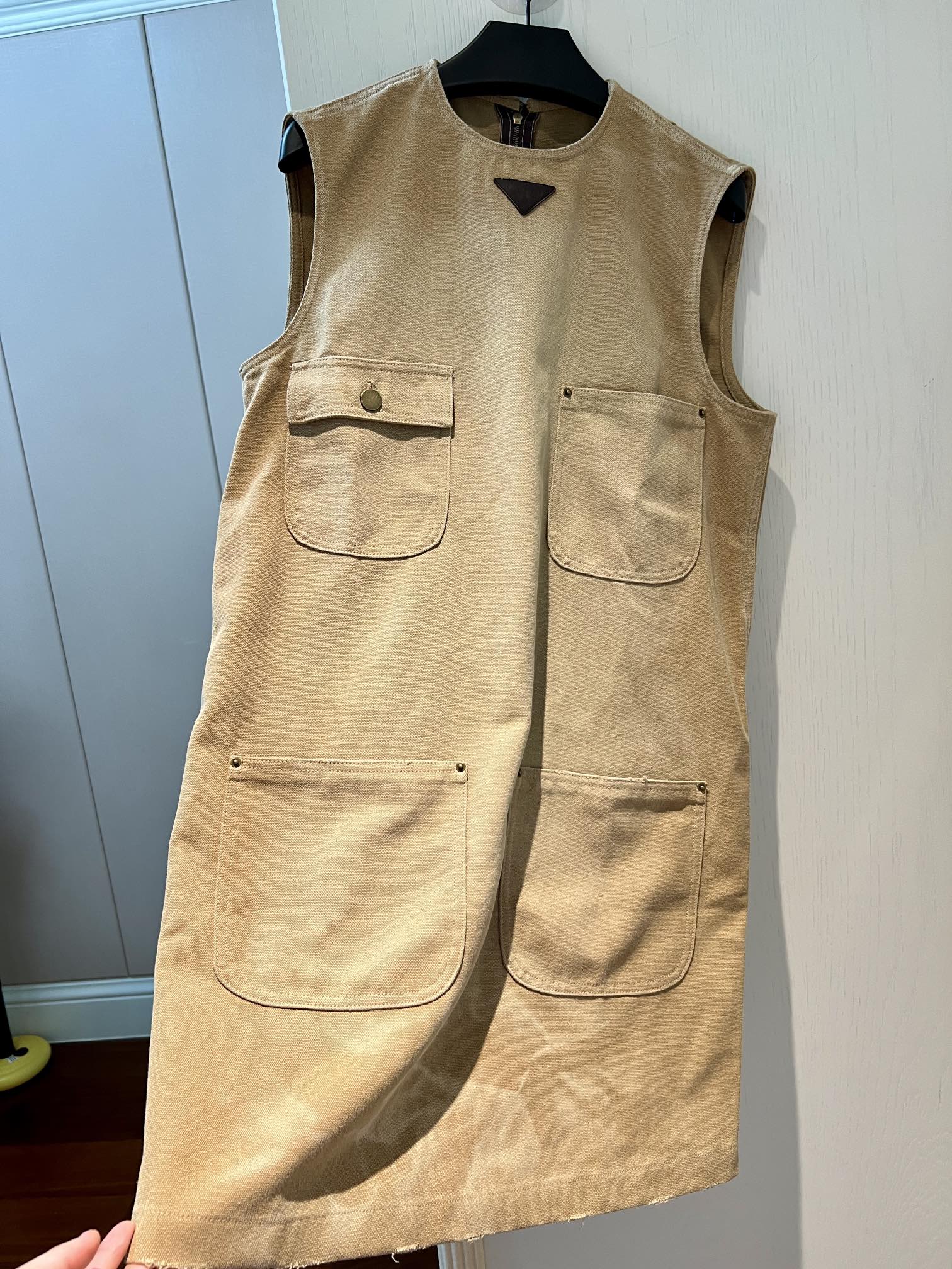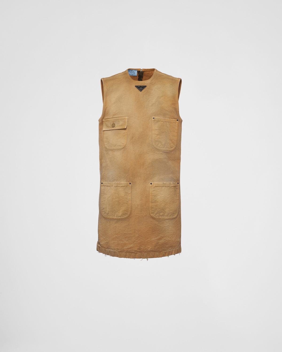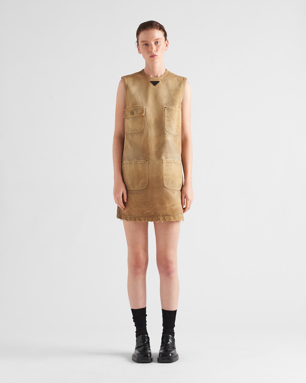 프라다 슬리브리스 캔버스 미니드레스 베이지