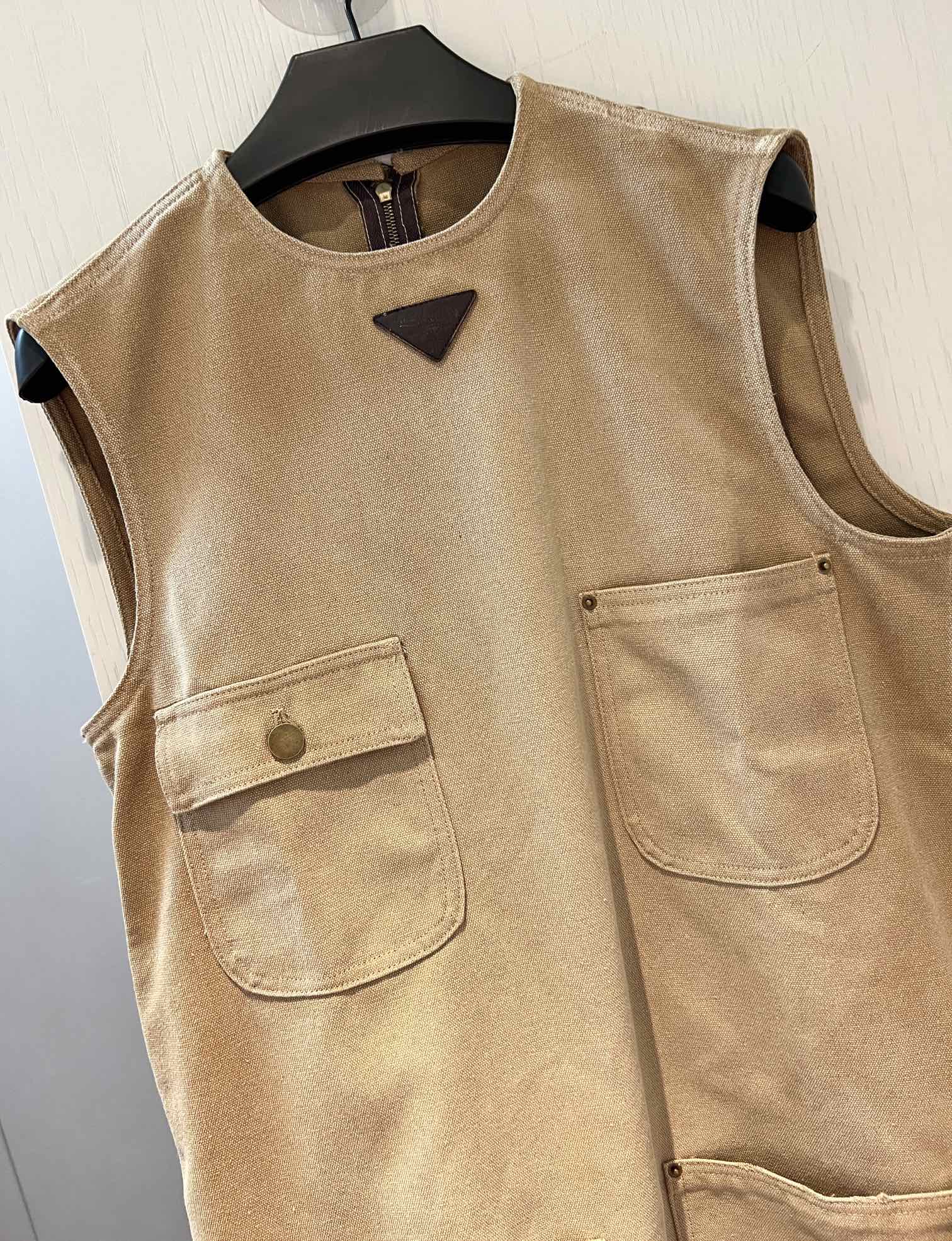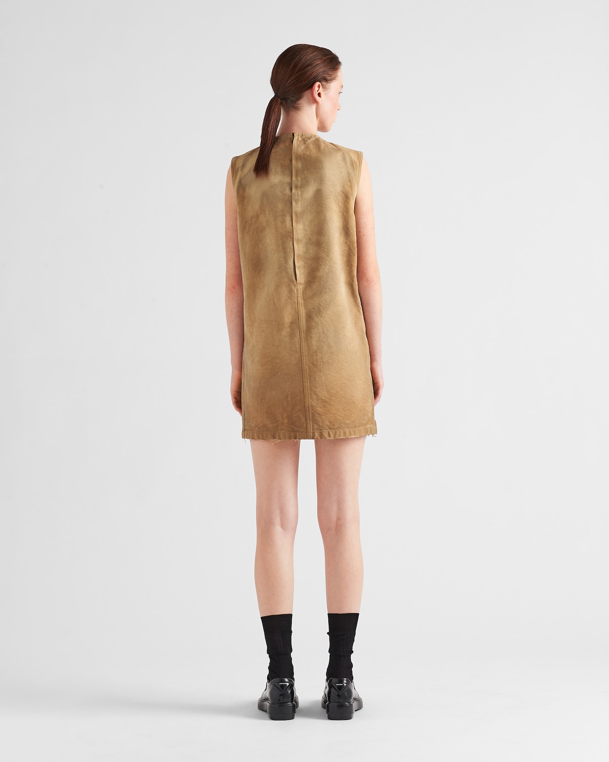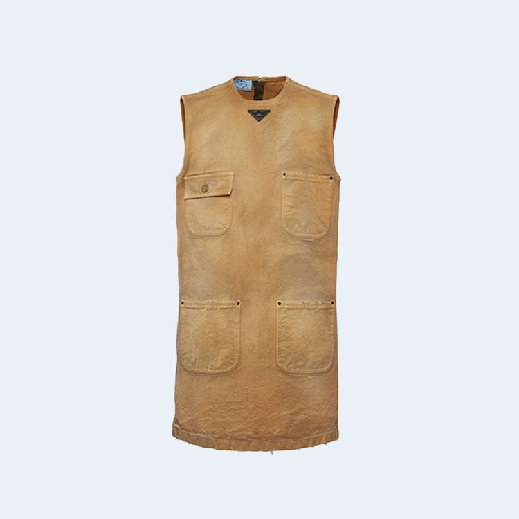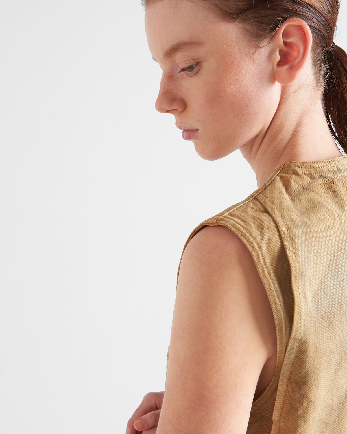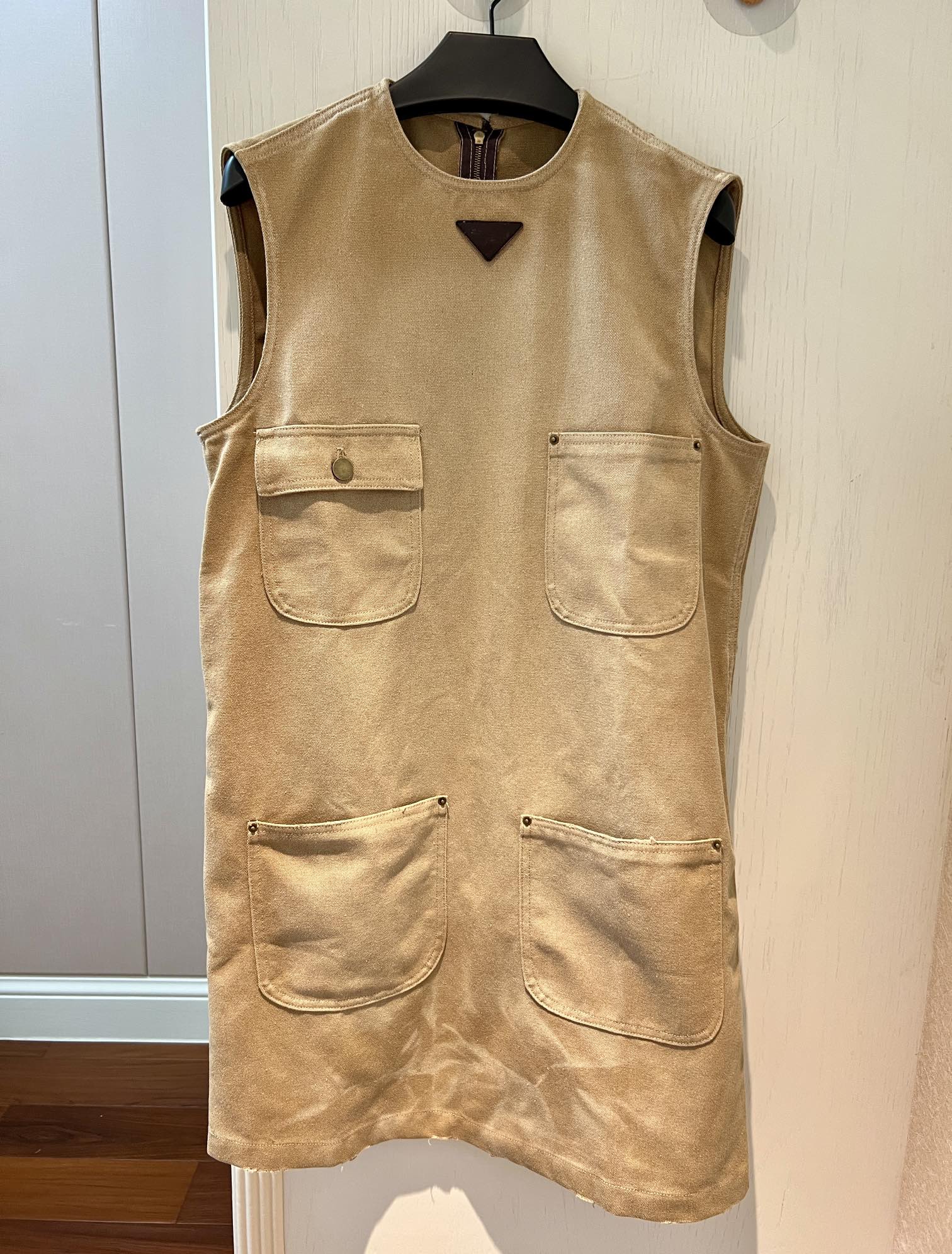 프라다 슬리브리스 캔버스 미니드레스 베이지