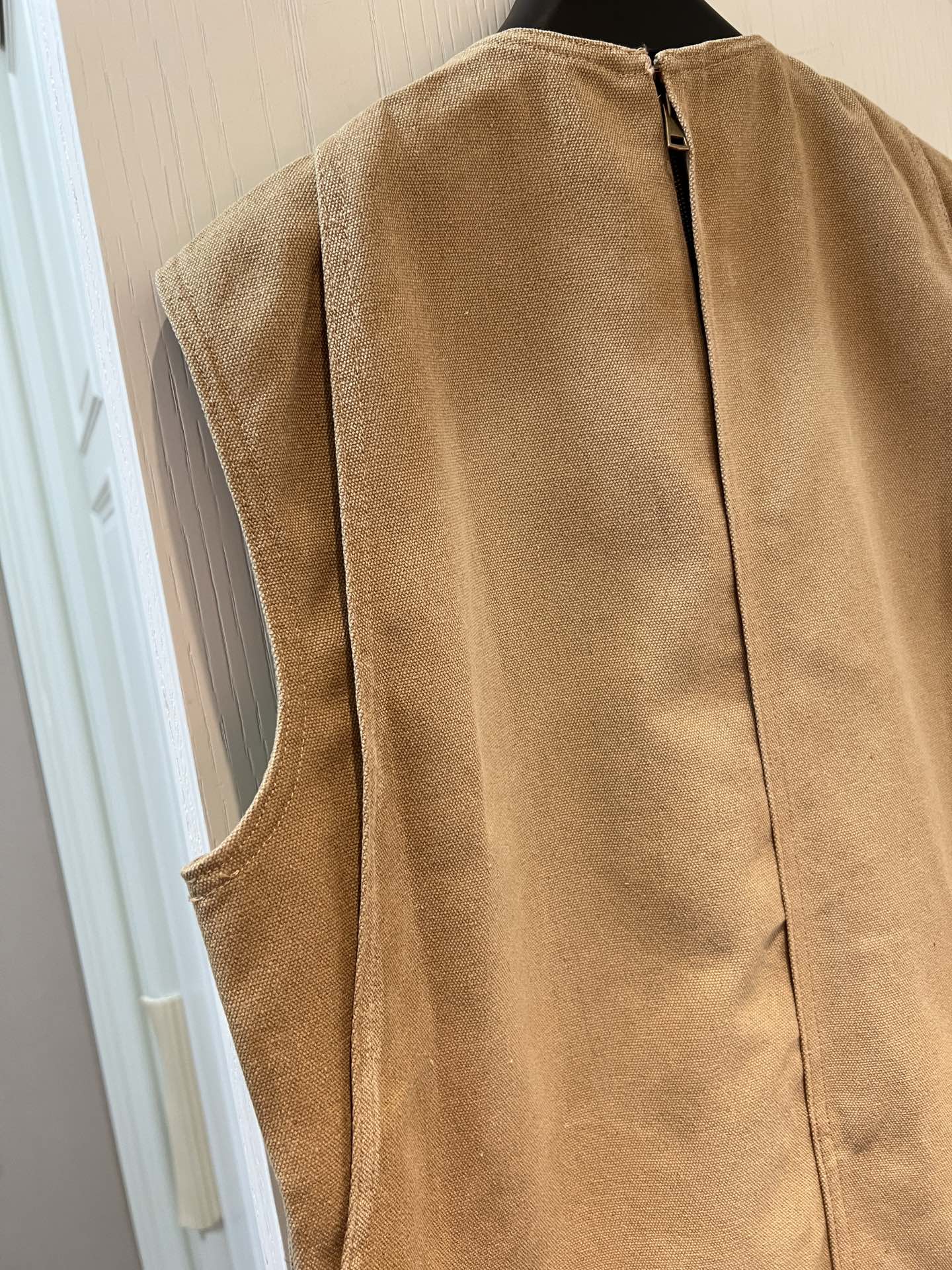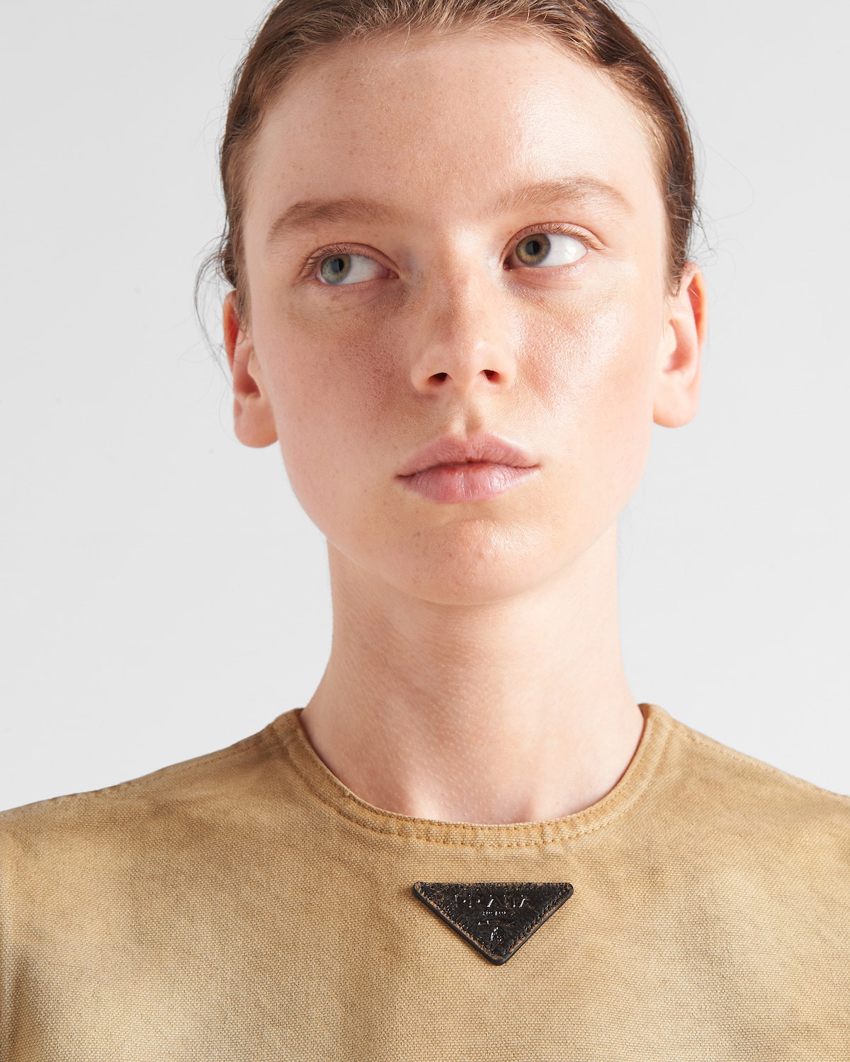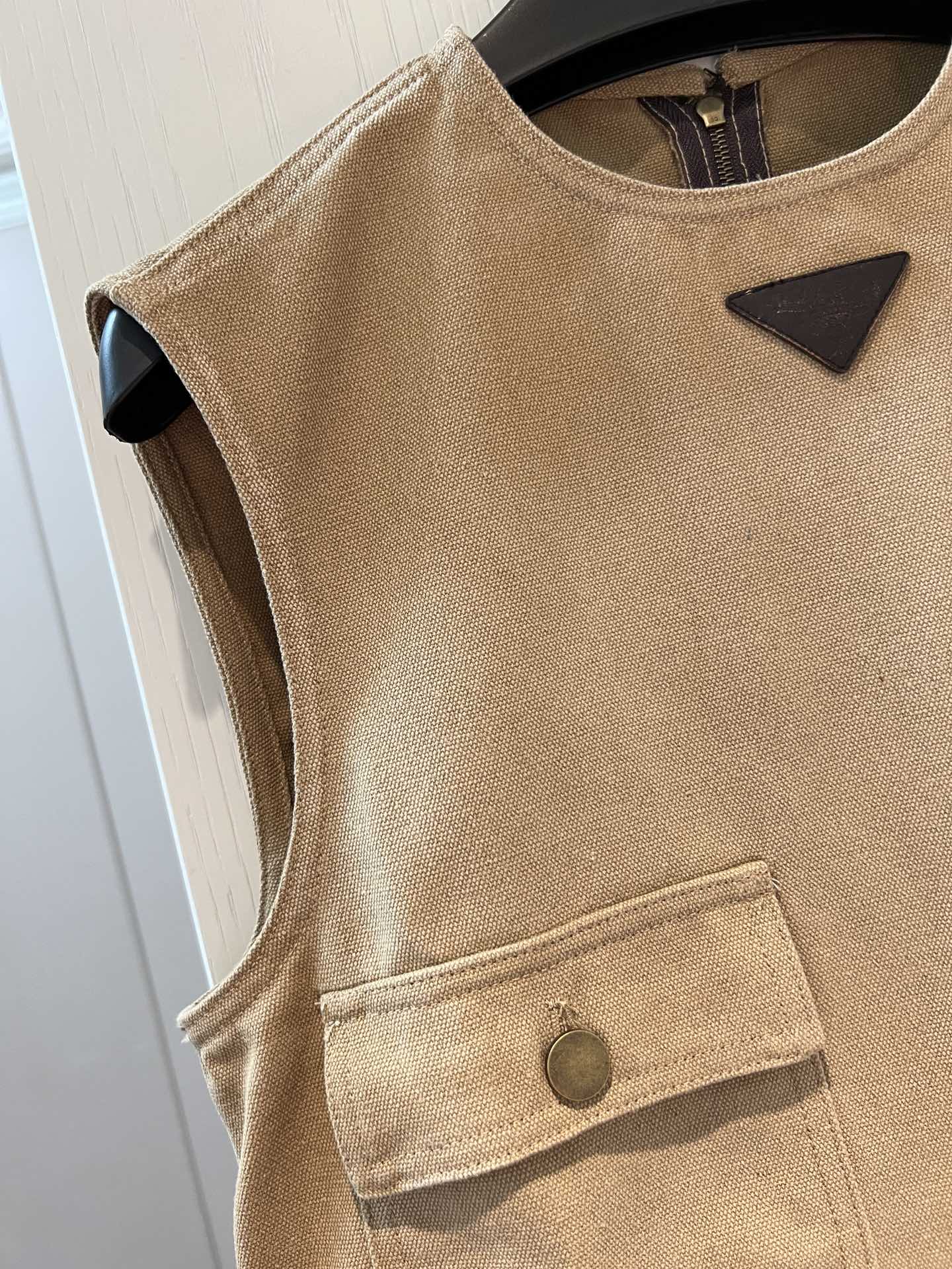 프라다 슬리브리스 캔버스 미니드레스 베이지
