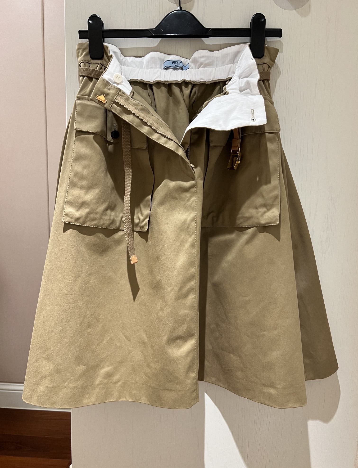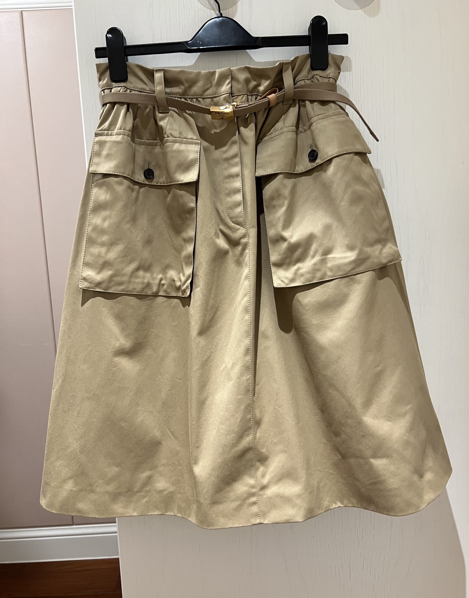 프라다 코튼 새틴 미디 스커트