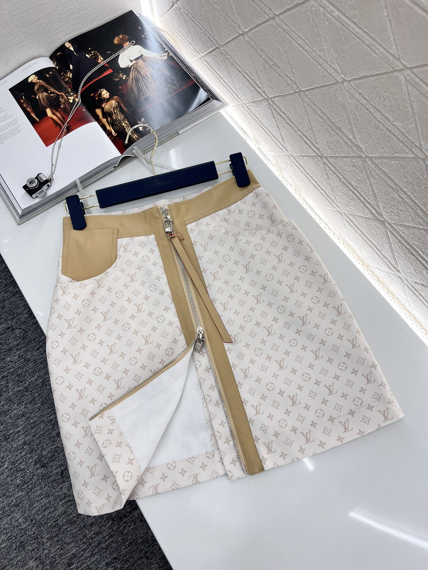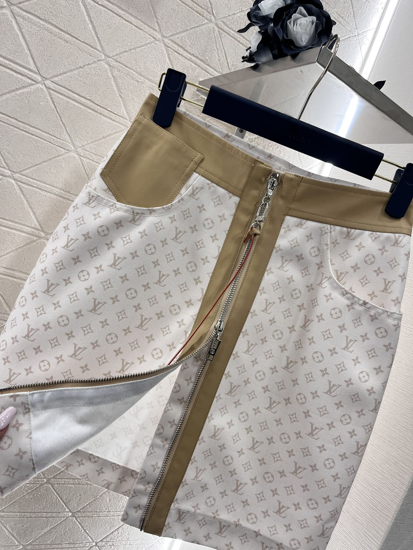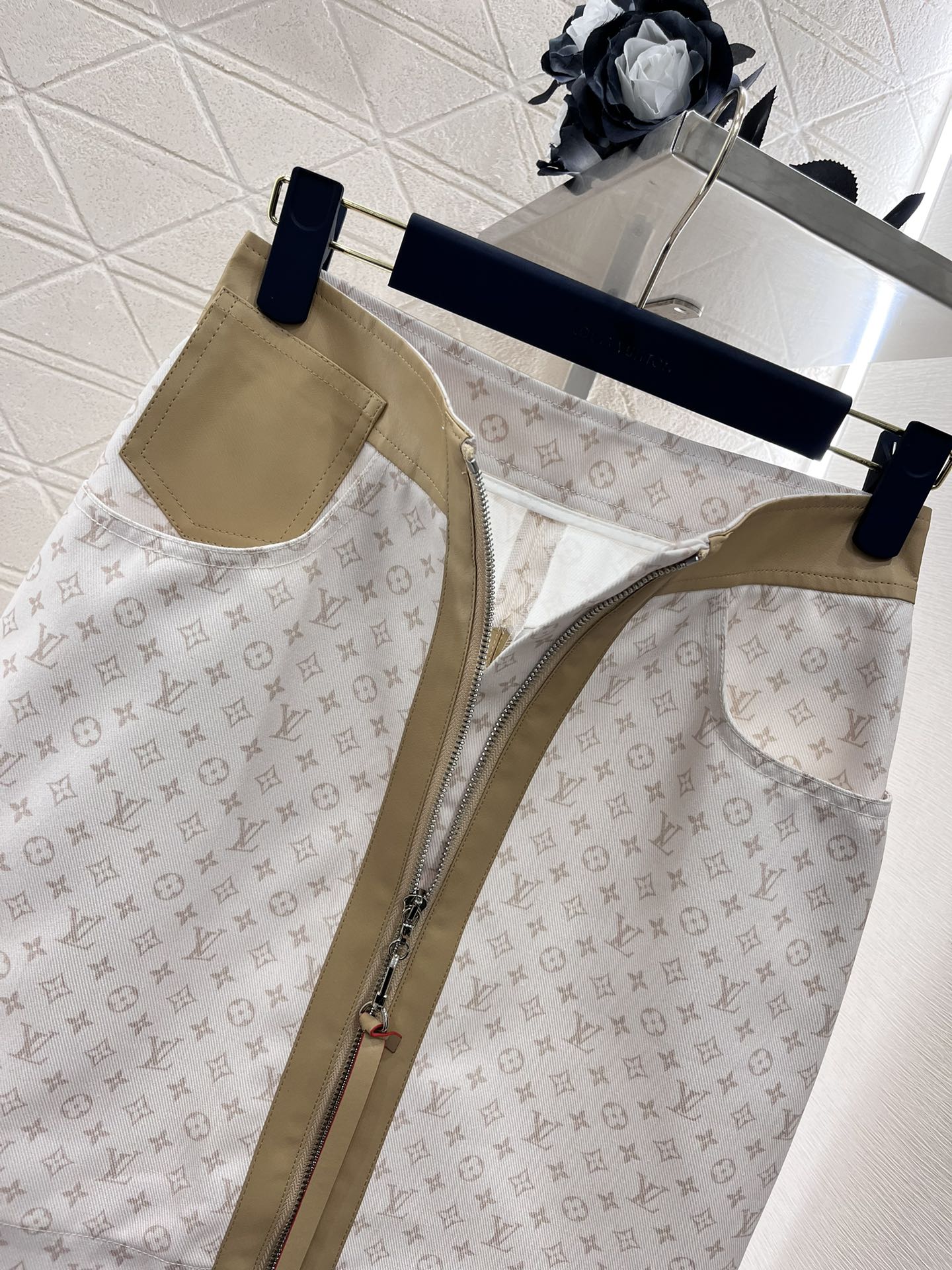 루이비통 레더 액센트 미니 모노그램 스커트