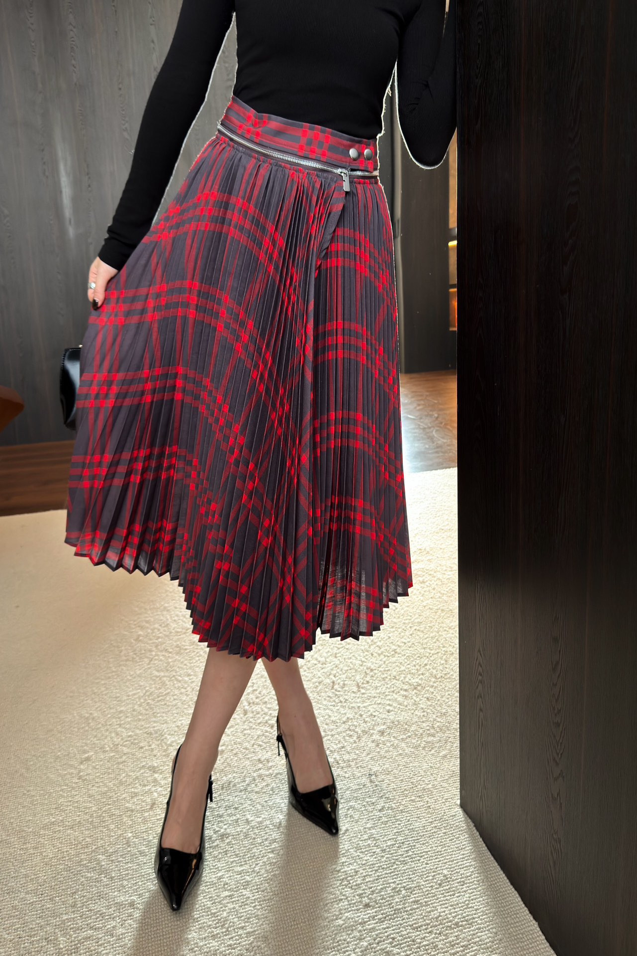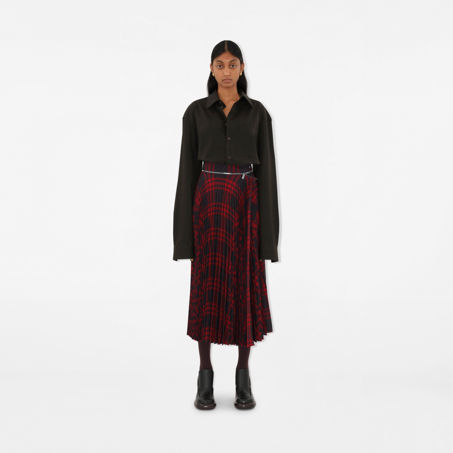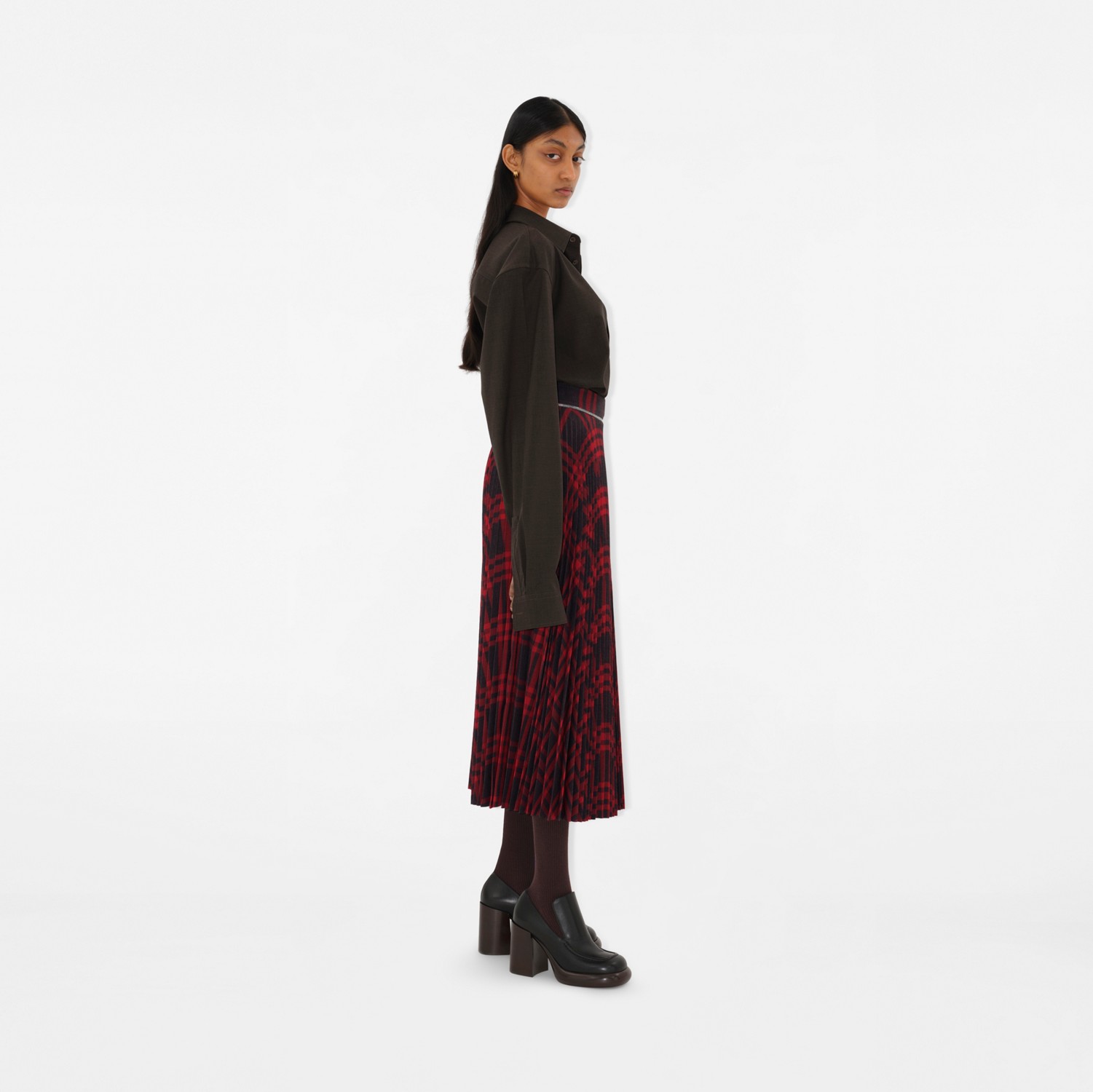 버버리 플리츠 체크 울 블렌드 스커트