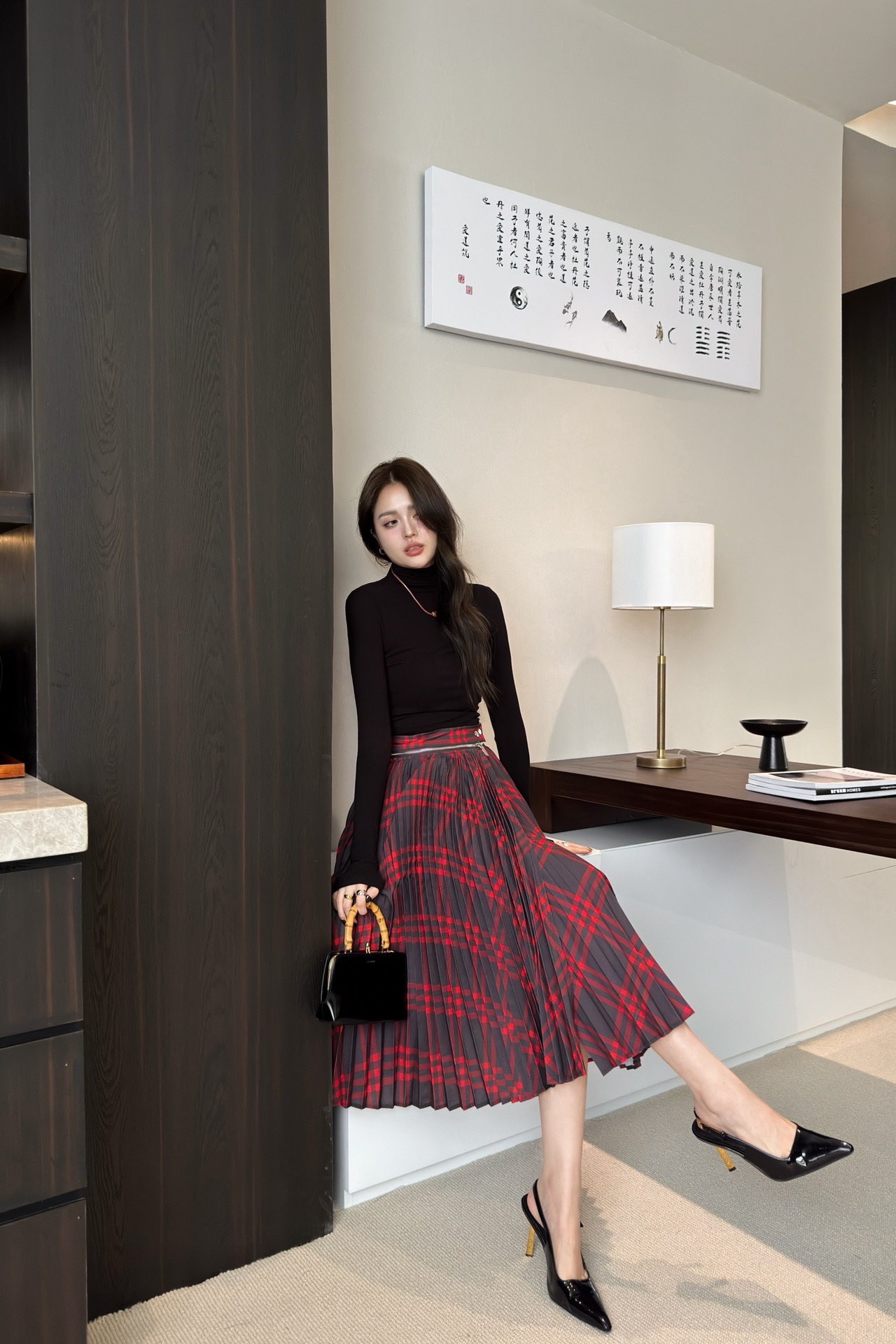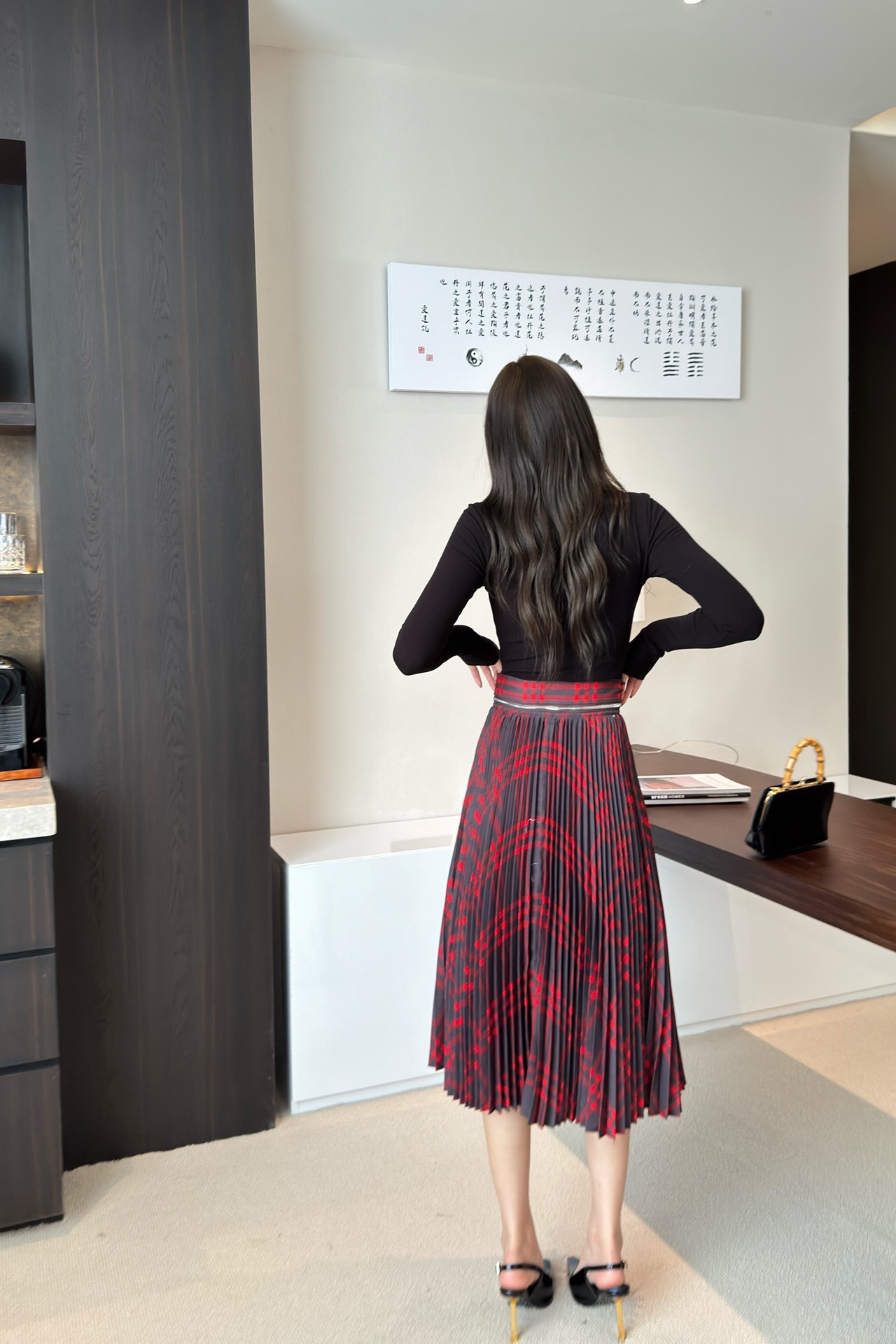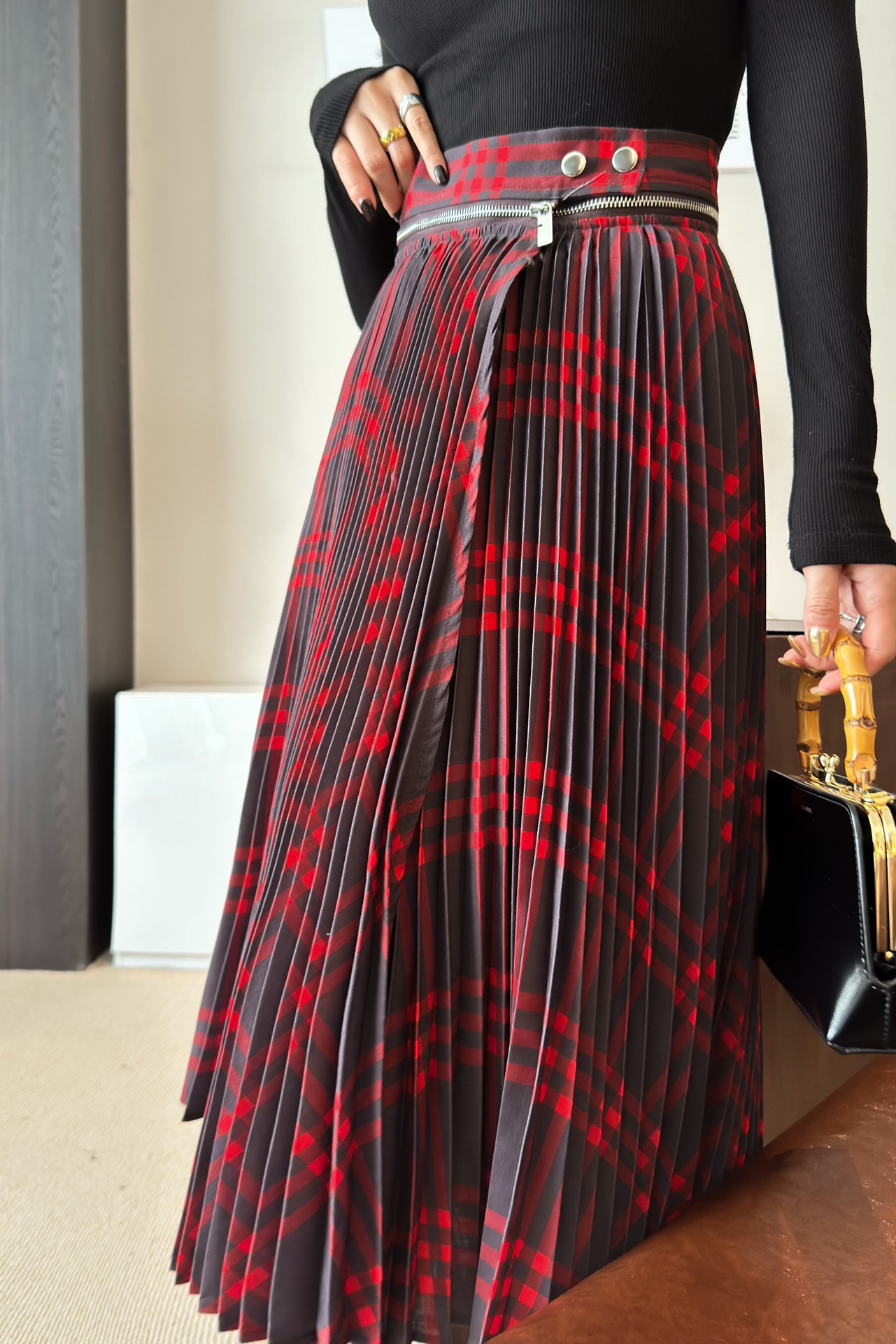 버버리 플리츠 체크 울 블렌드 스커트