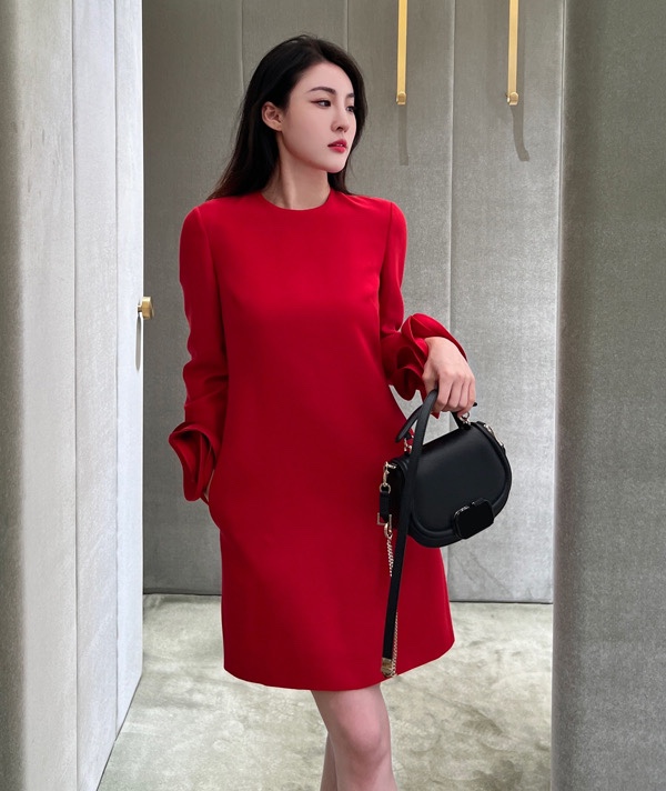 발렌티노 더블 컴팩트 드릴 쇼트 드레스