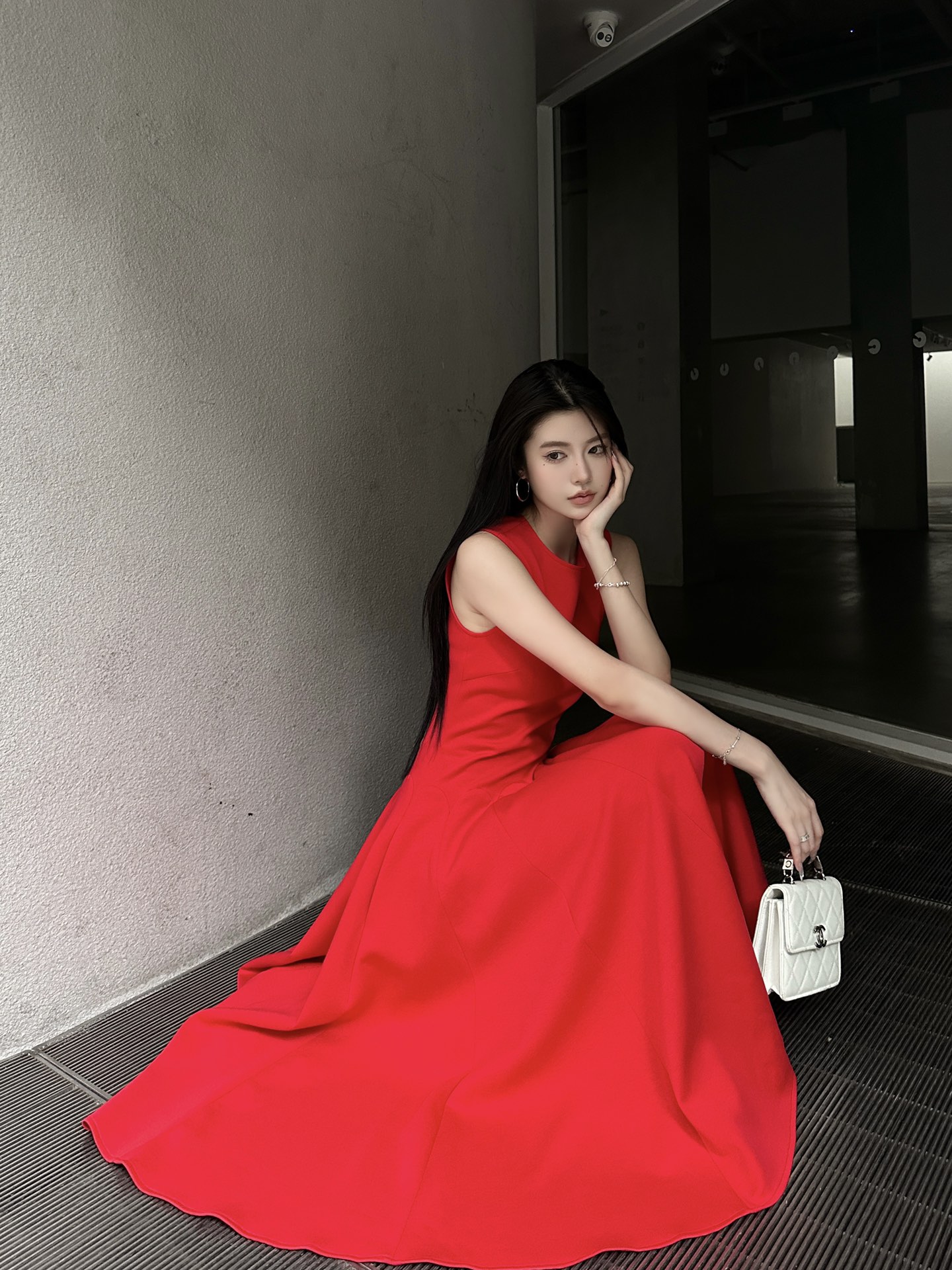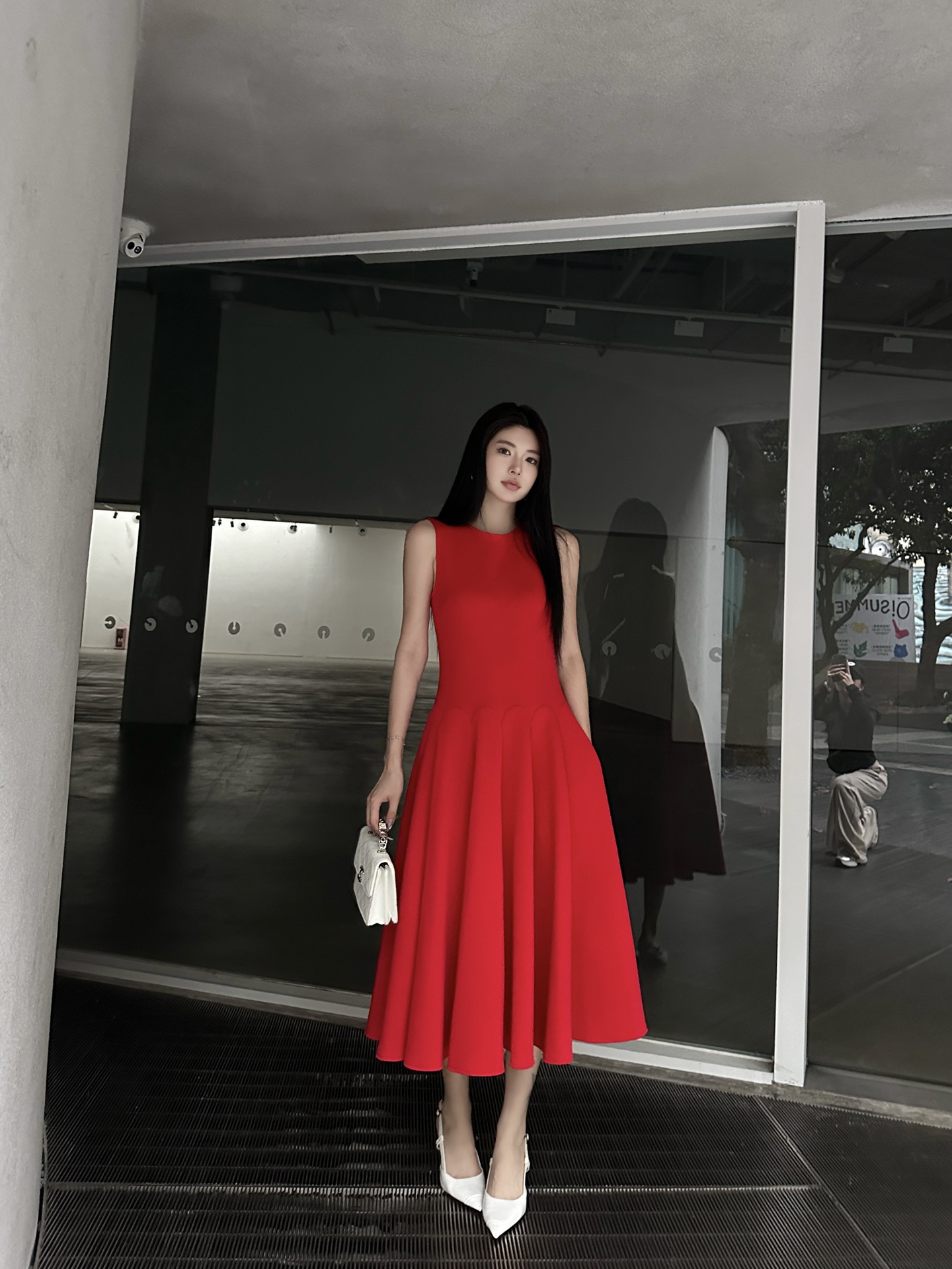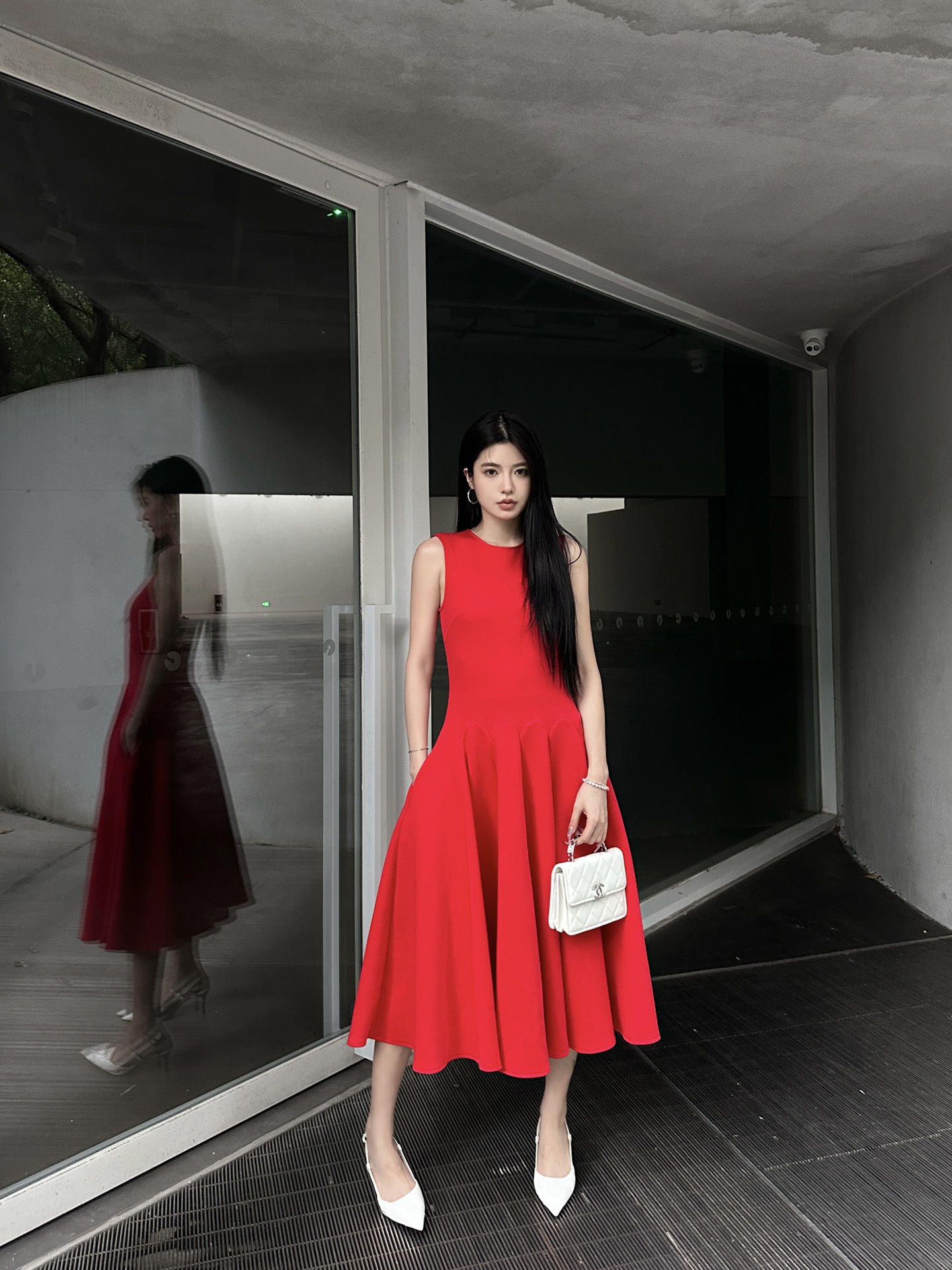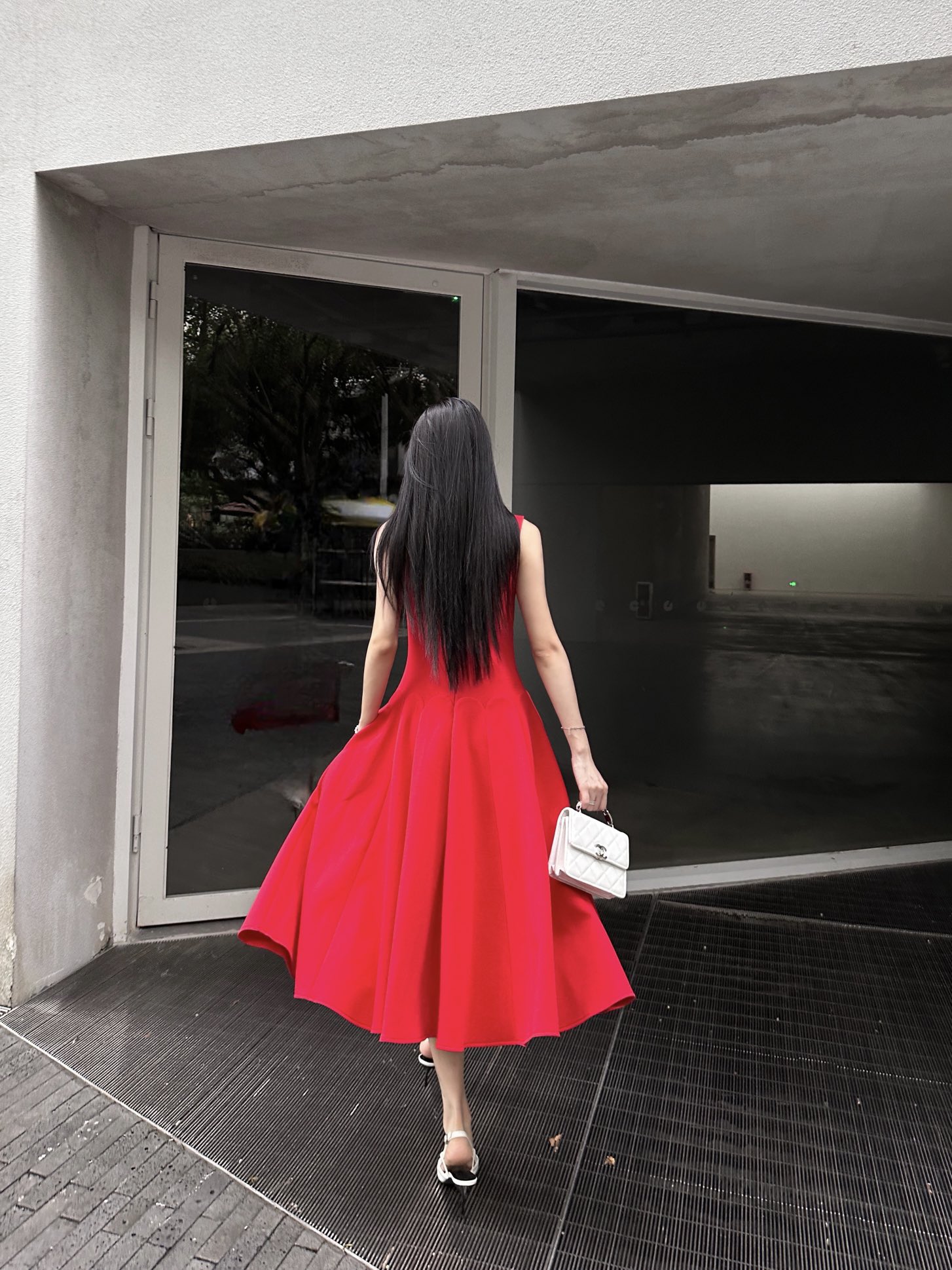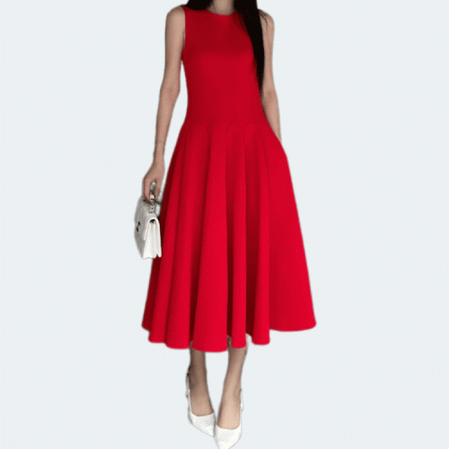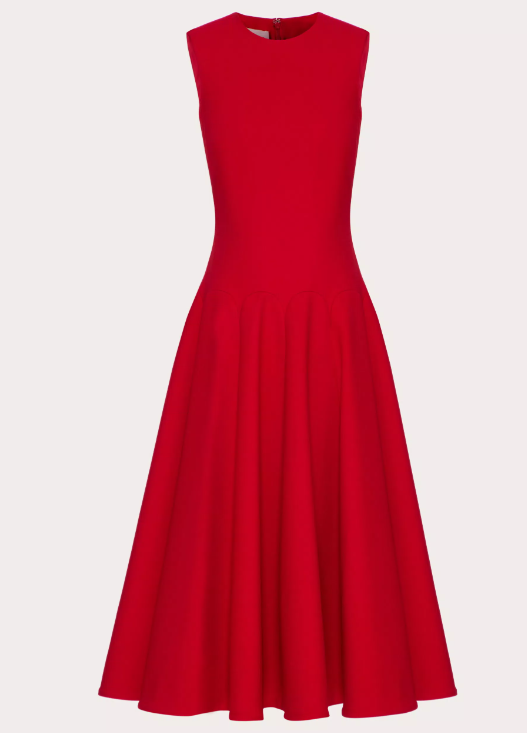 발렌티노 럭셔리 크레이프 미디 드레스 레드