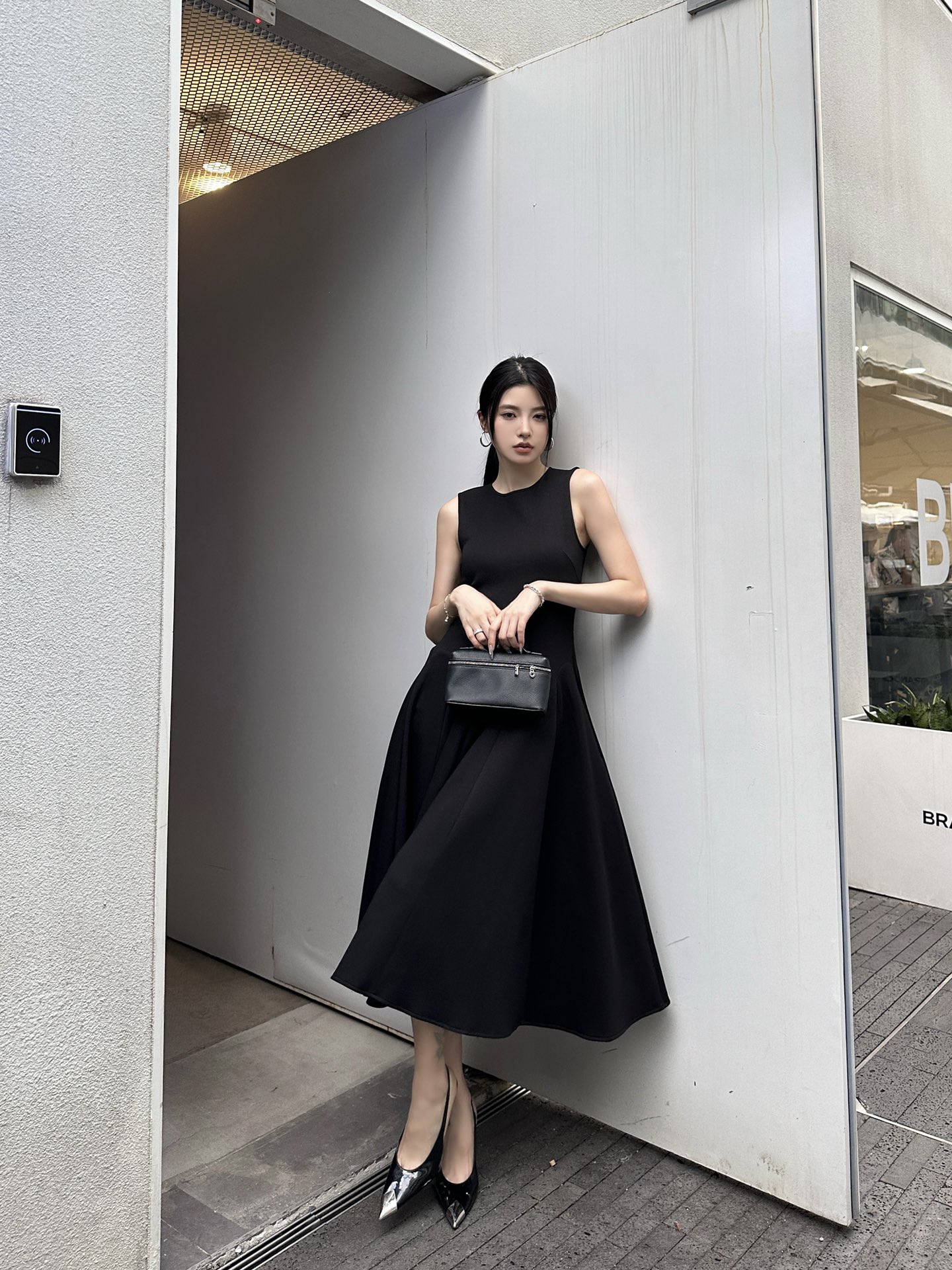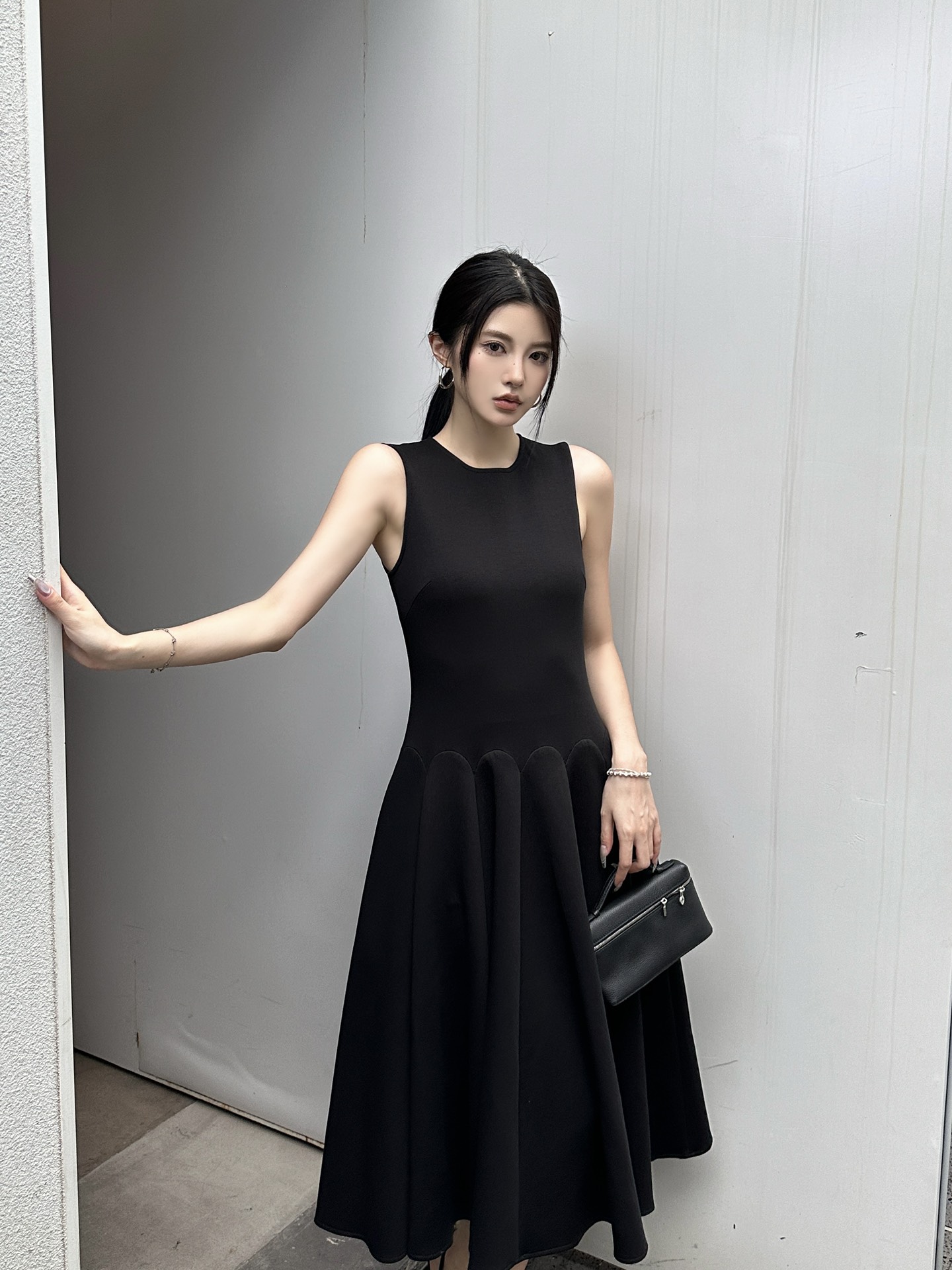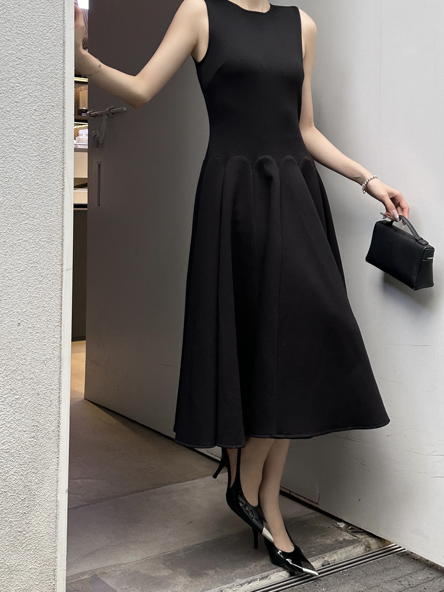 발렌티노 럭셔리 크레이프 미디 드레스 블랙