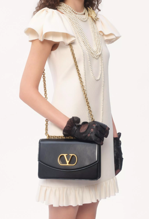 발렌티노 럭셔리 크레이프 미디 드레스 블랙