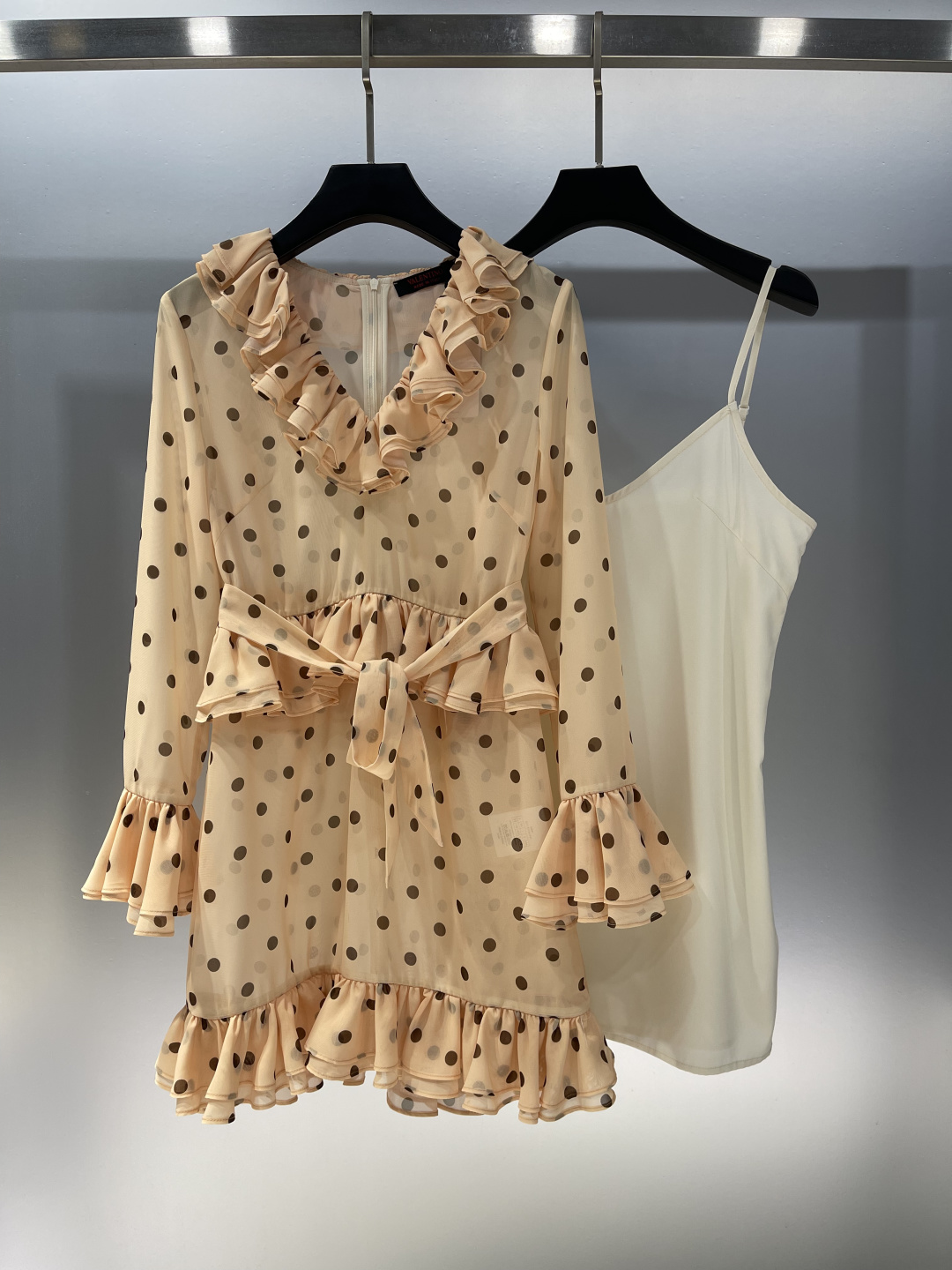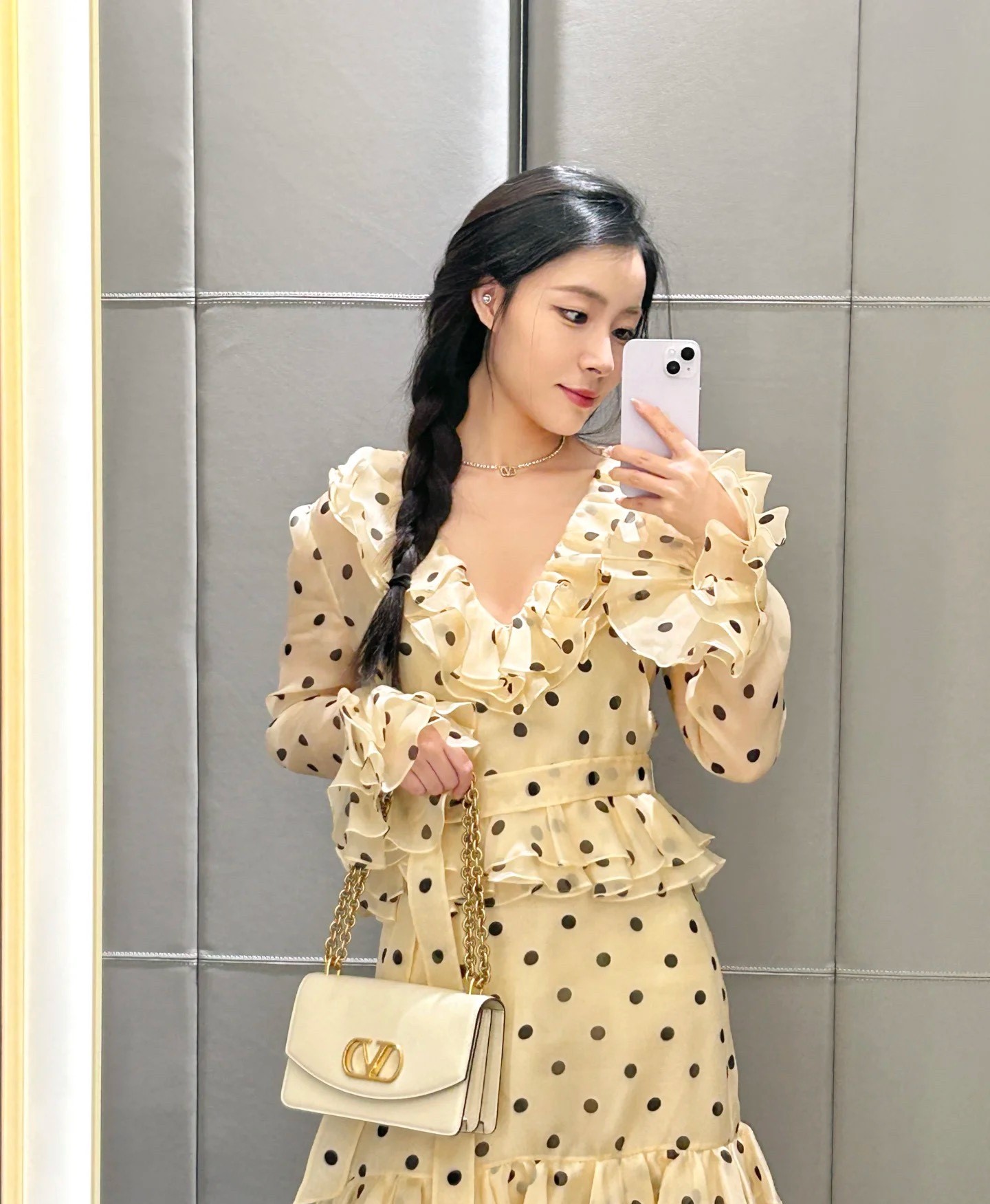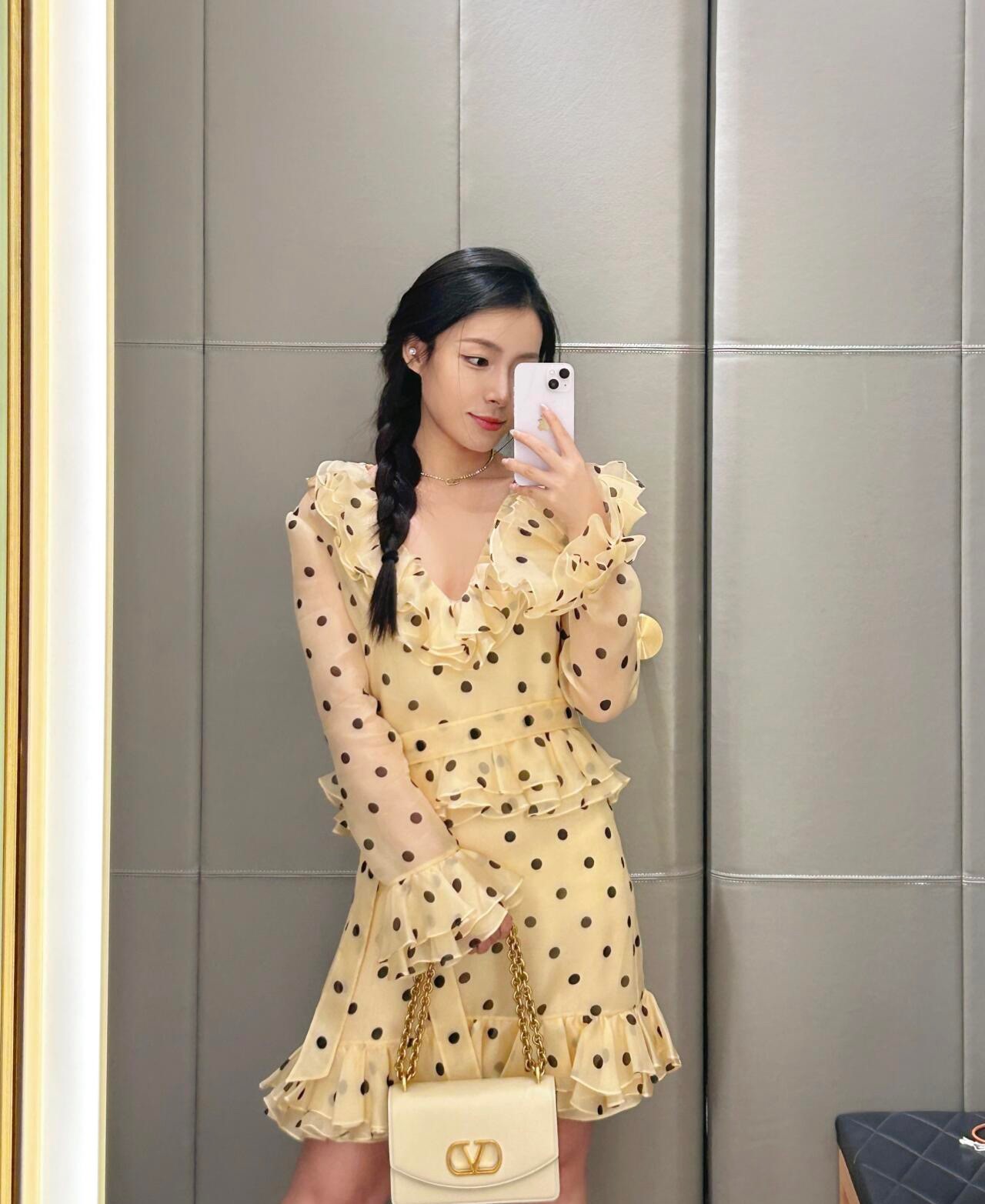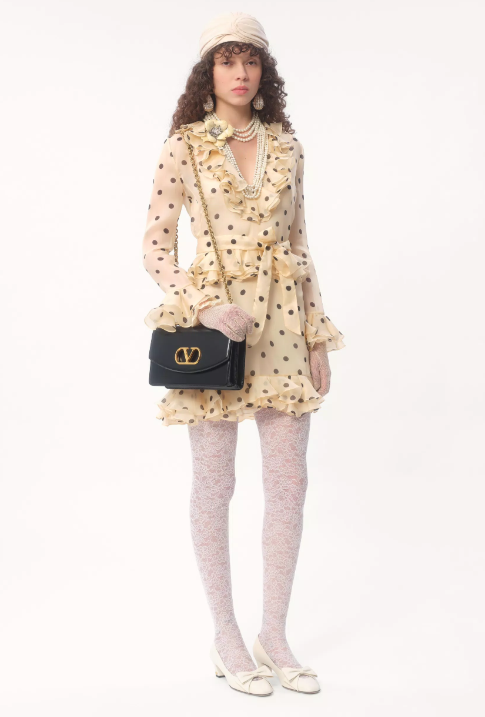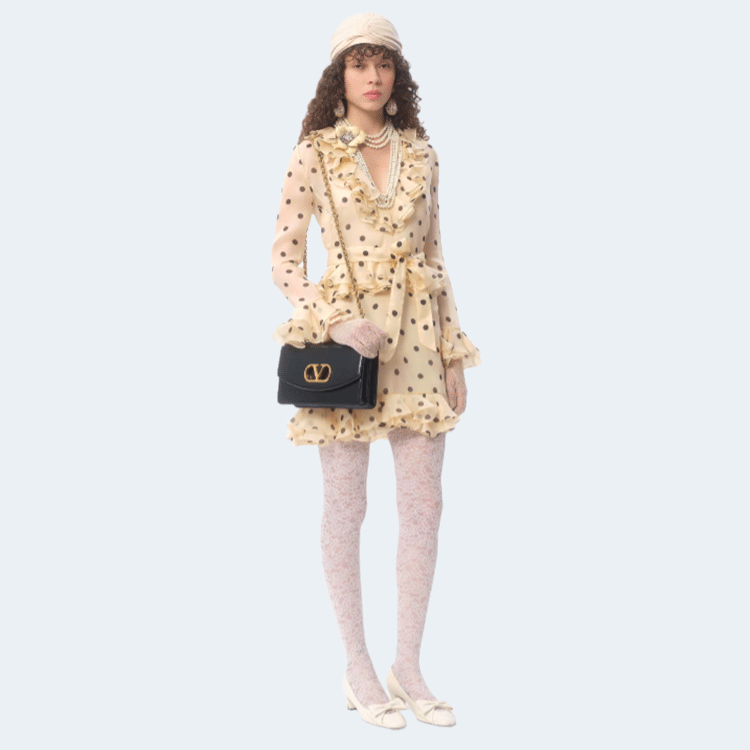 발렌티노 폴카 도트 프린트 오간자 쇼트 드레스