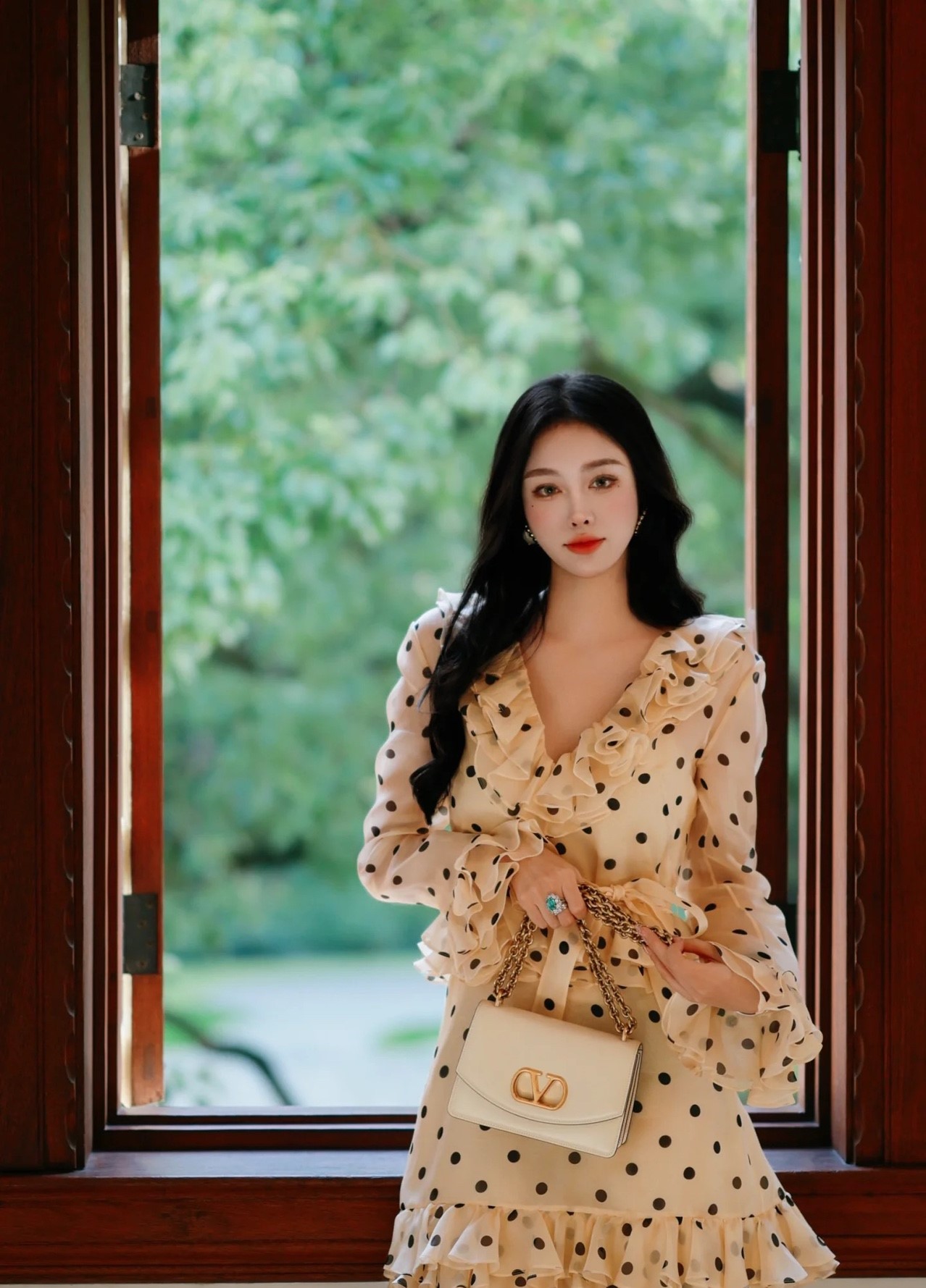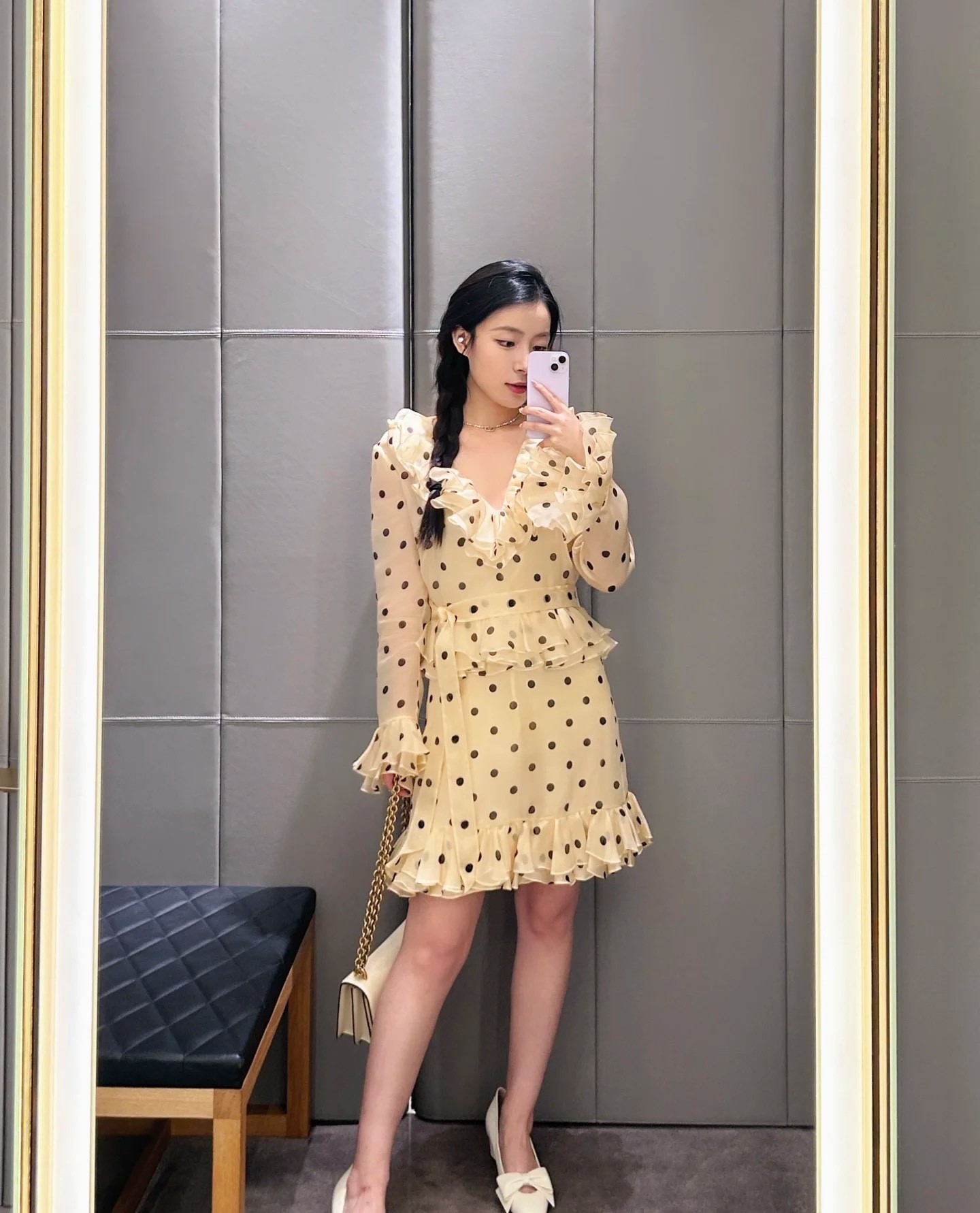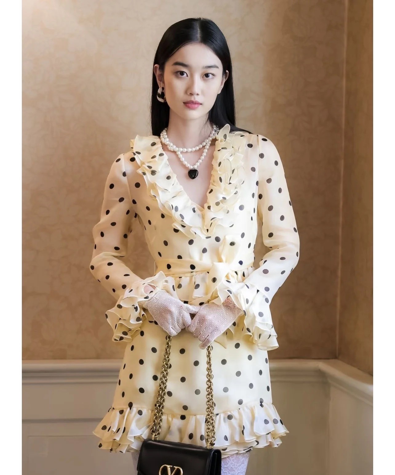 발렌티노 폴카 도트 프린트 오간자 쇼트 드레스