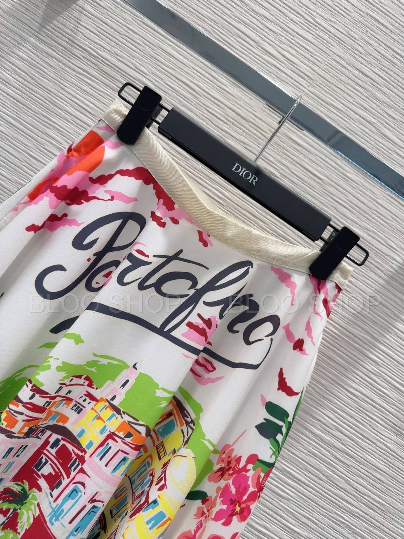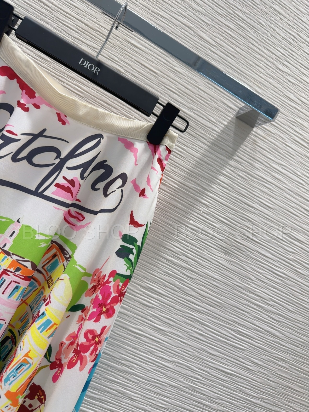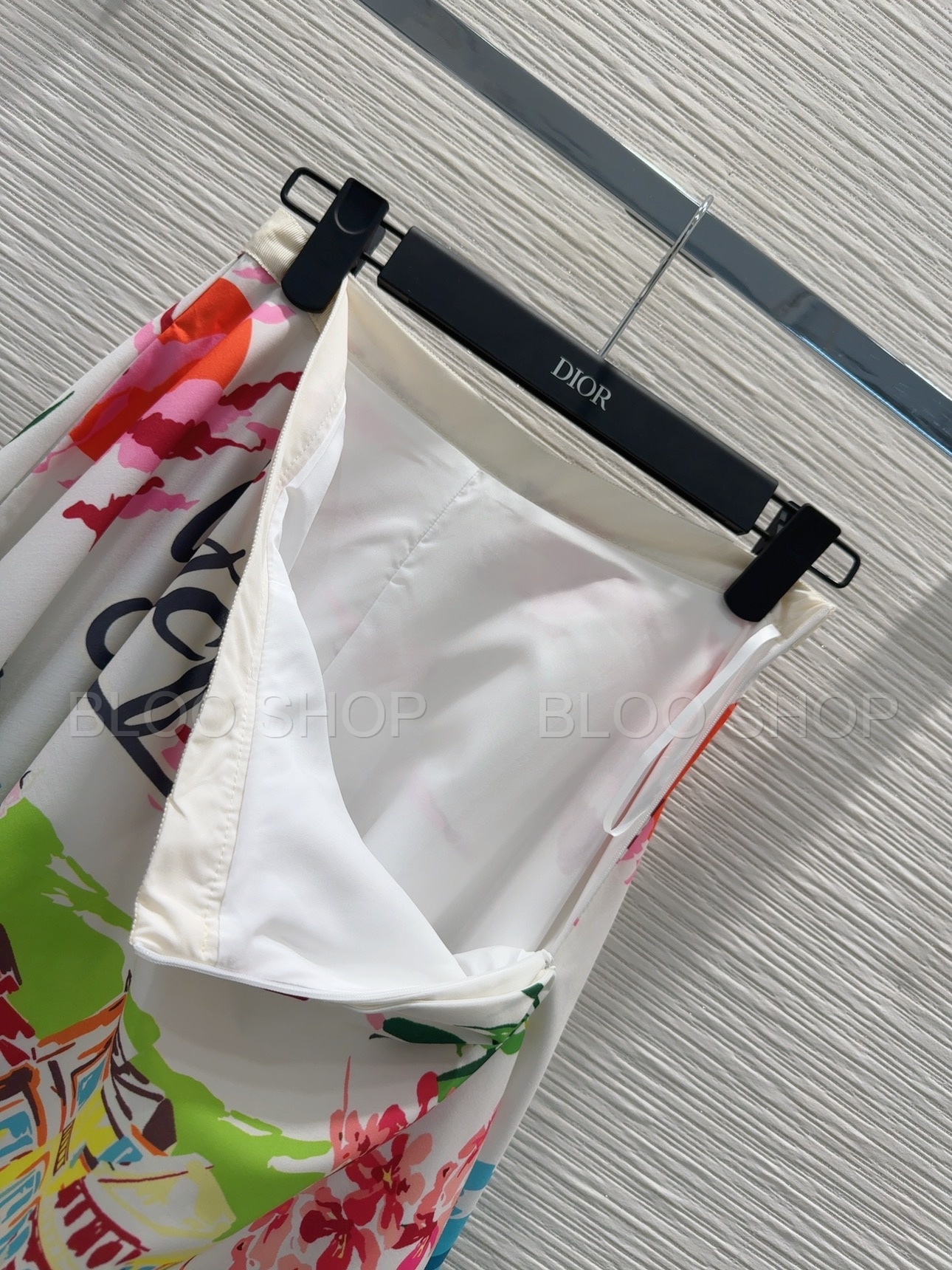 디올 Souvenir 미드 플레어 스커트 화이트 멀티컬러