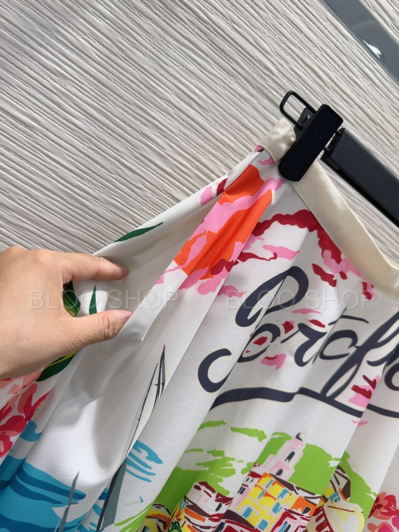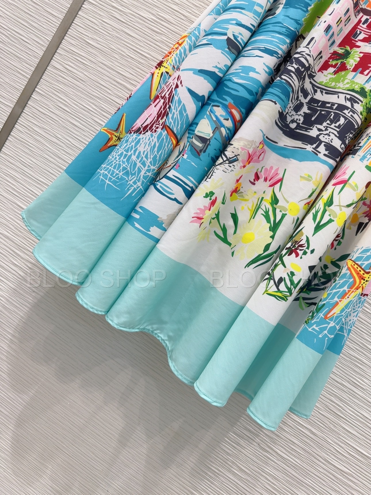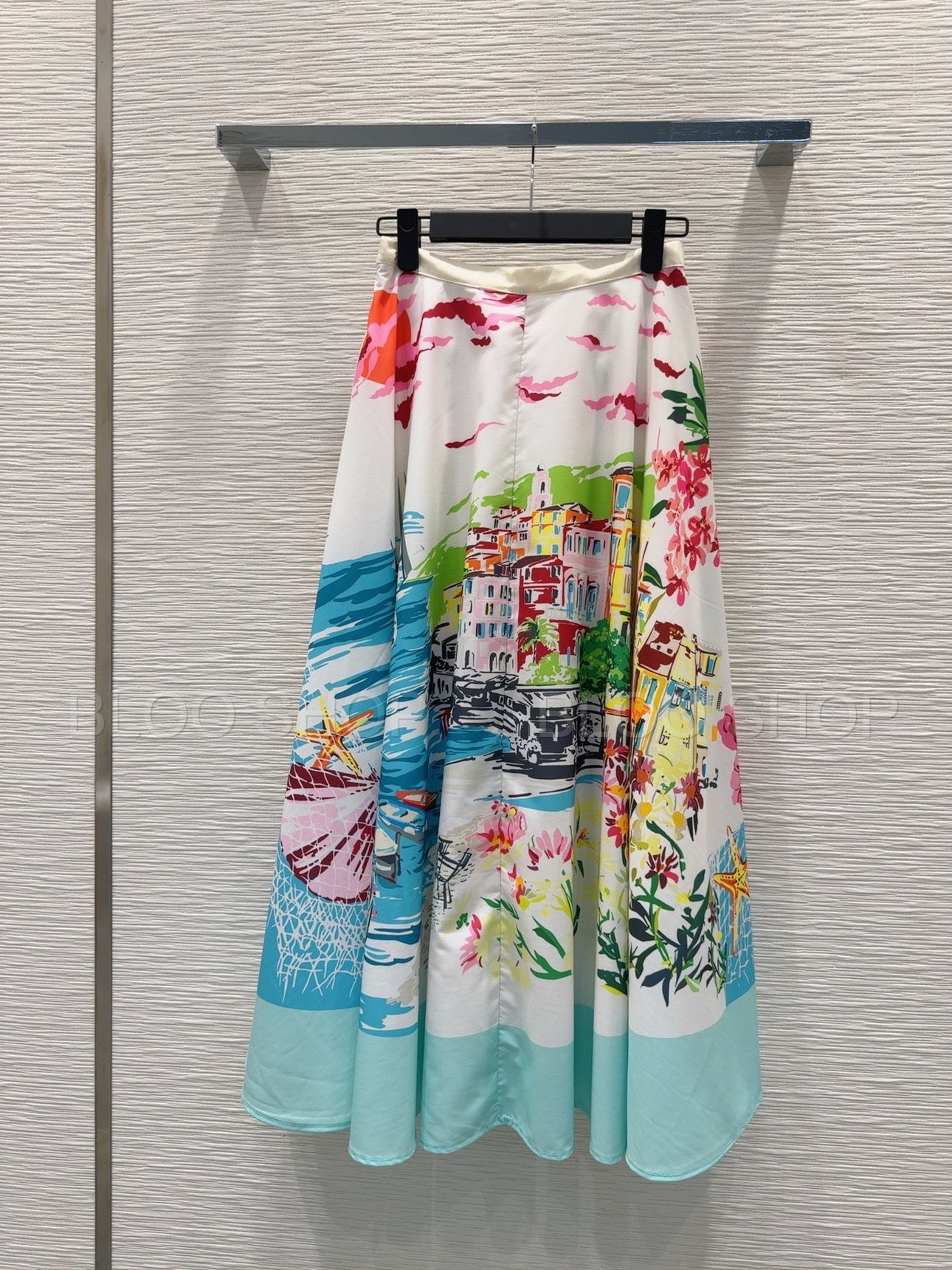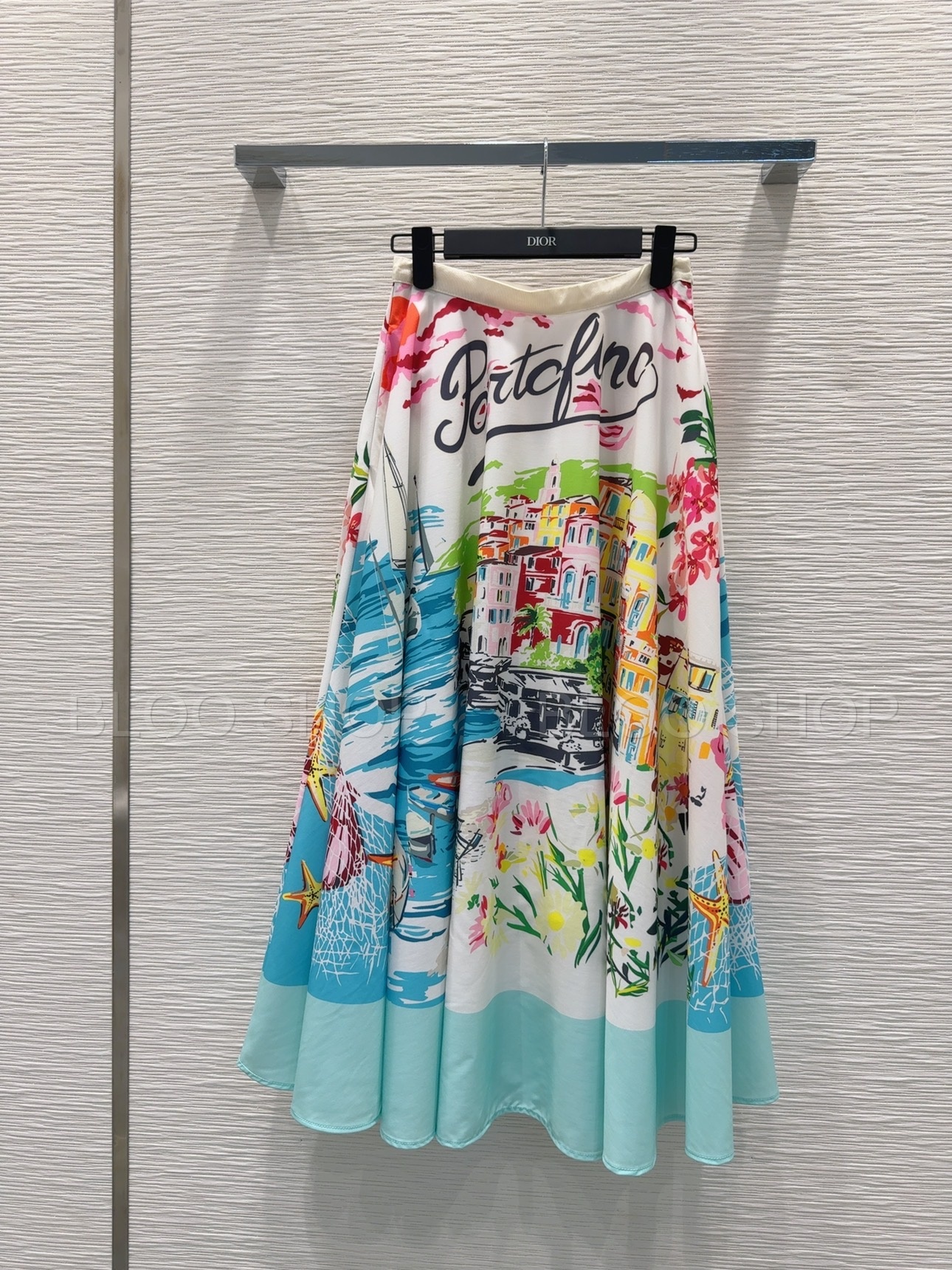 디올 Souvenir 미드 플레어 스커트 화이트 멀티컬러