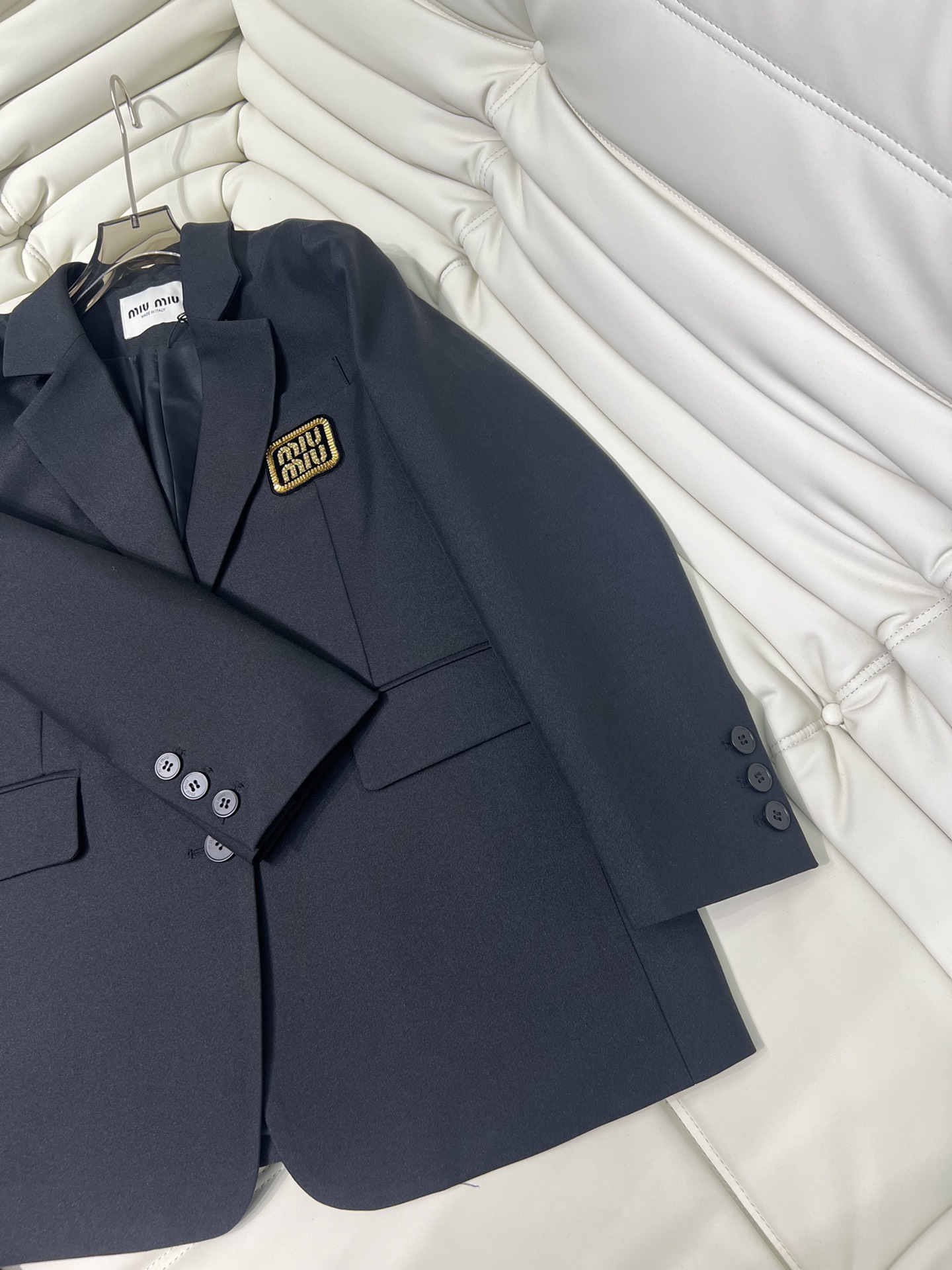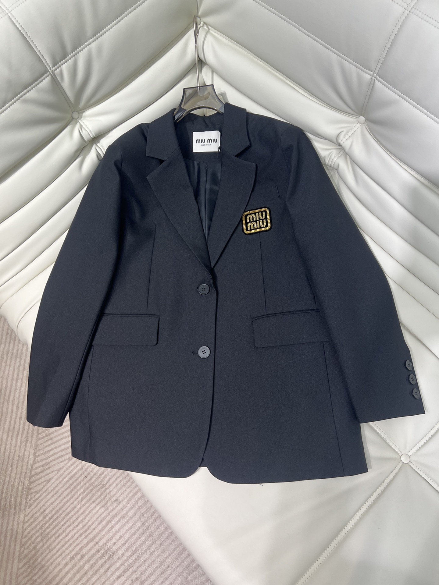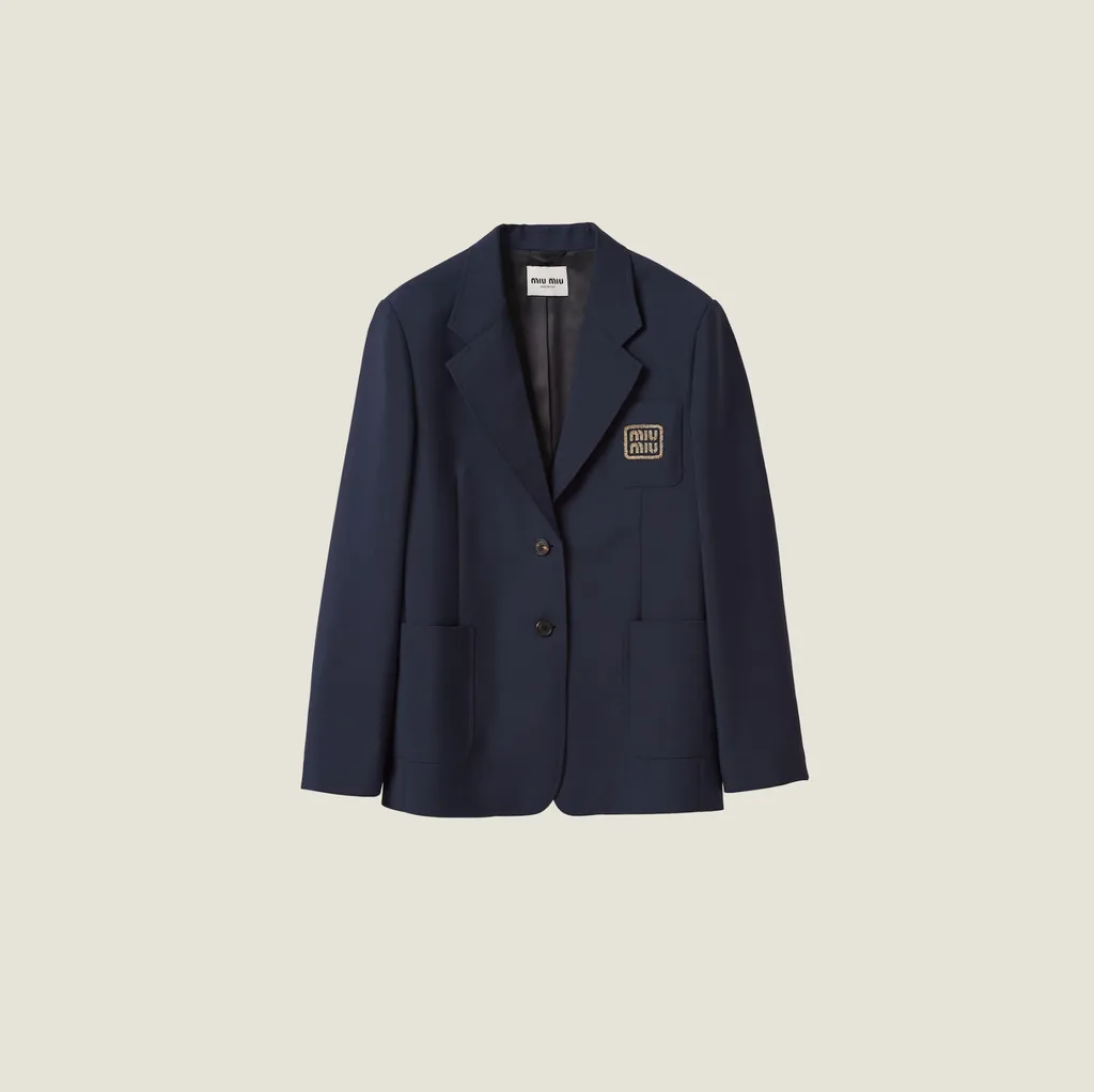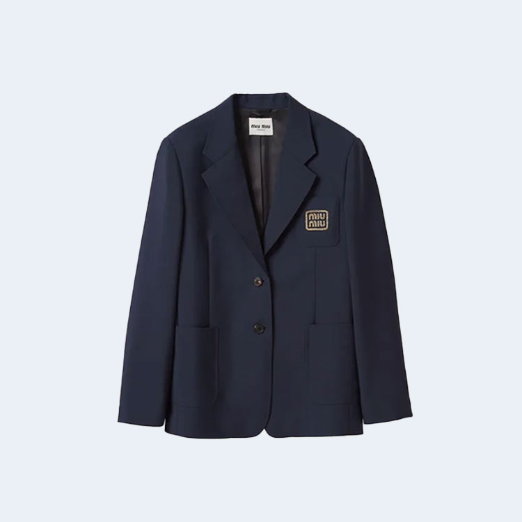 미우미우 로고 자수 싱글브레스트 모헤어 재킷