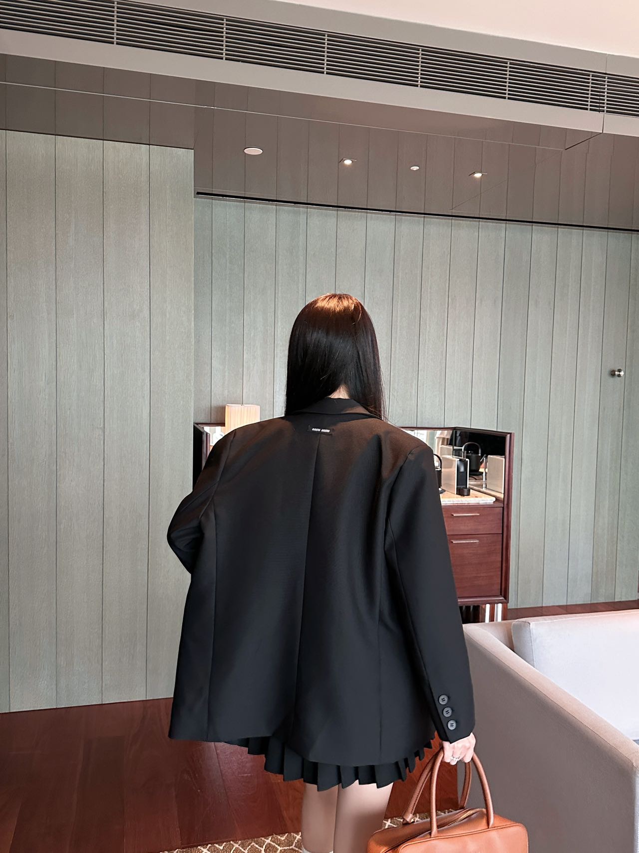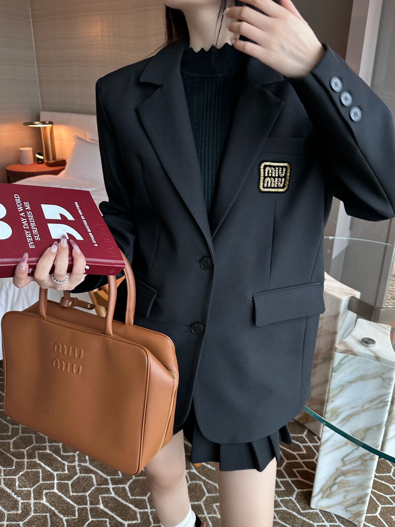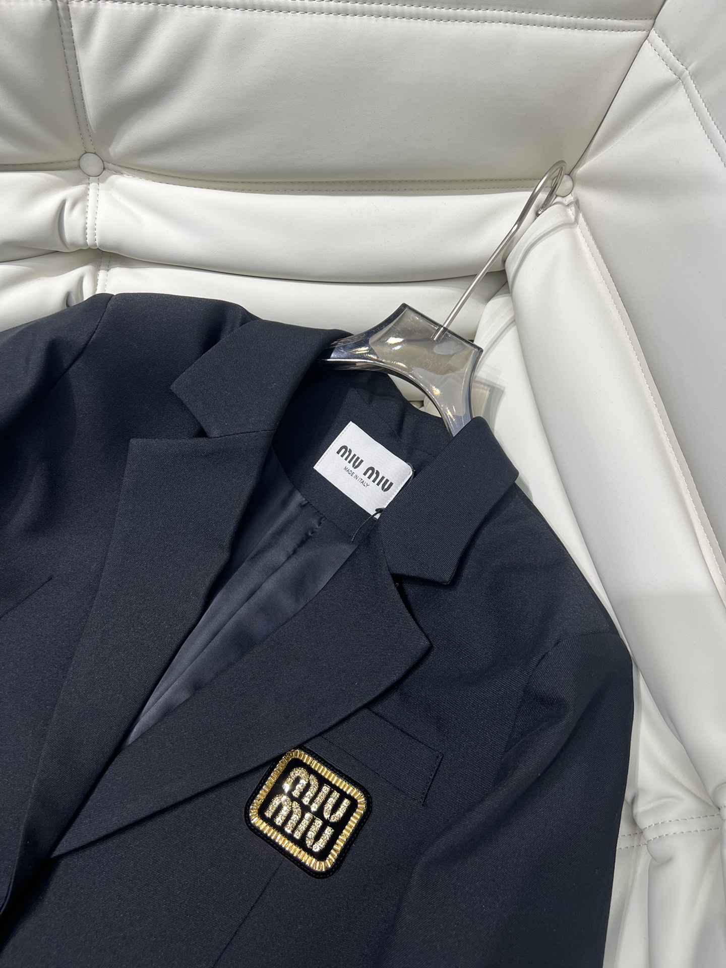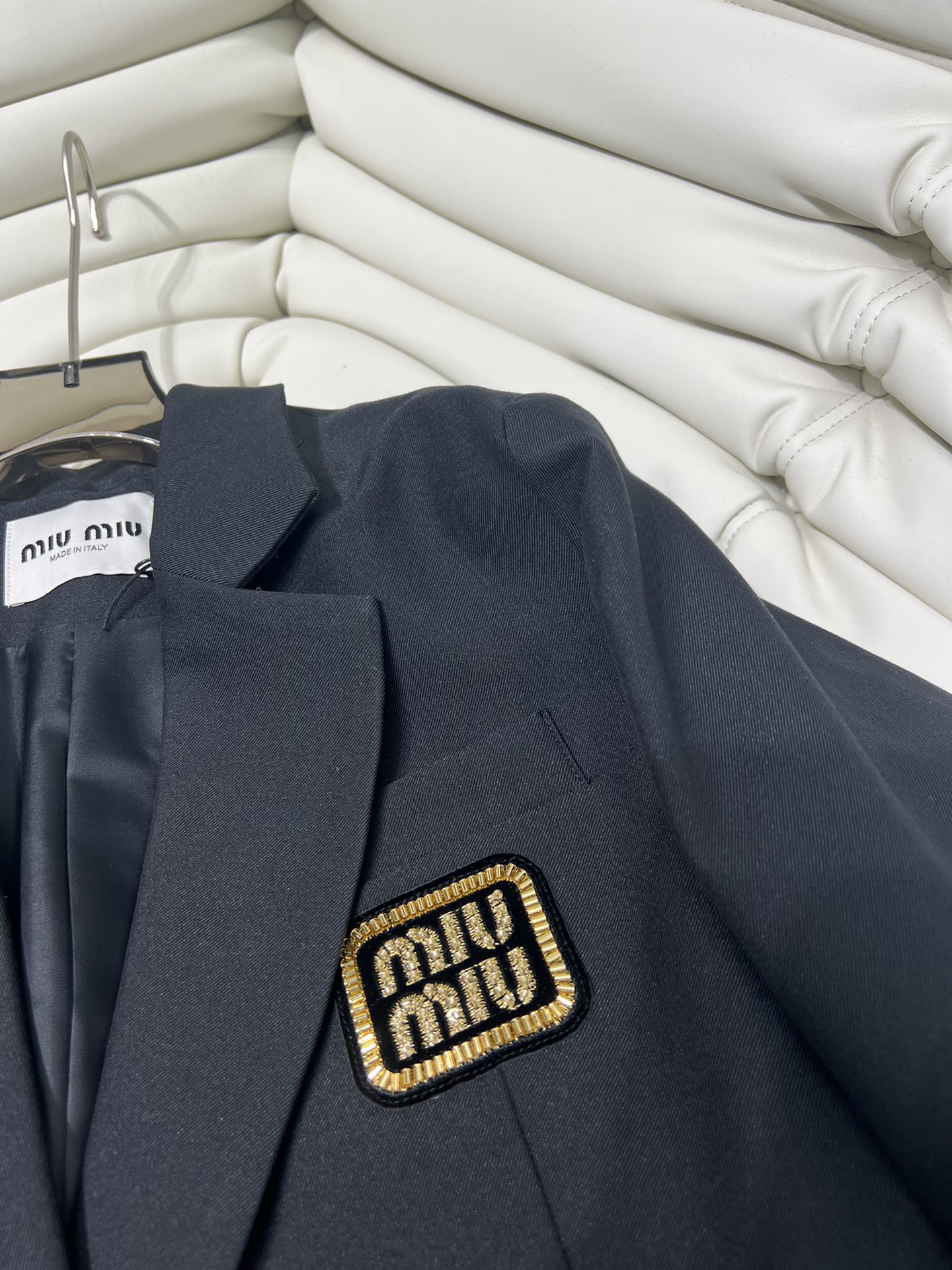 미우미우 로고 자수 싱글브레스트 모헤어 재킷