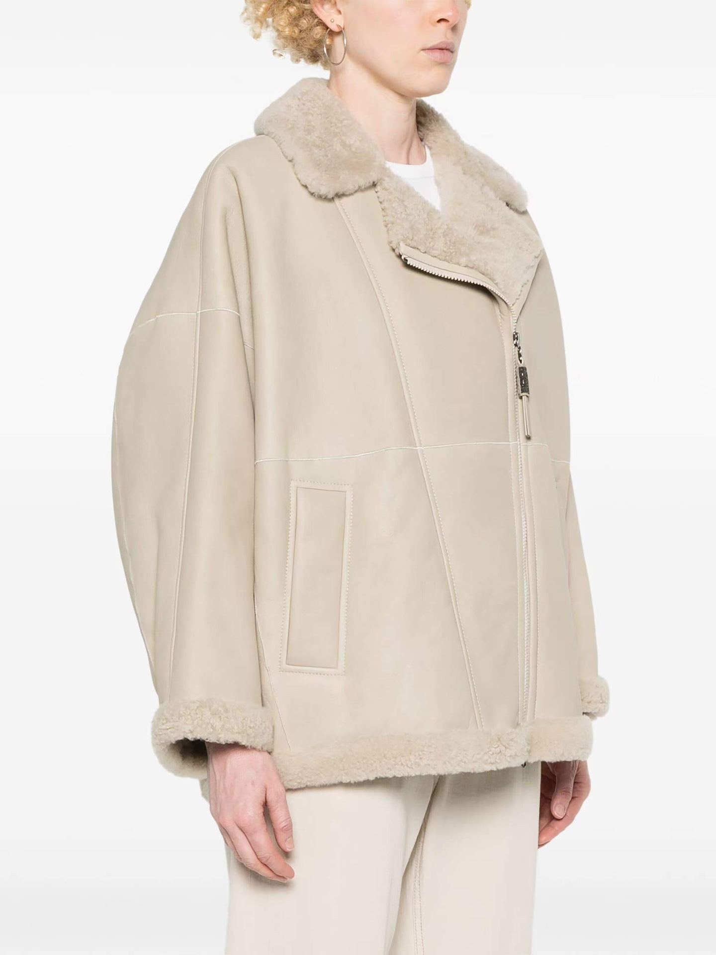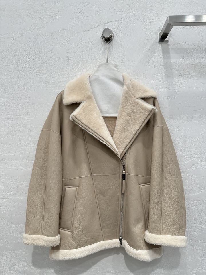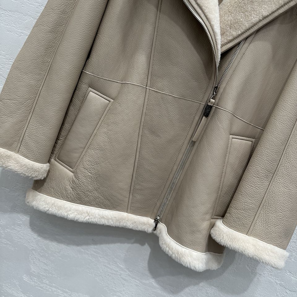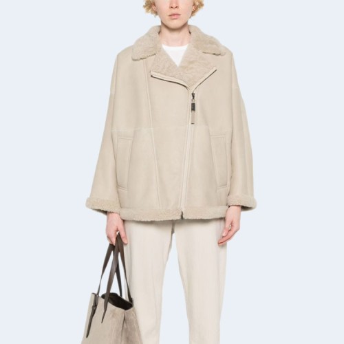 브루넬로 쿠치넬리 오프 센터 집업 바이커 재킷