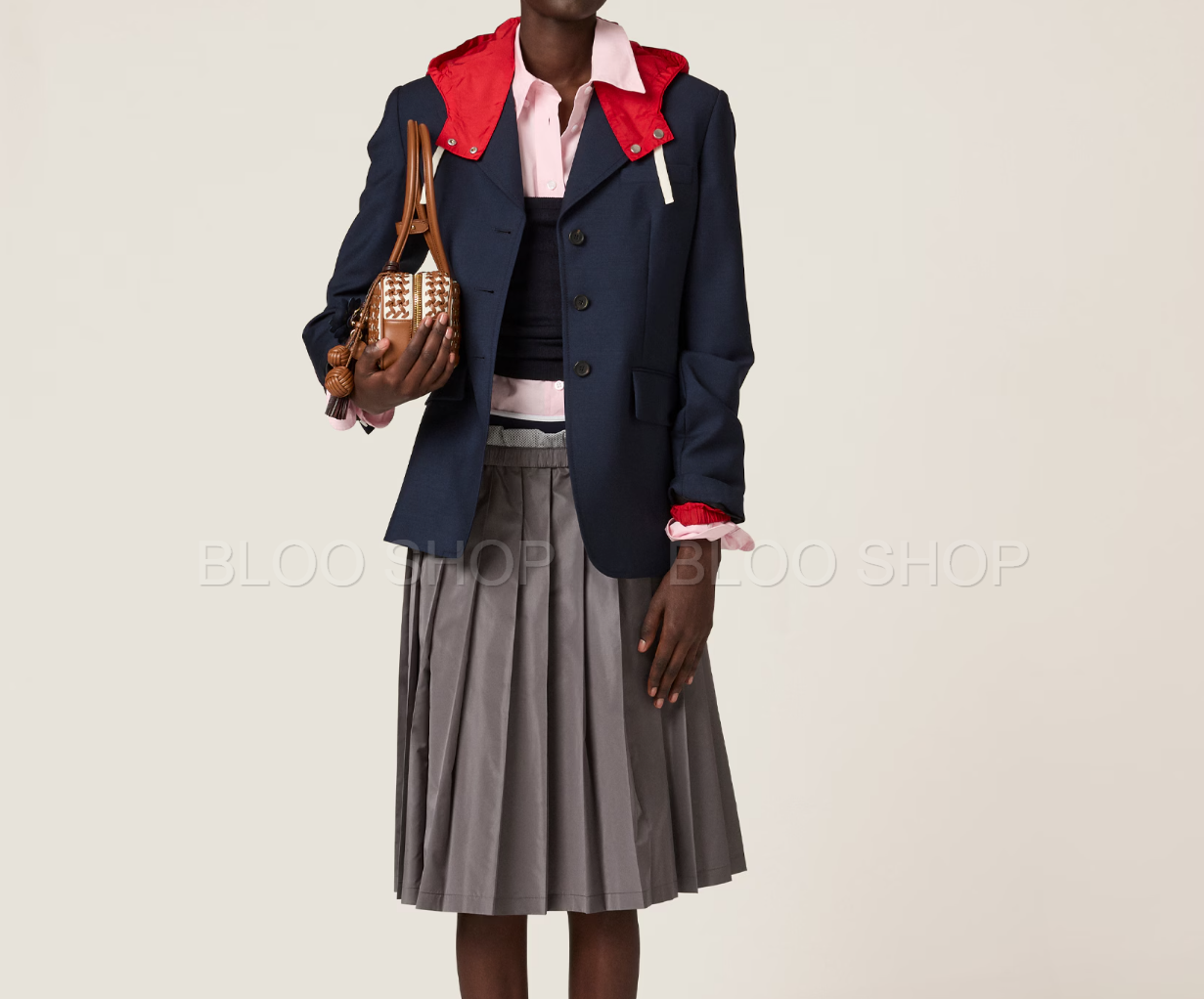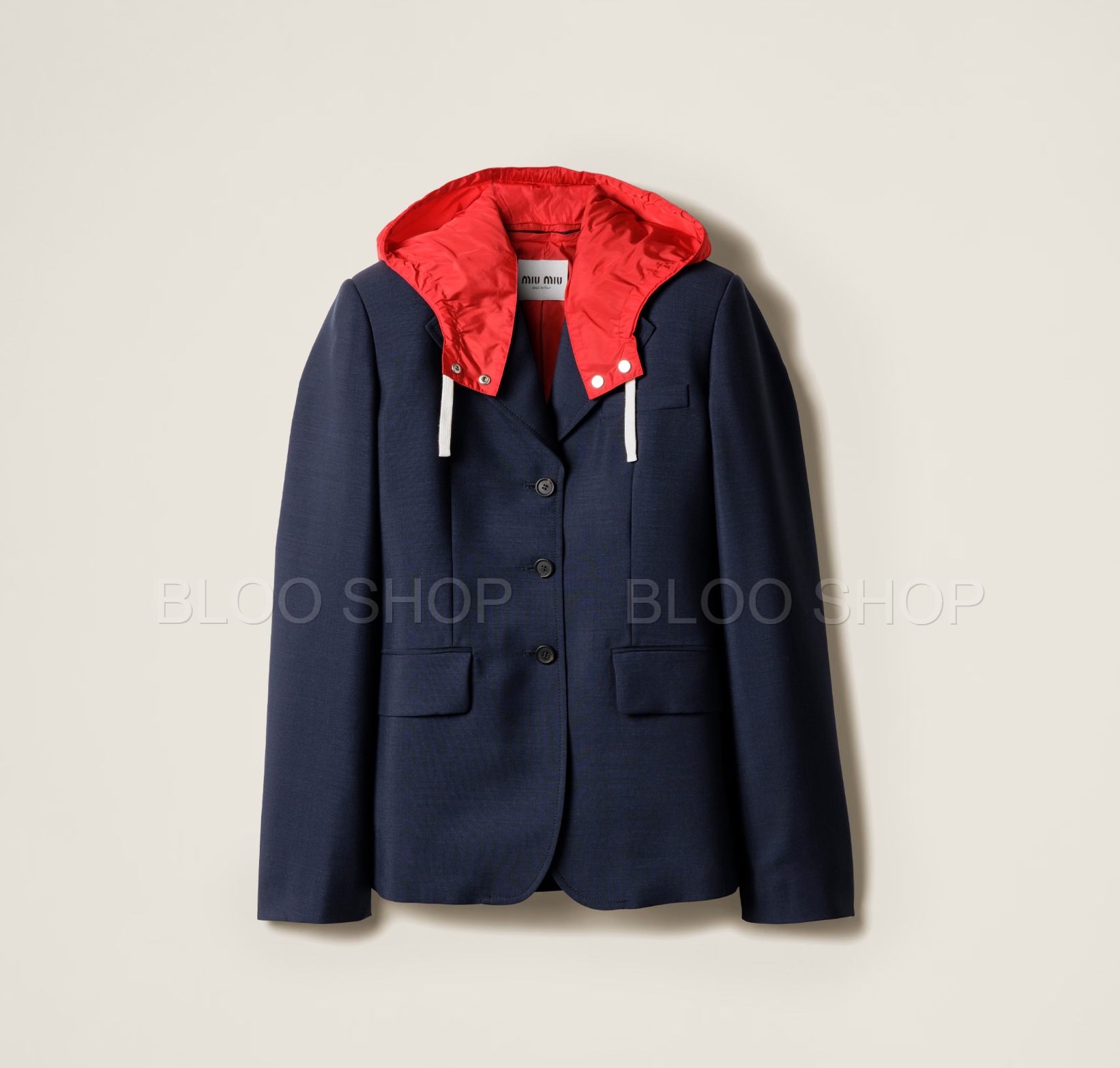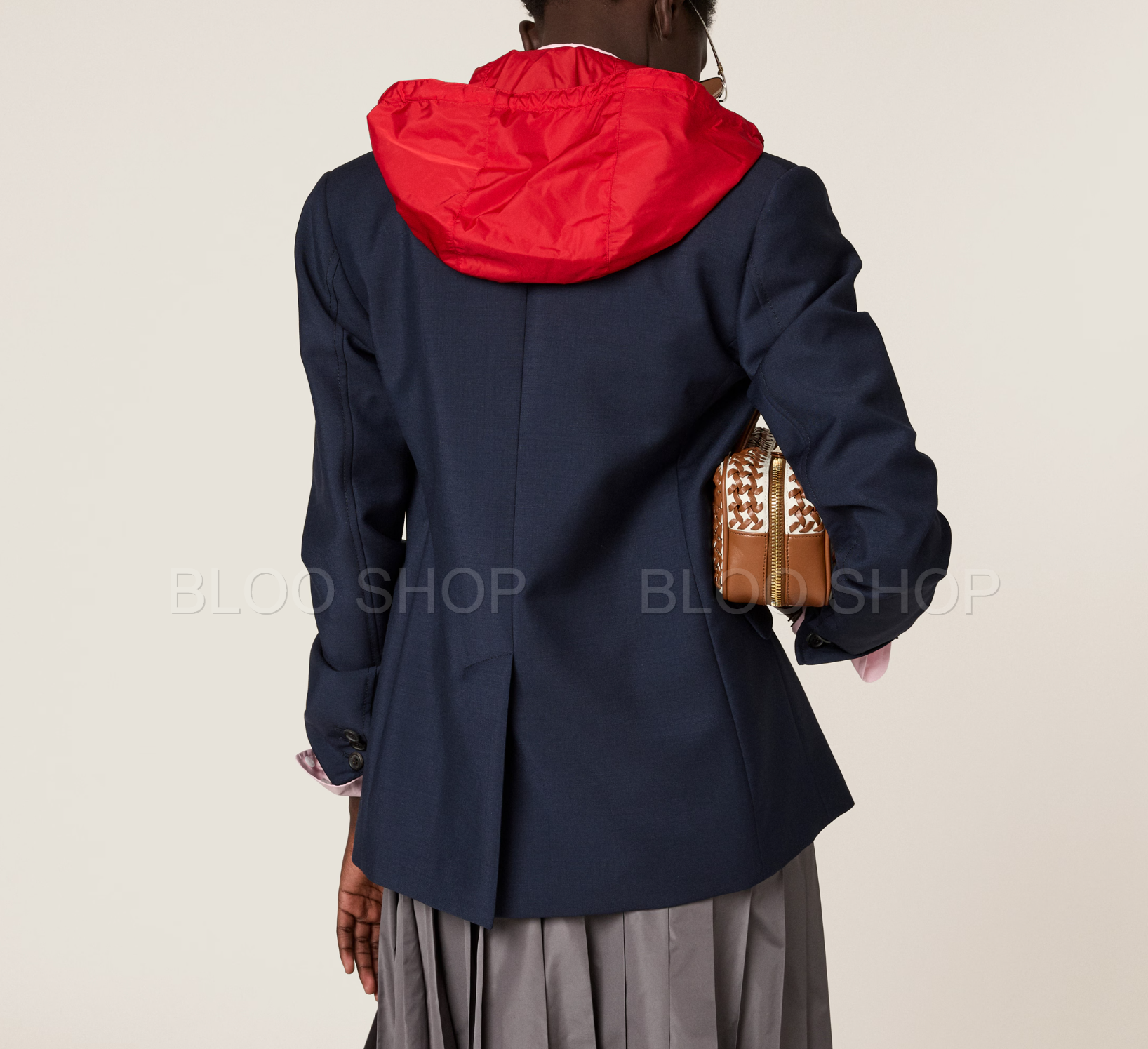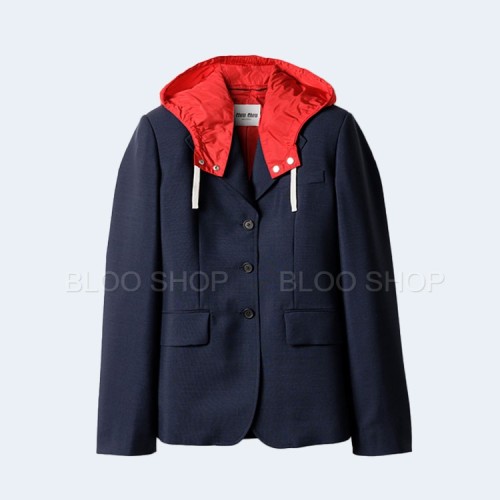 미우미우 더블브레스티드 모헤어 테크니컬 폰지 재킷 네이비