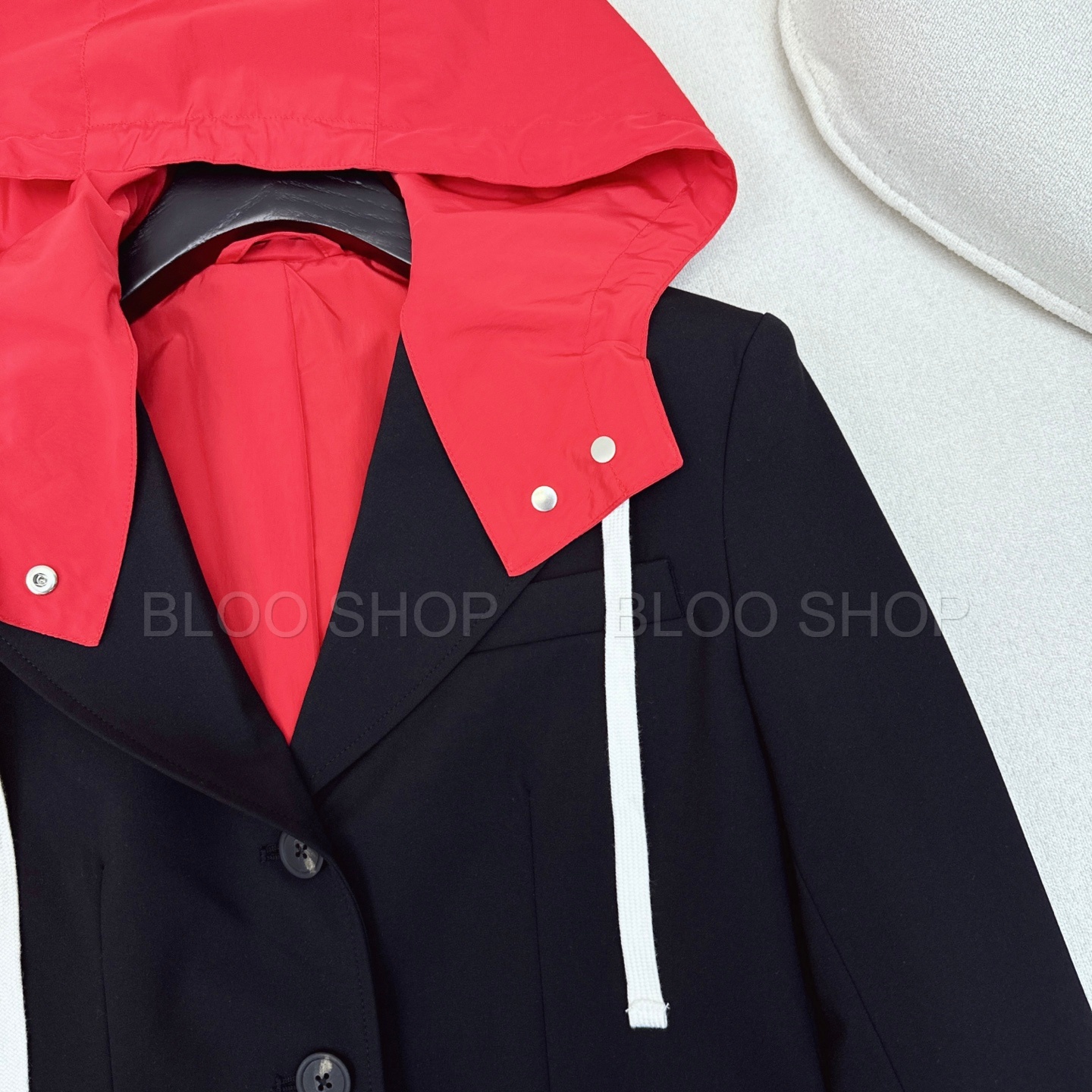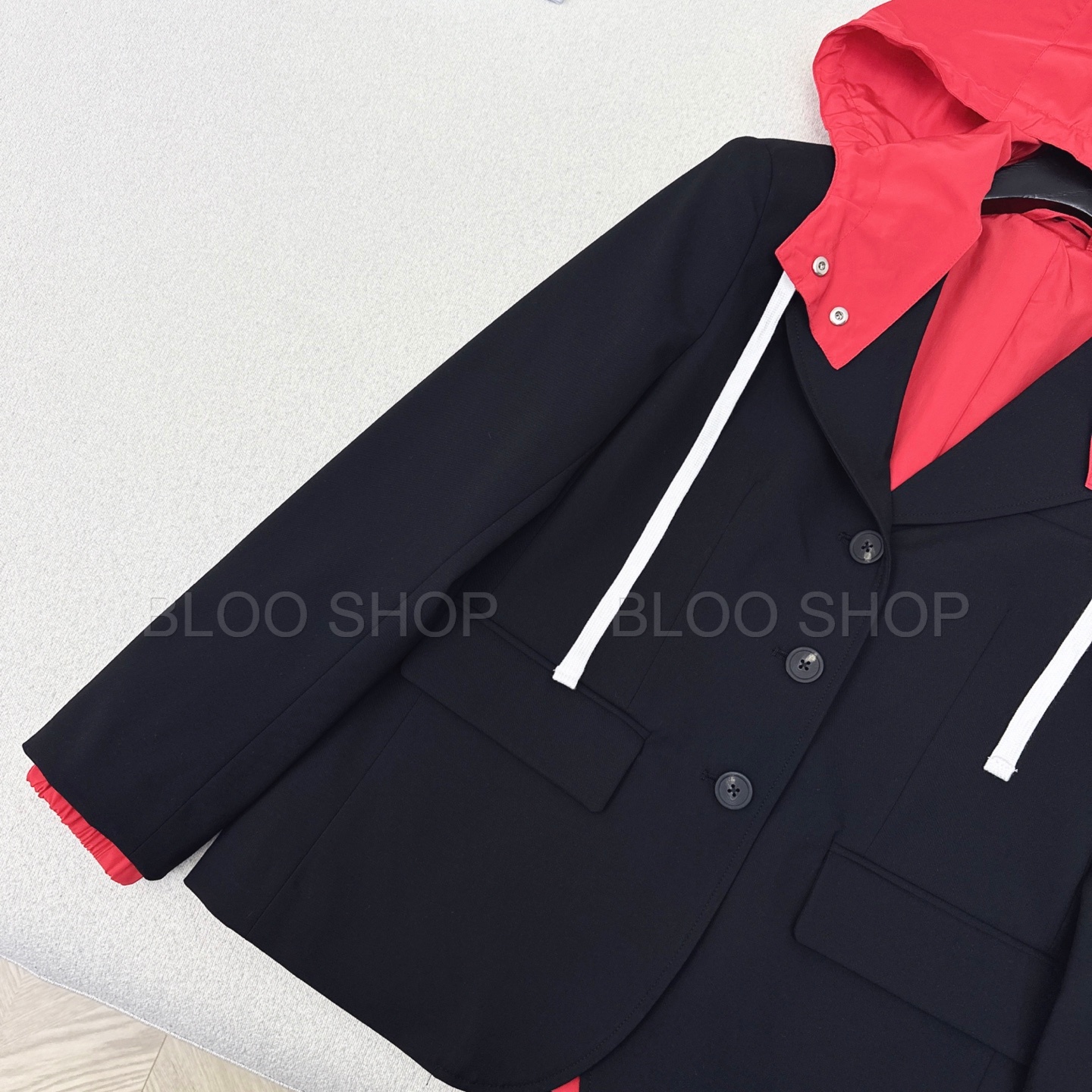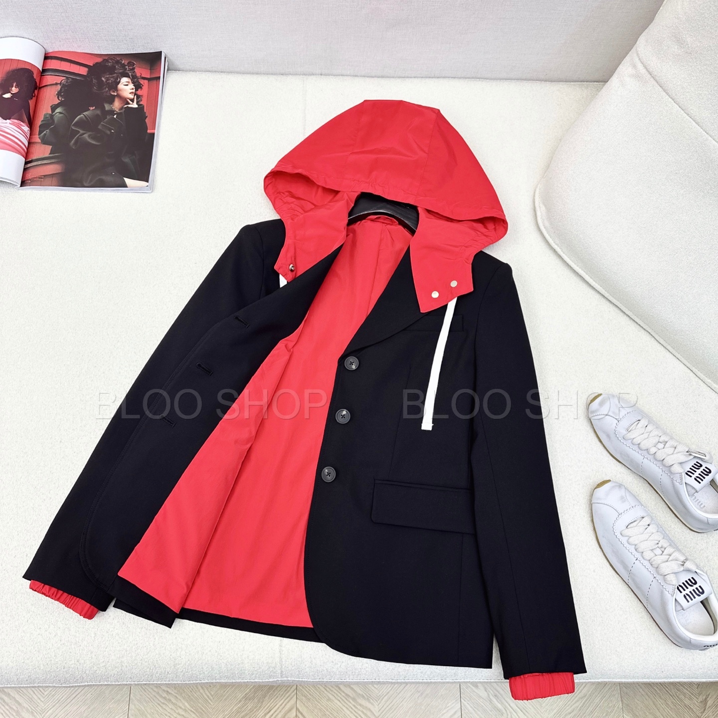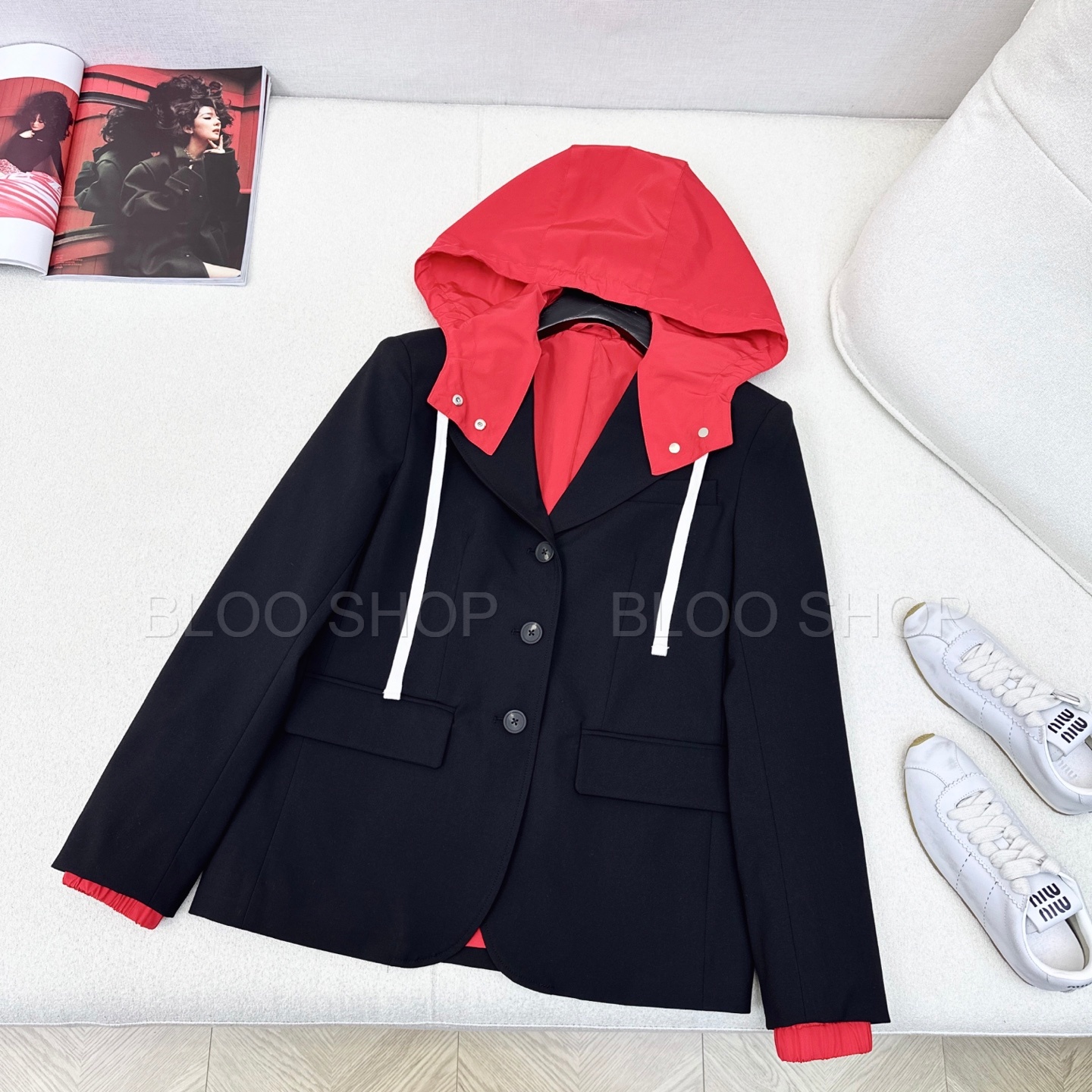 미우미우 더블브레스티드 모헤어 테크니컬 폰지 재킷 네이비