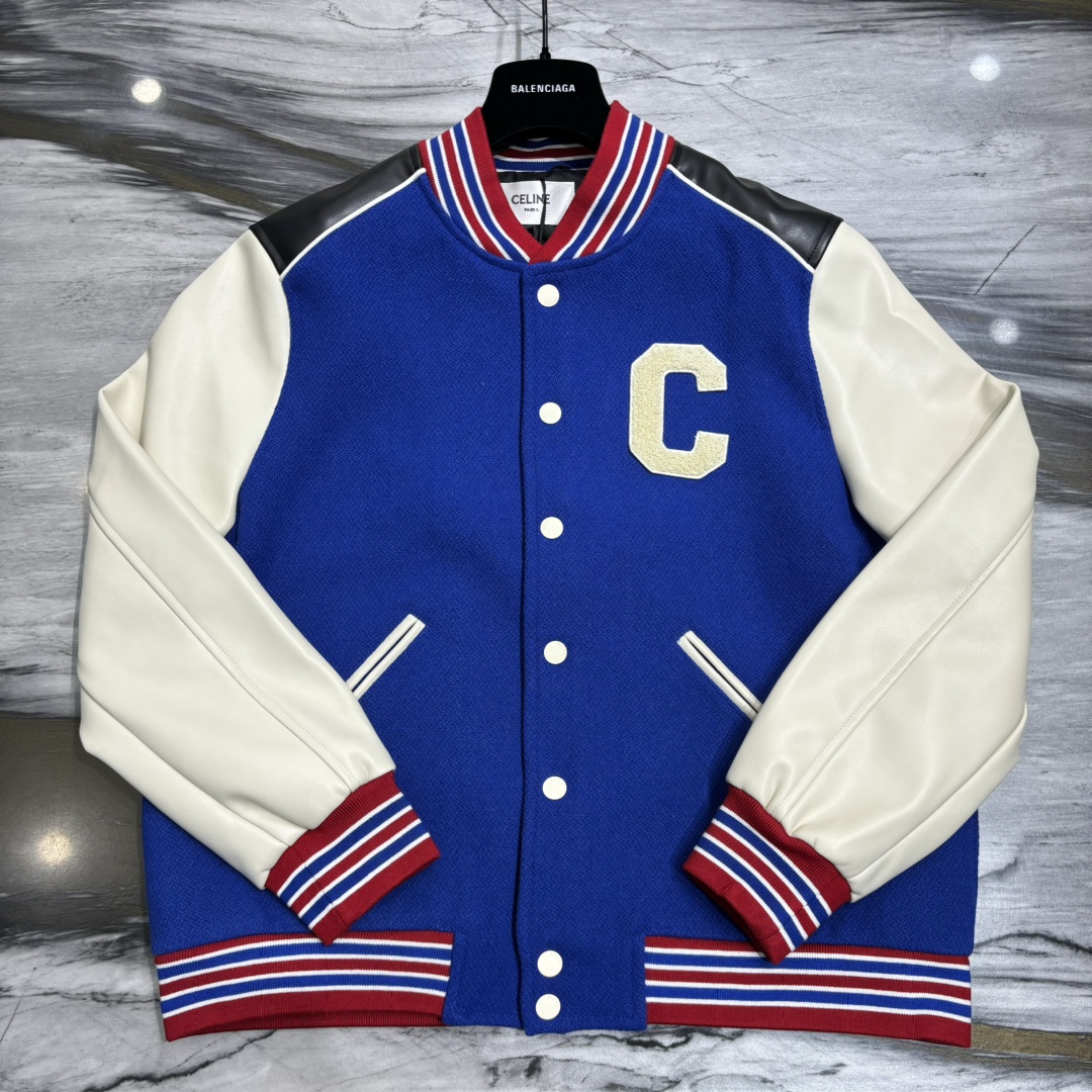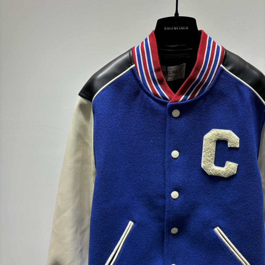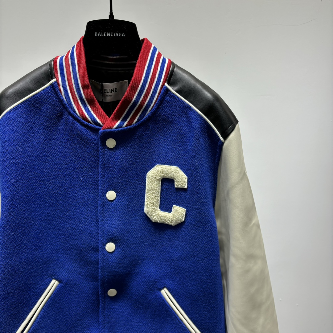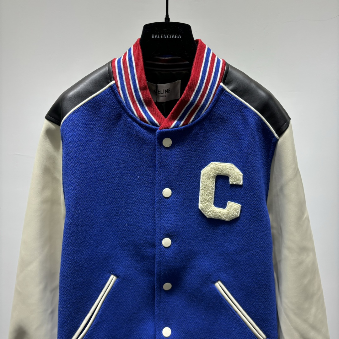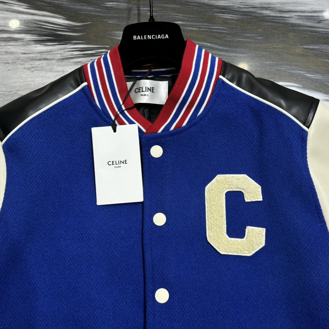 셀린느 C로고 울 바시티 자켓 코발트