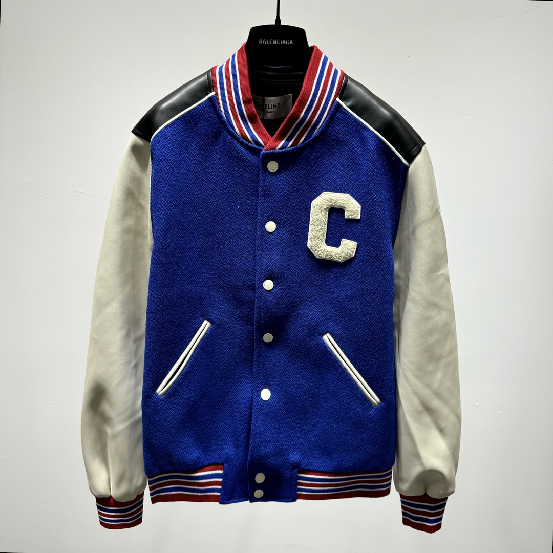 셀린느 C로고 울 바시티 자켓 블랙