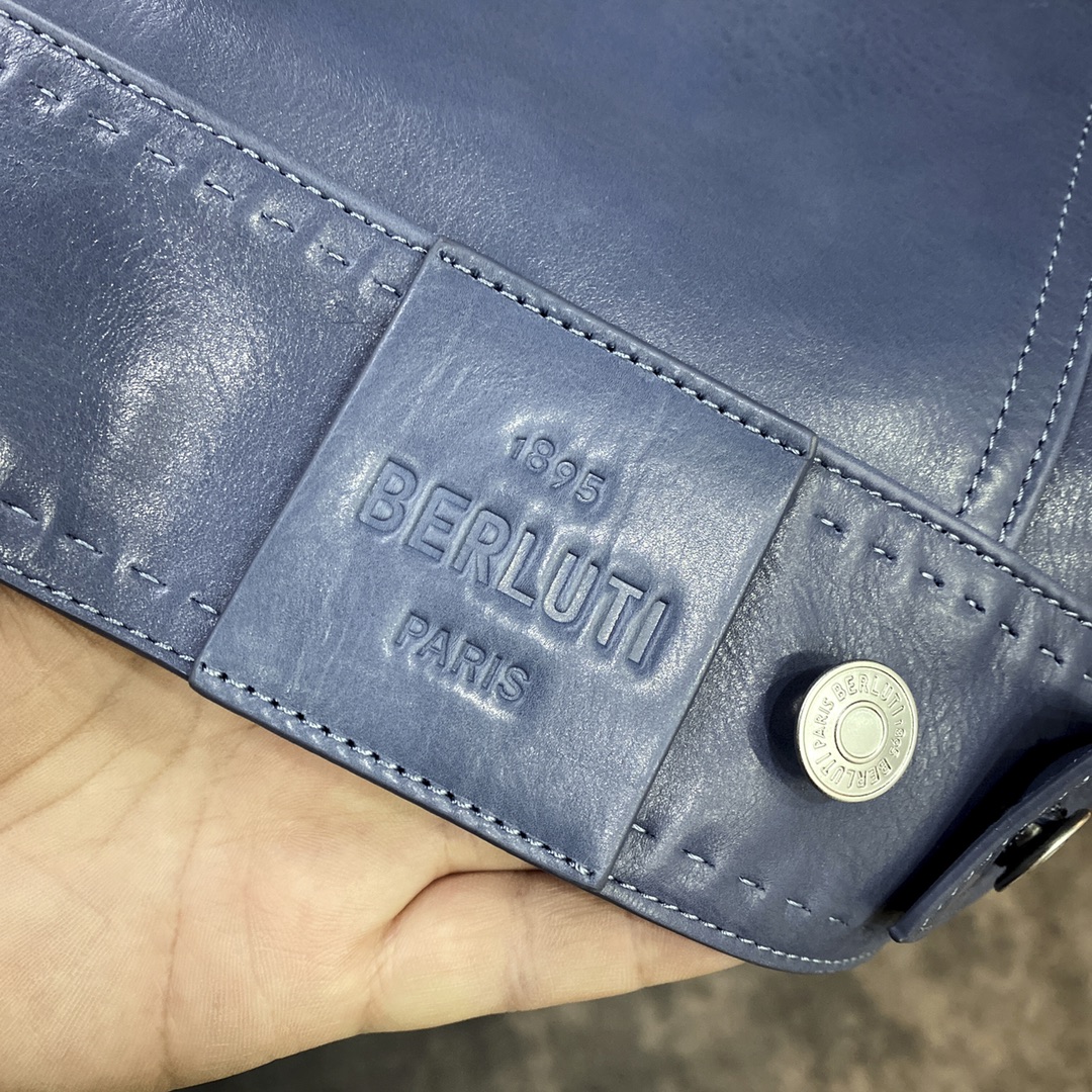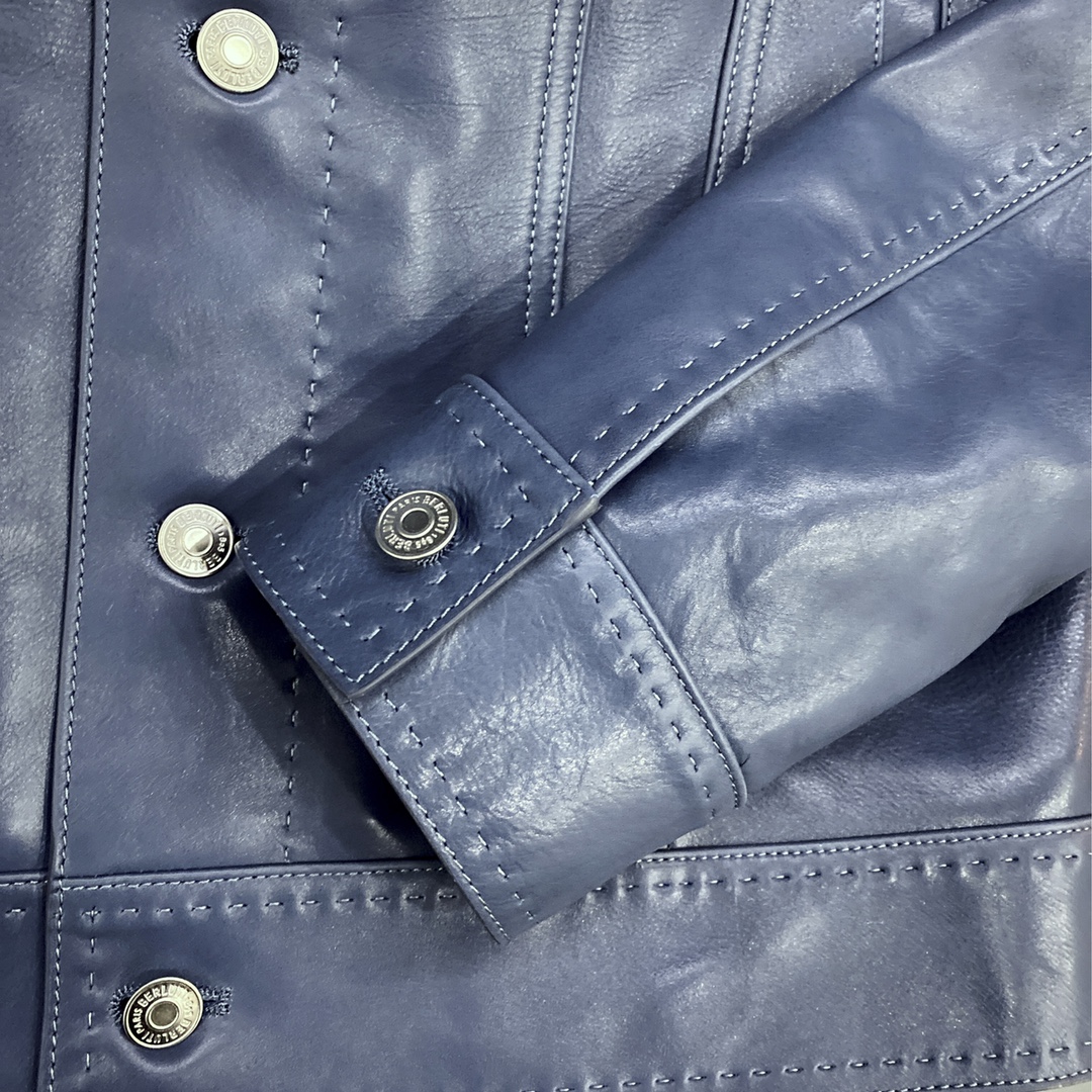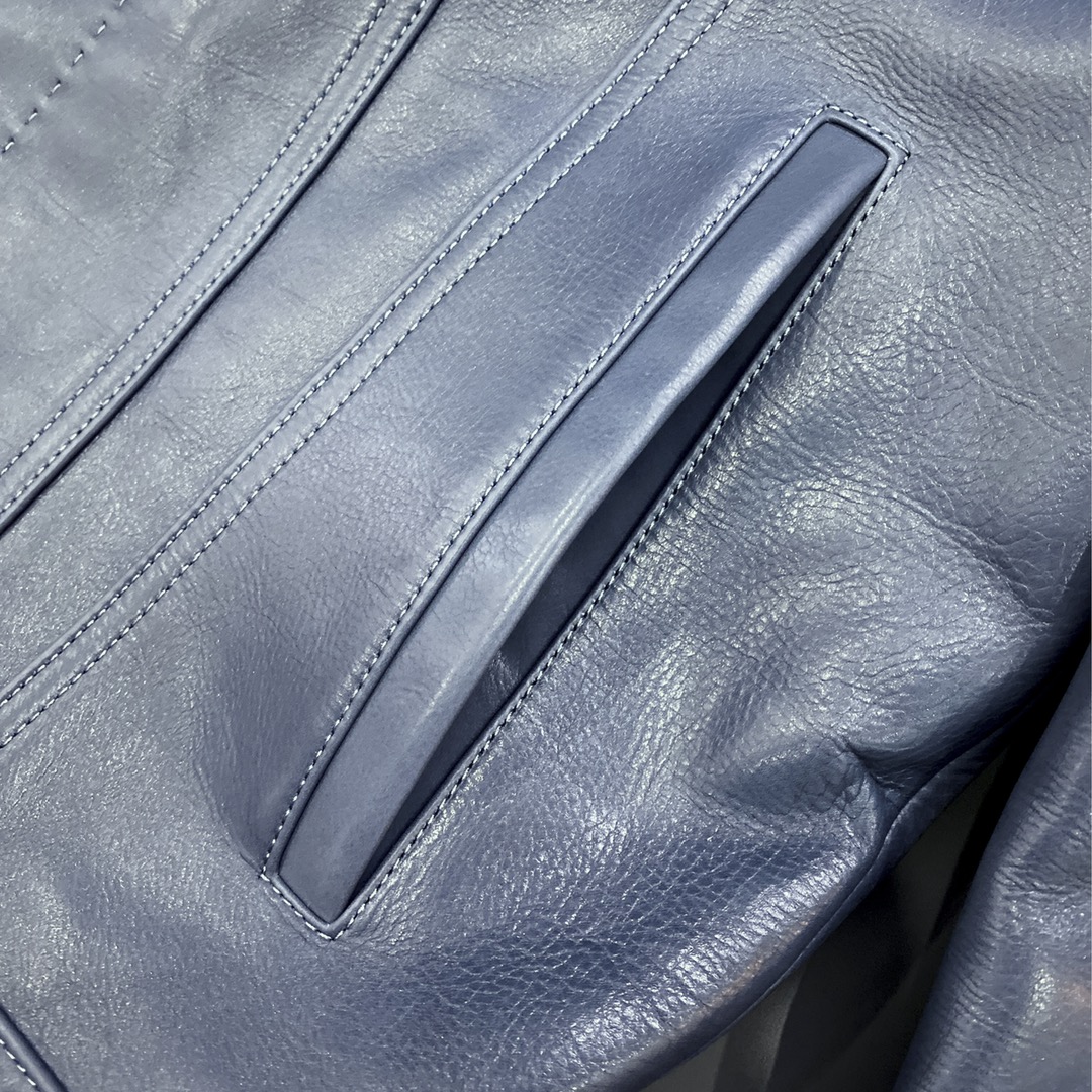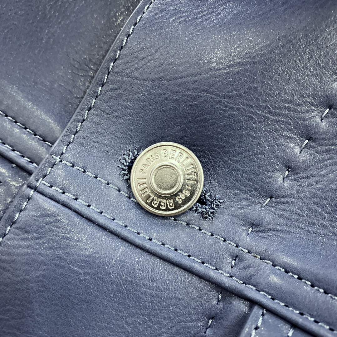 벨루티 램스킨 데님 파티나 가죽 블루종