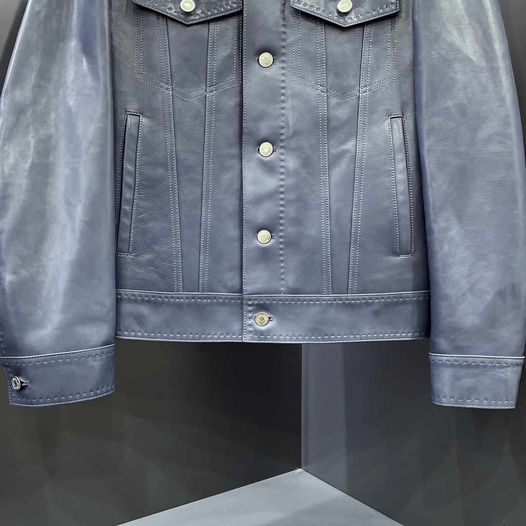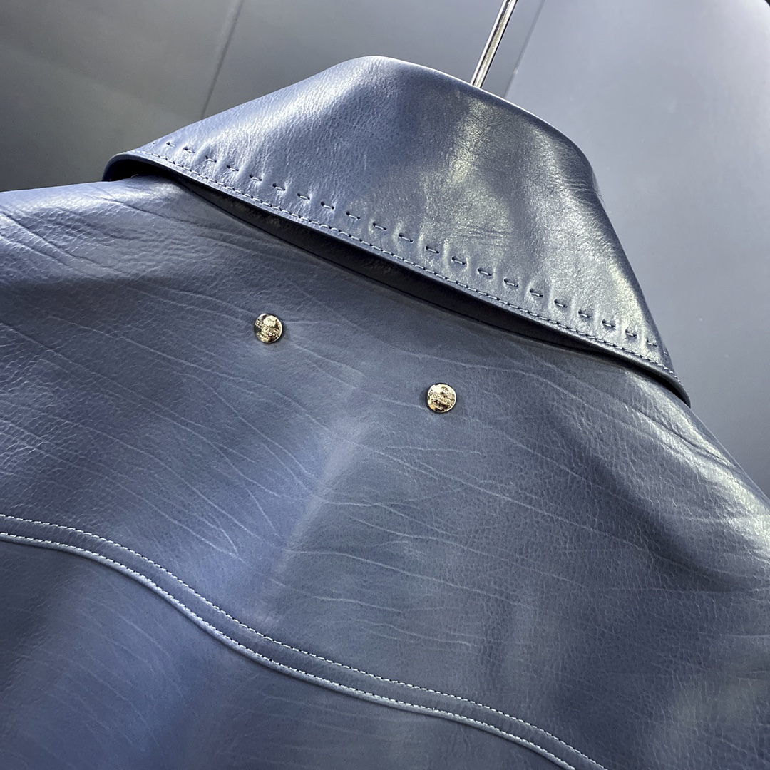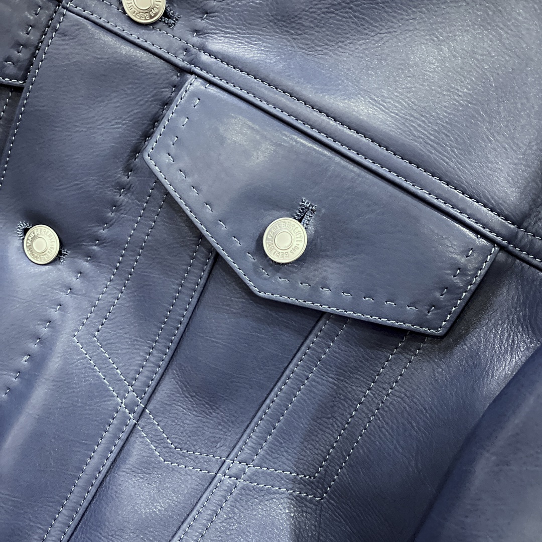 벨루티 램스킨 데님 파티나 가죽 블루종