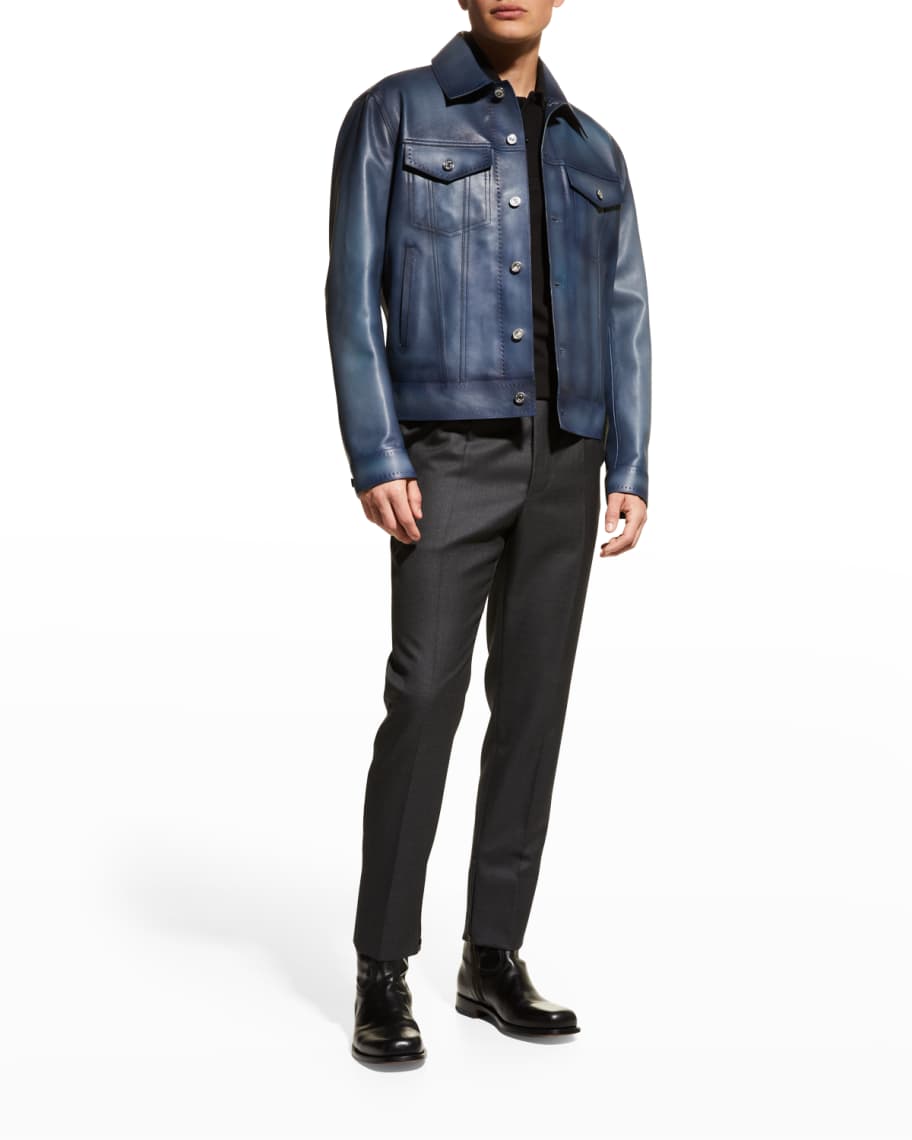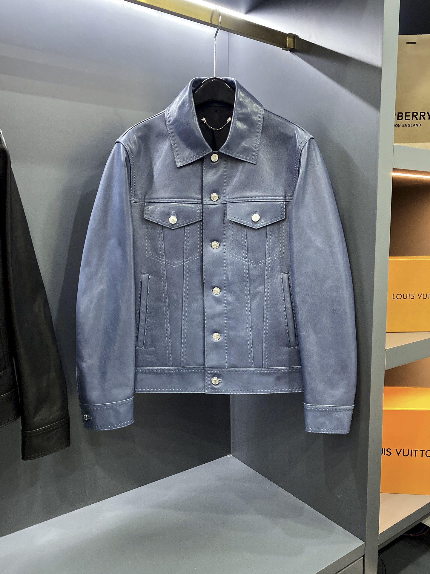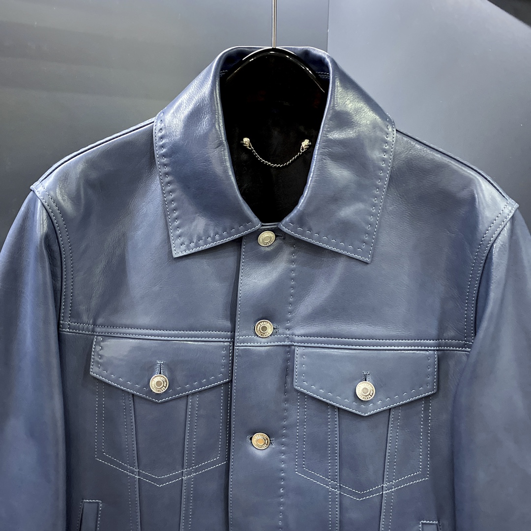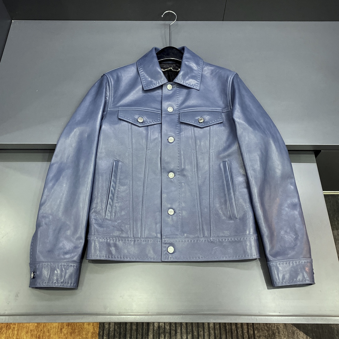 벨루티 램스킨 데님 파티나 가죽 블루종