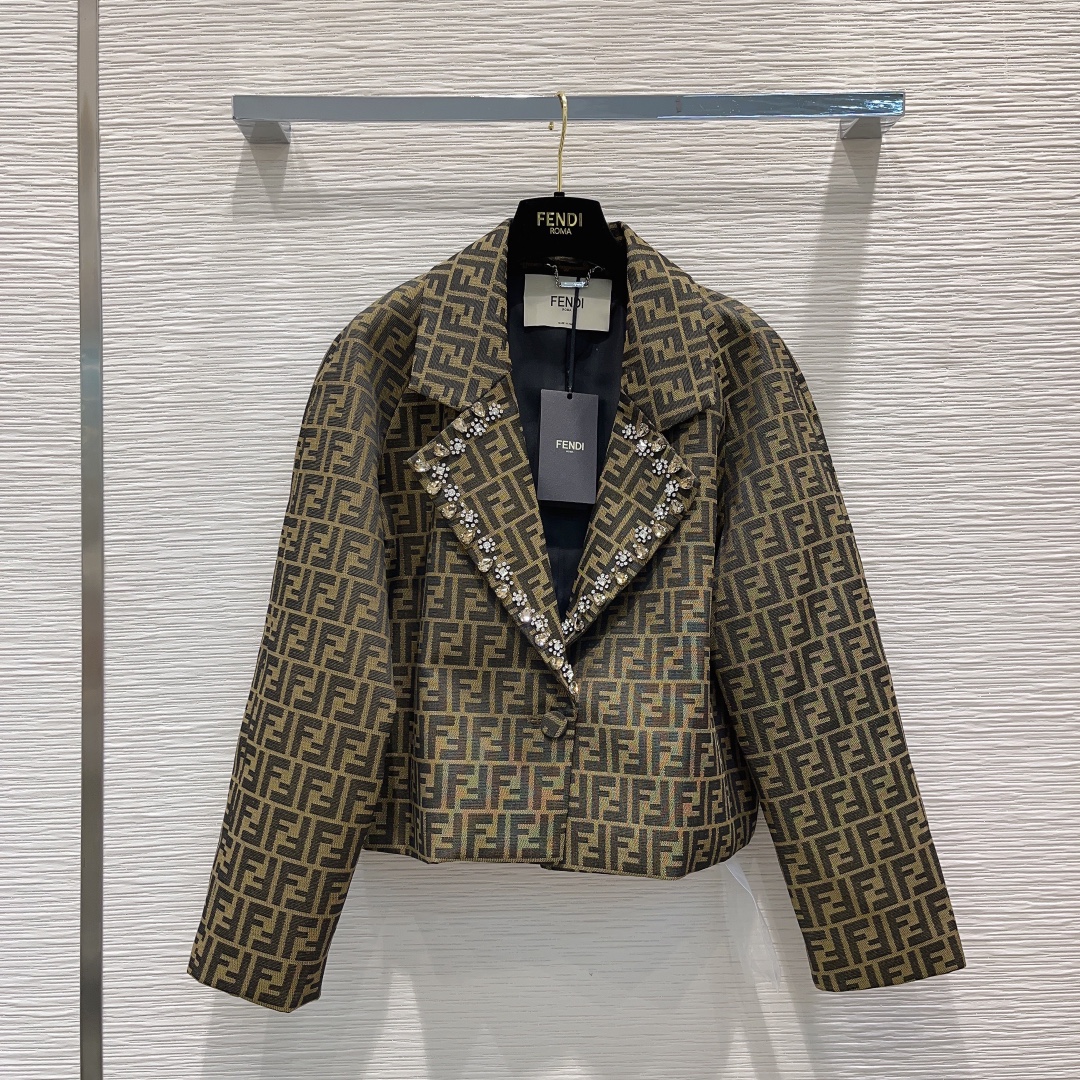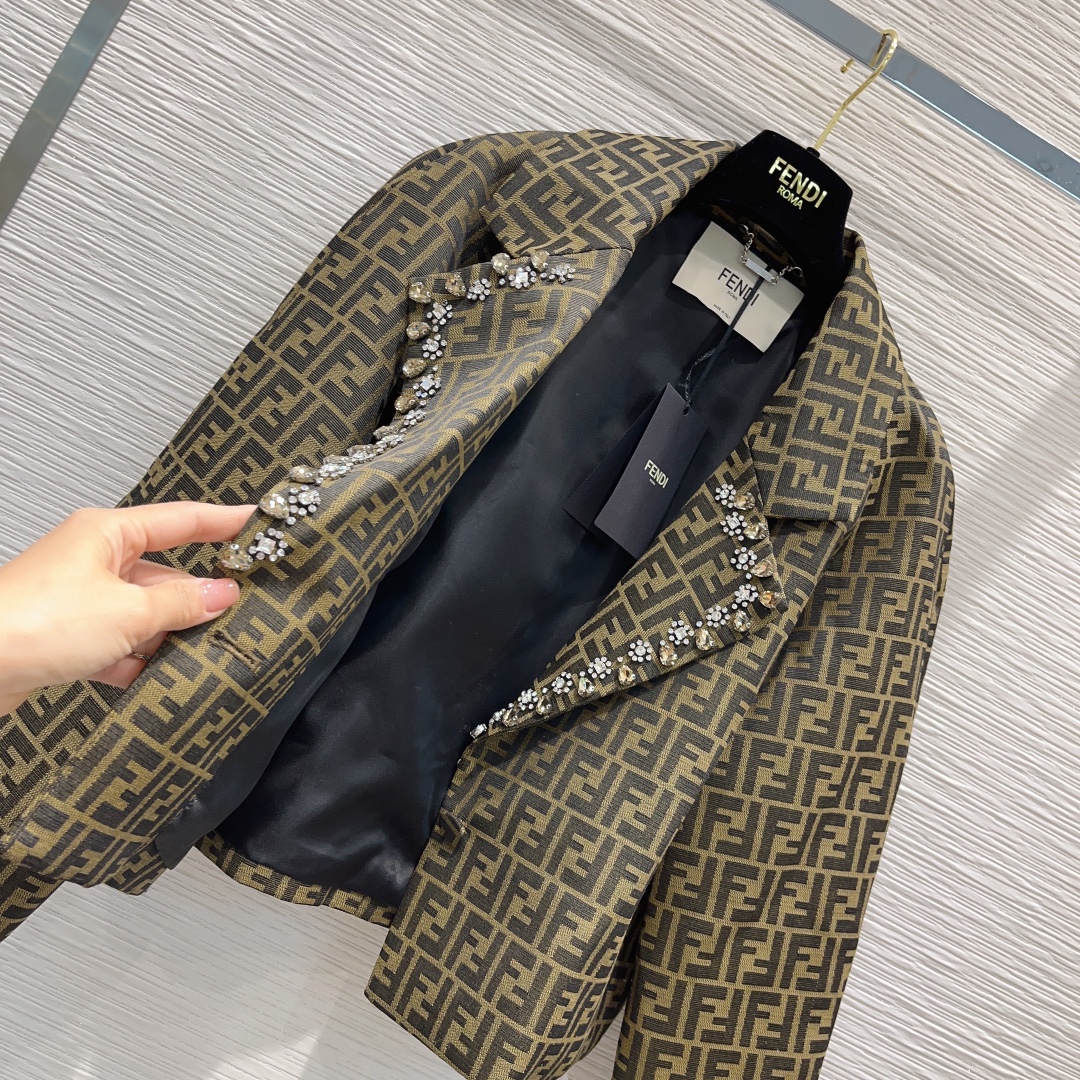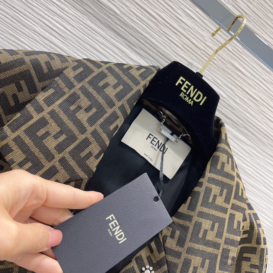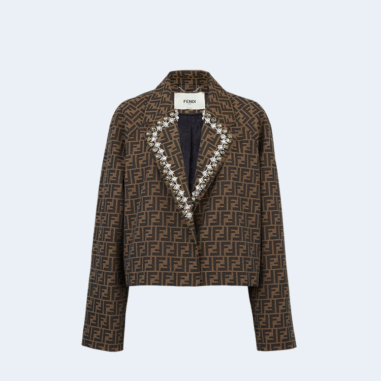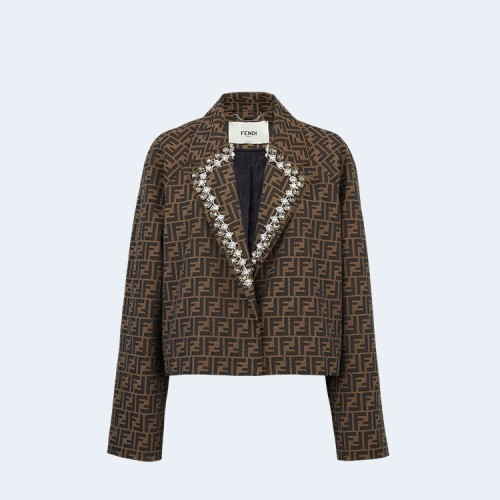 펜디 블랙 자카드 패브릭 블루종 자켓