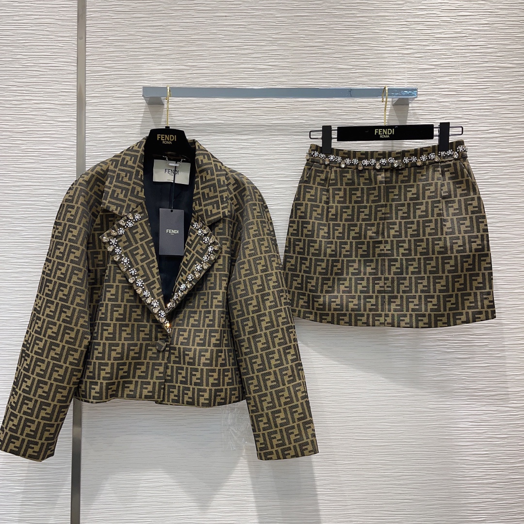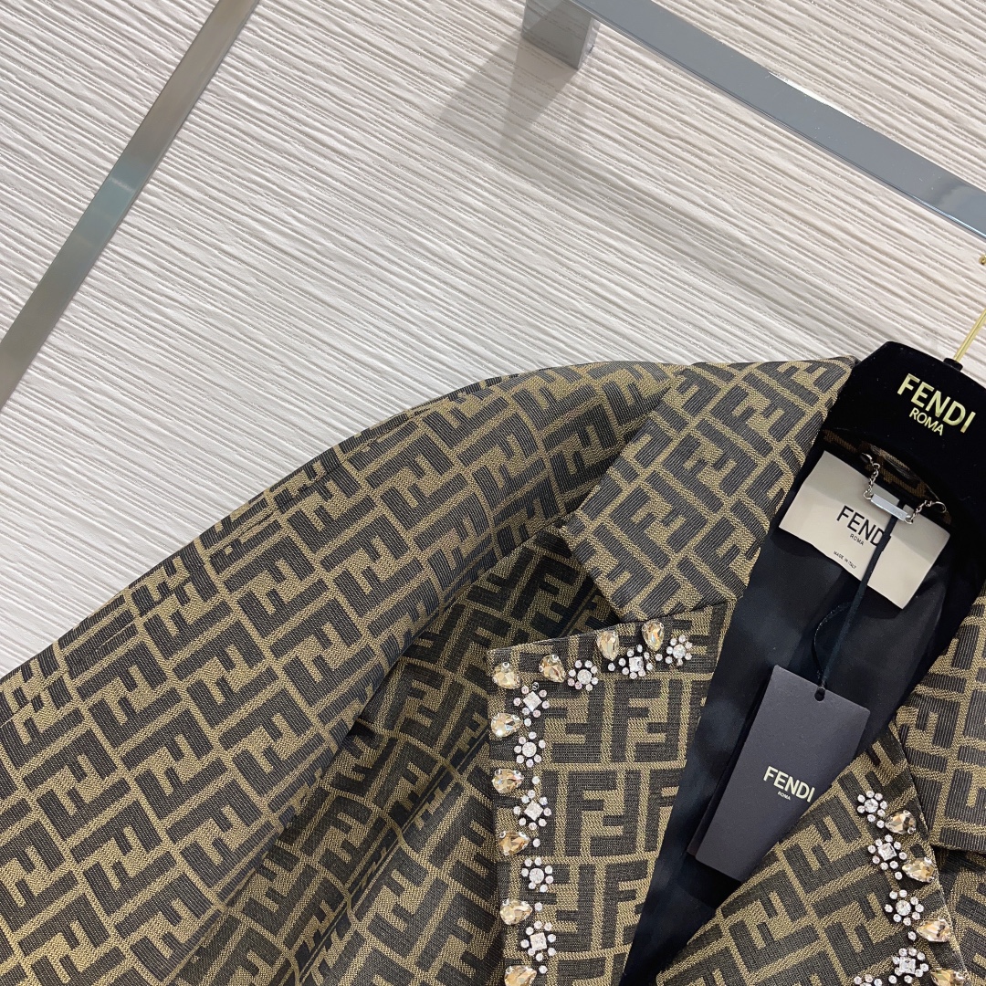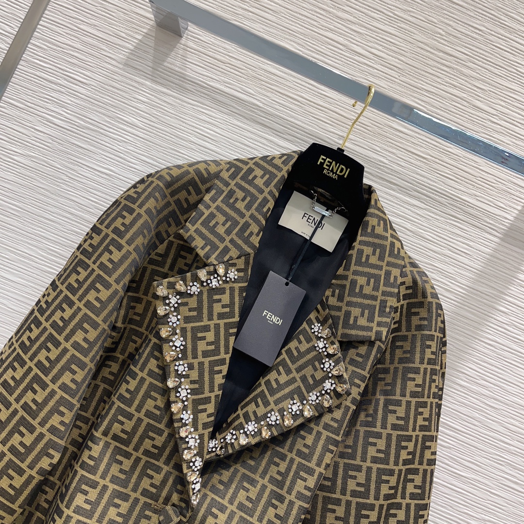 펜디 블랙 자카드 패브릭 블루종 자켓