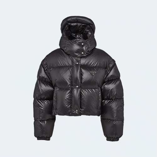 프라다 리나일론 컨버터블 크롭 다운 재킷 블랙