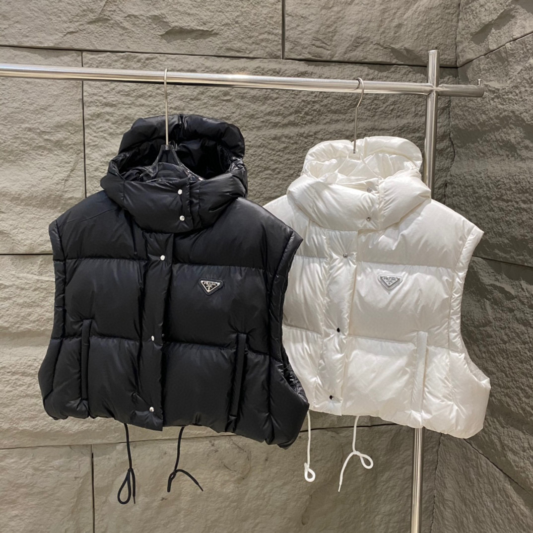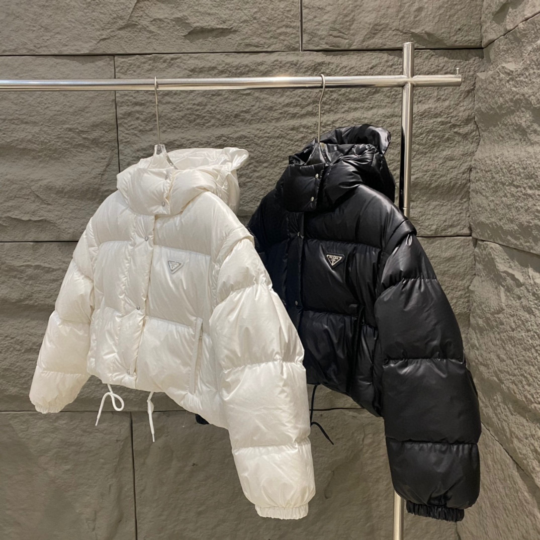 프라다 리나일론 컨버터블 크롭 다운 재킷 화이트