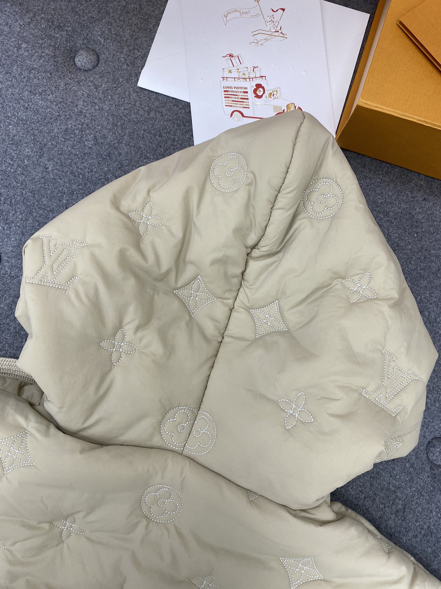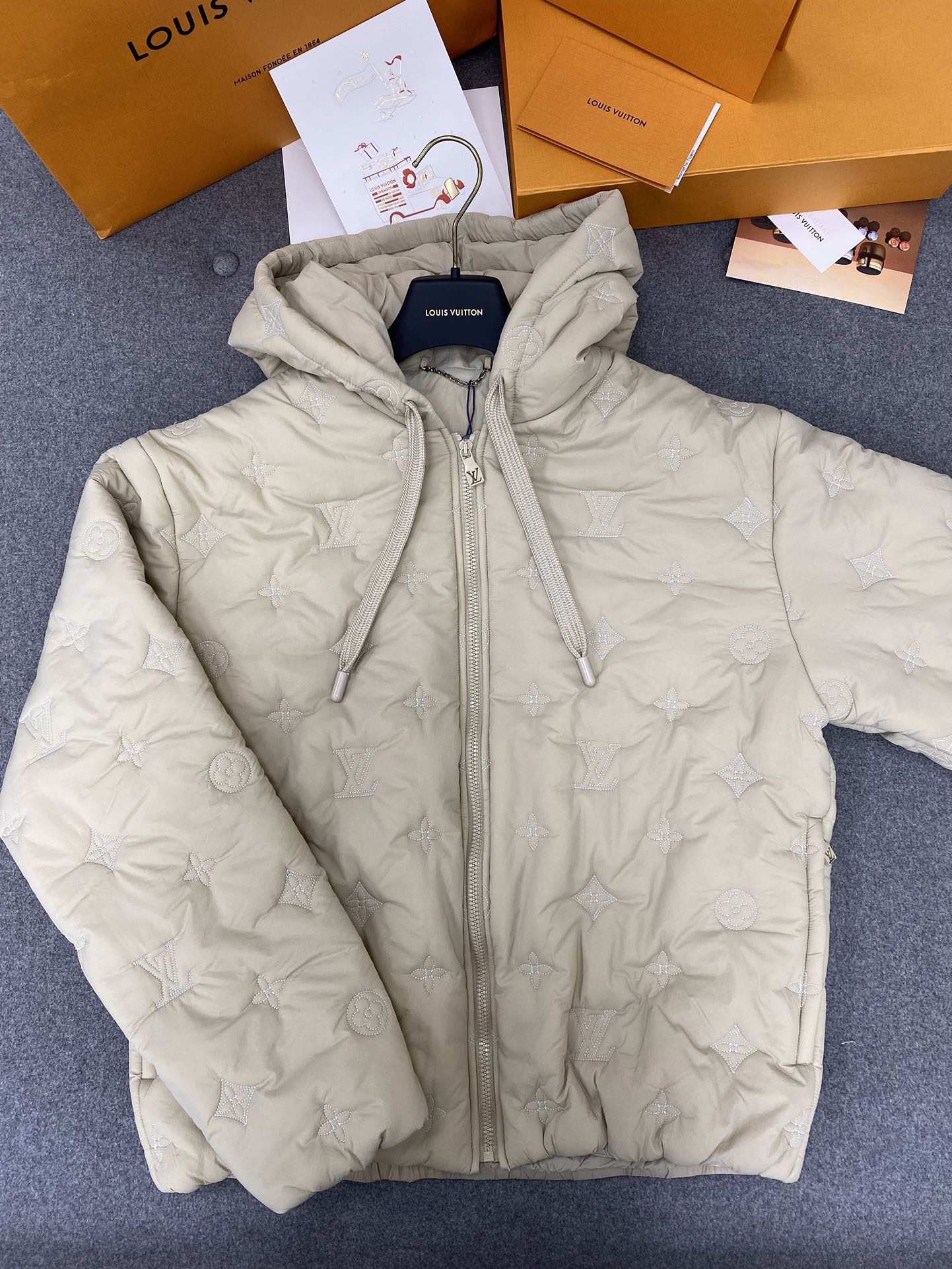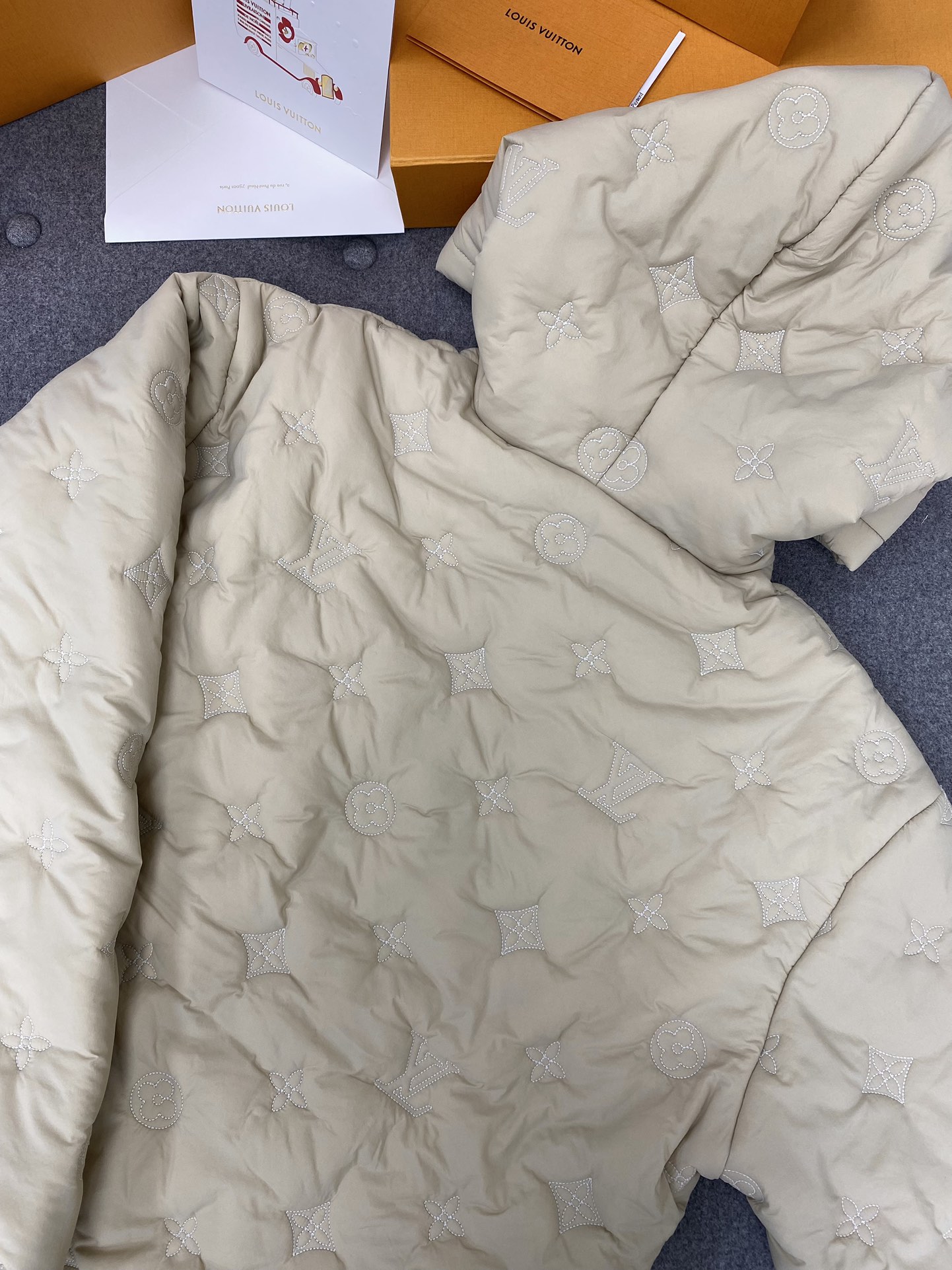 루이비통 모노그램 보이후드 푸퍼 자켓 그레이
