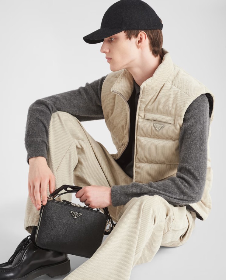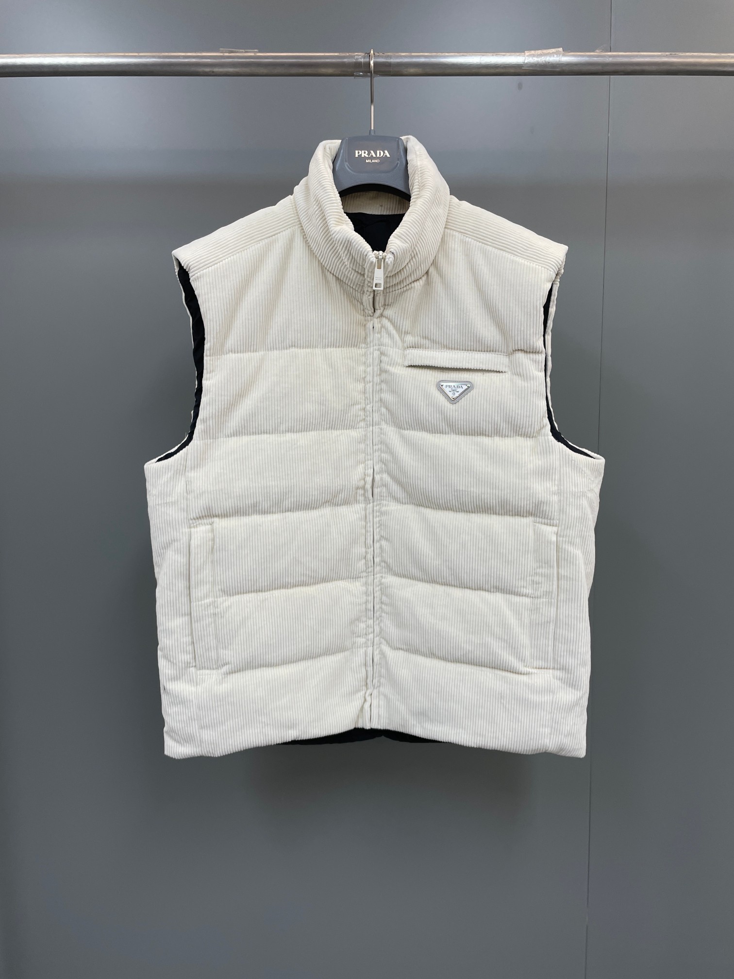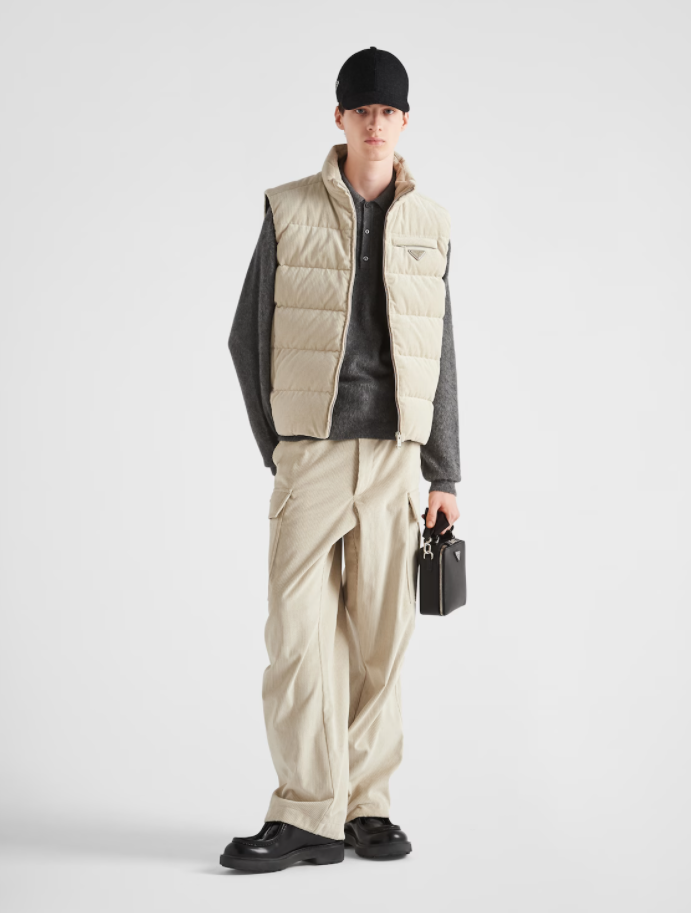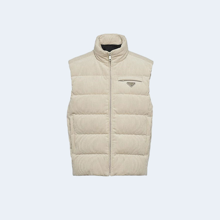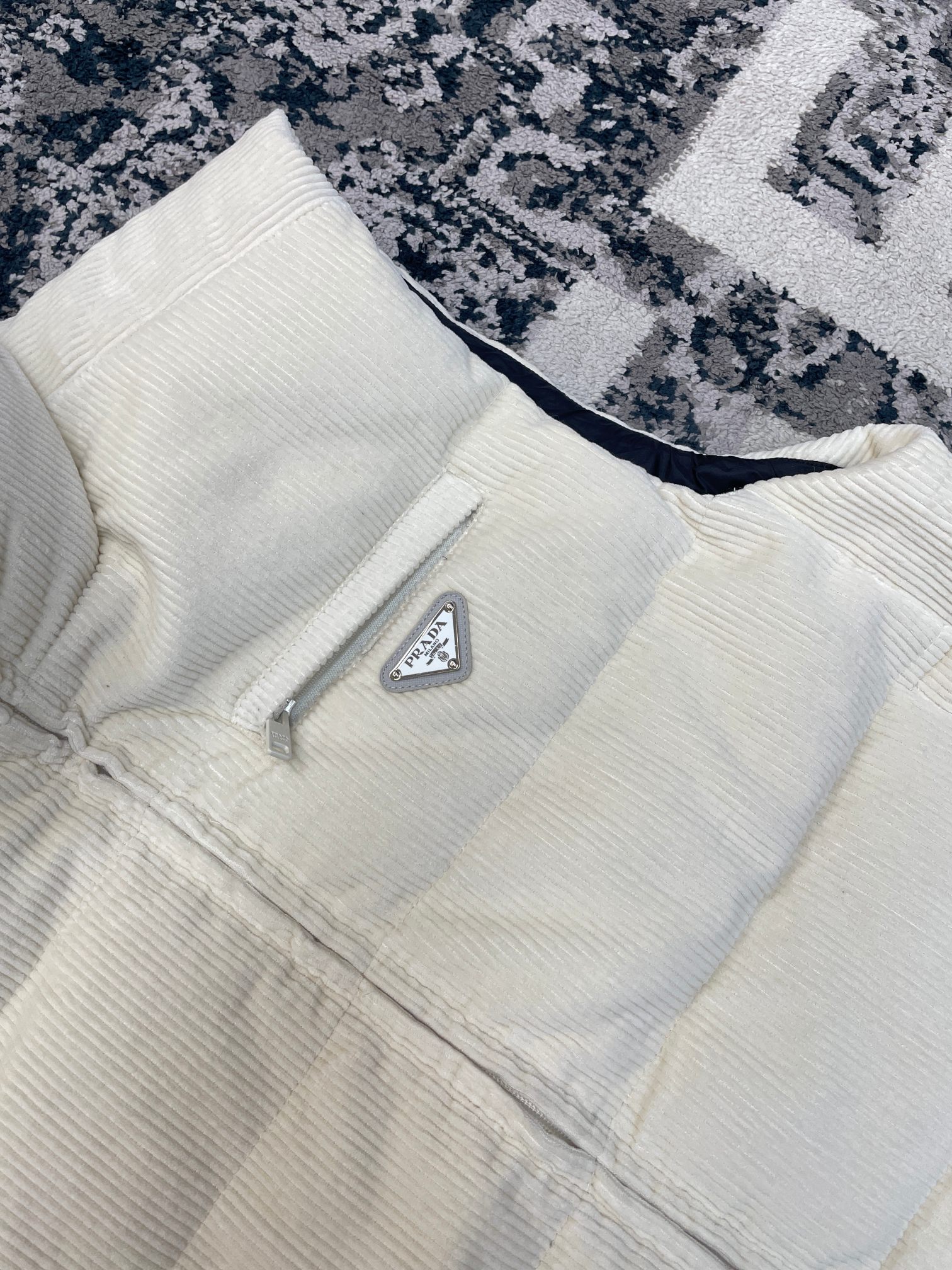 프라다 크롭 코듀로이 다운 패딩 베스트