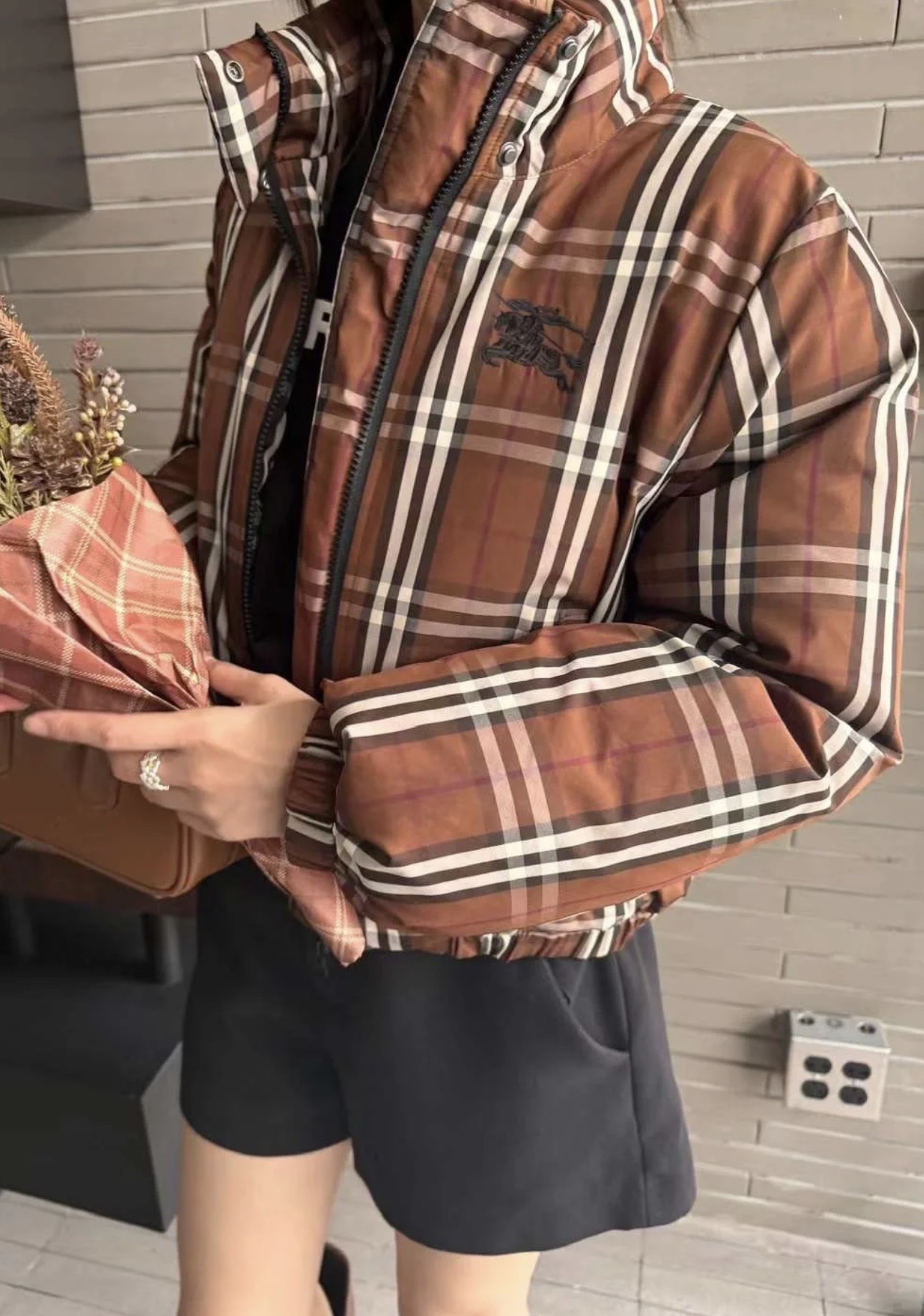 버버리 크롭 체크 나일론 퍼퍼 자켓