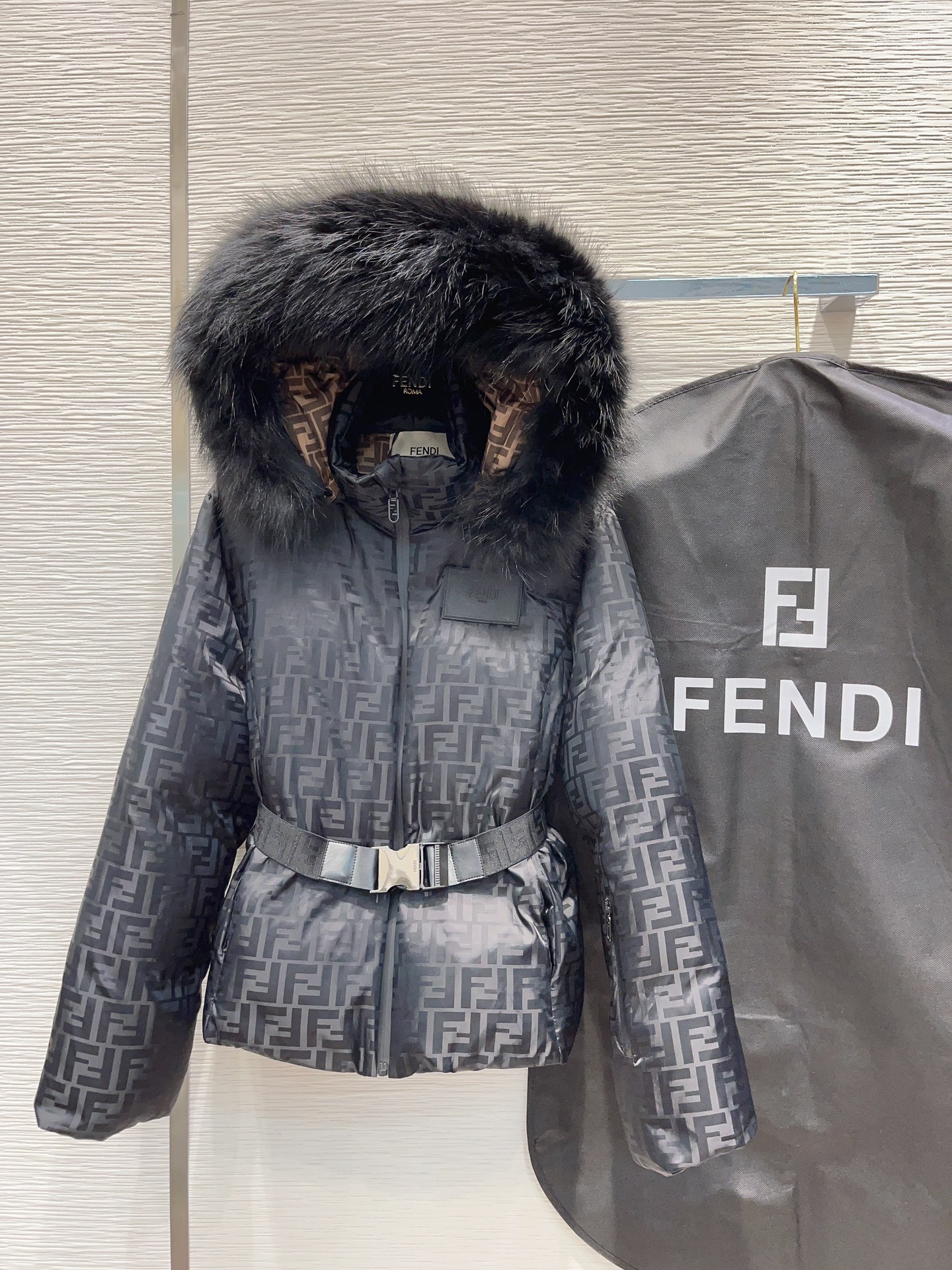 펜디 블랙 FF 나일론 다운 스키 자켓