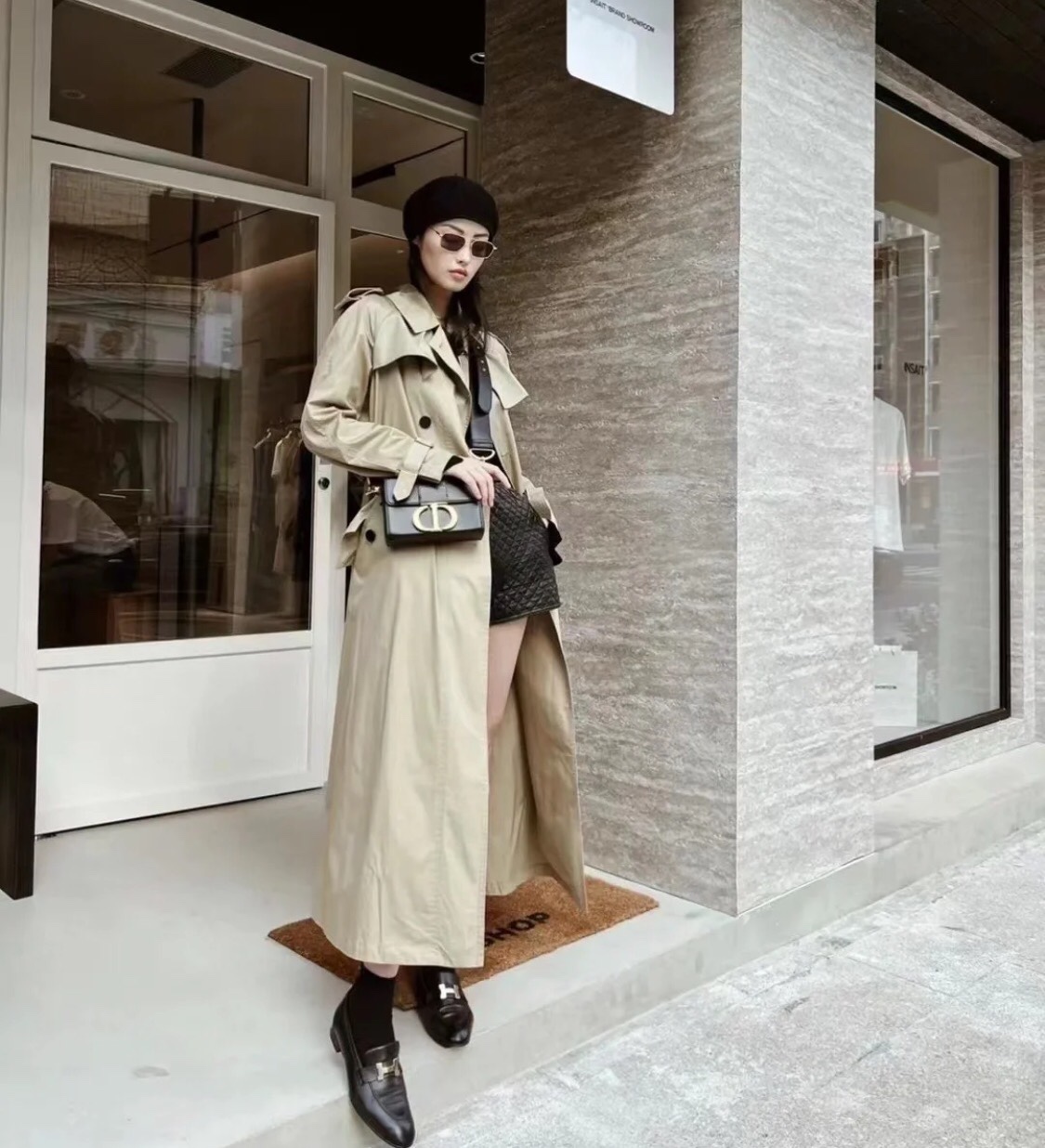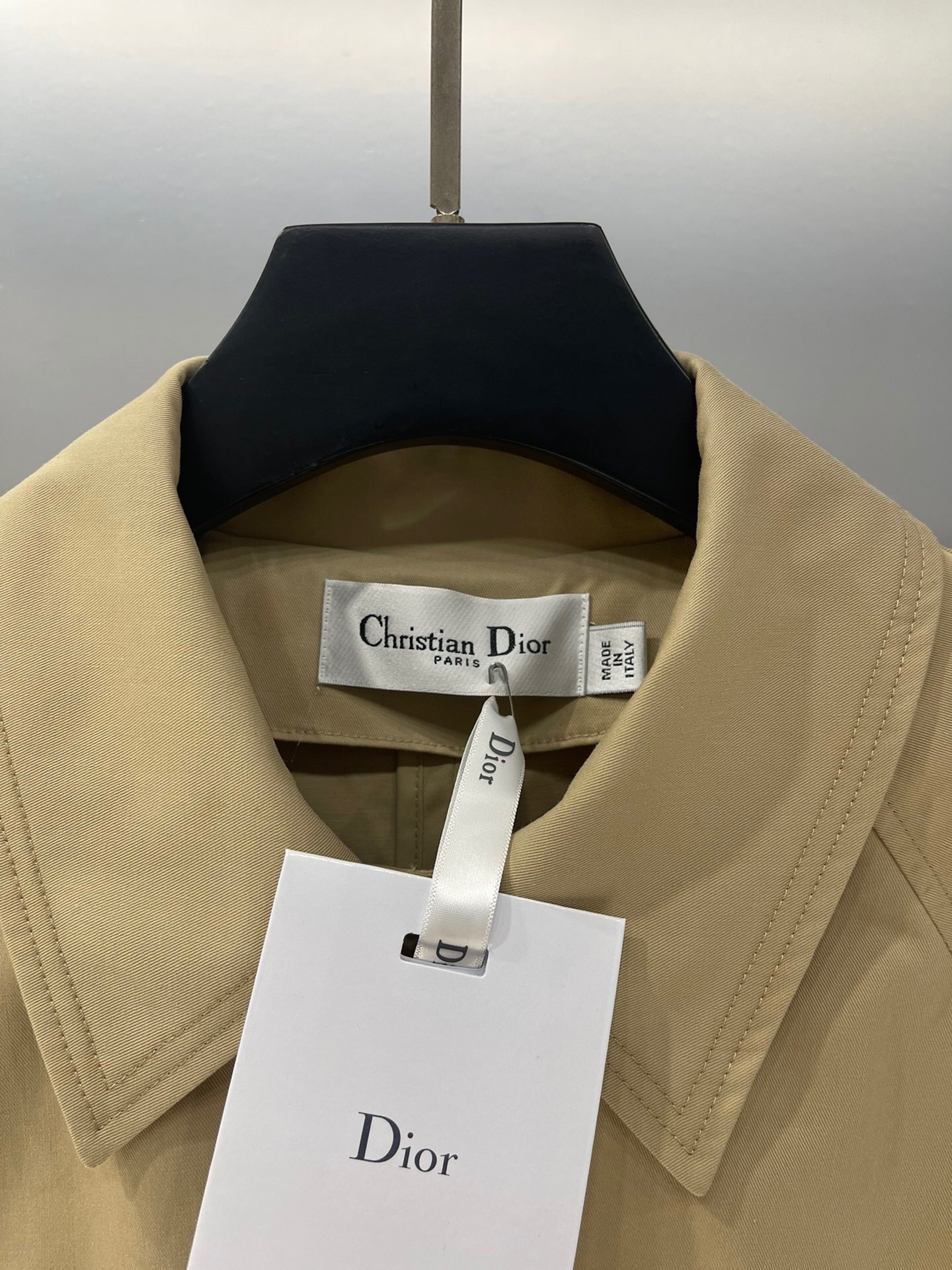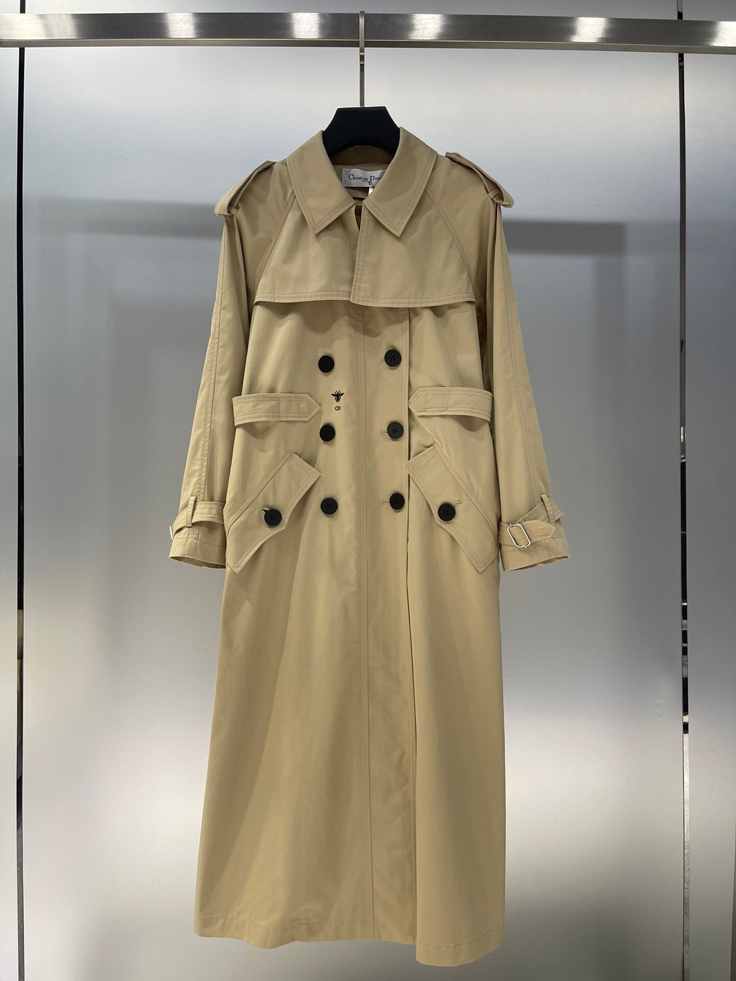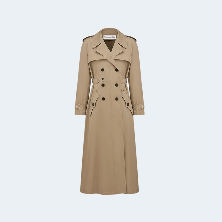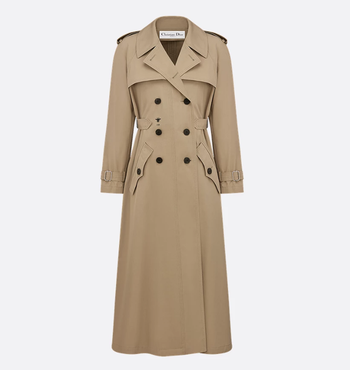 디올 베이지 코튼 개버딘 트렌치 코트