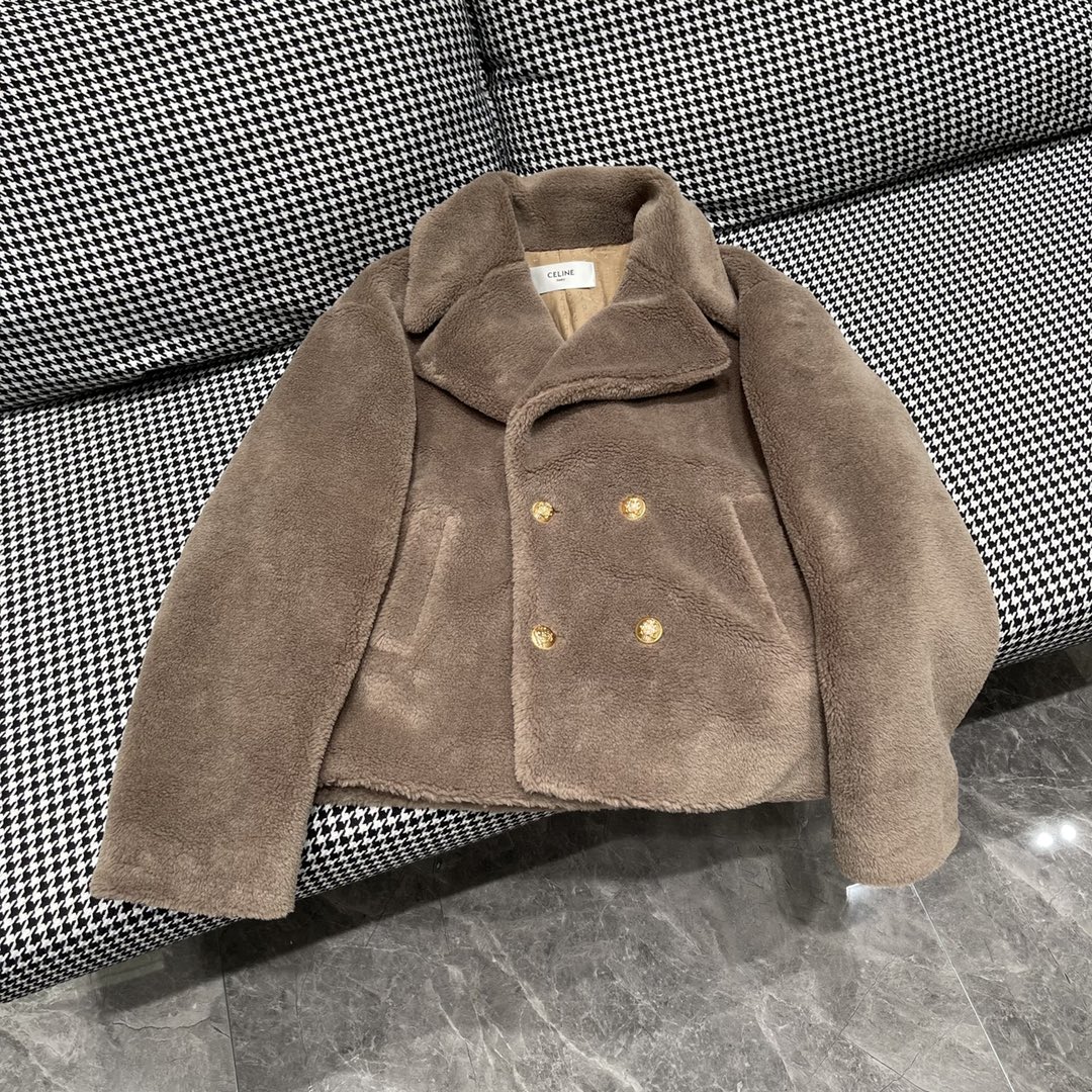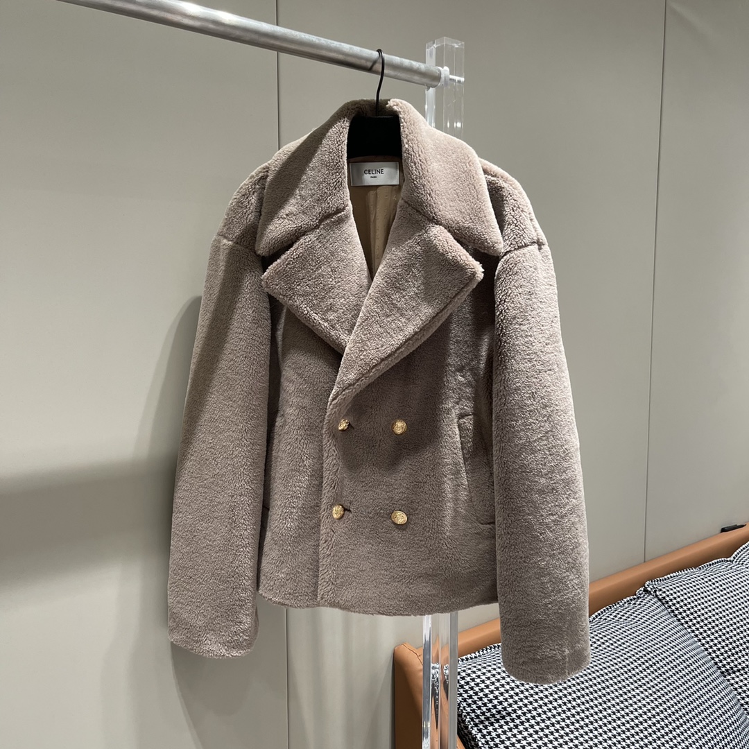셀린느 퍼 이펙트 실크 울 크롭 피코트
