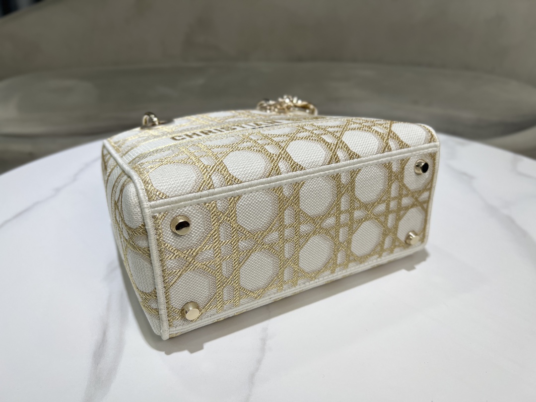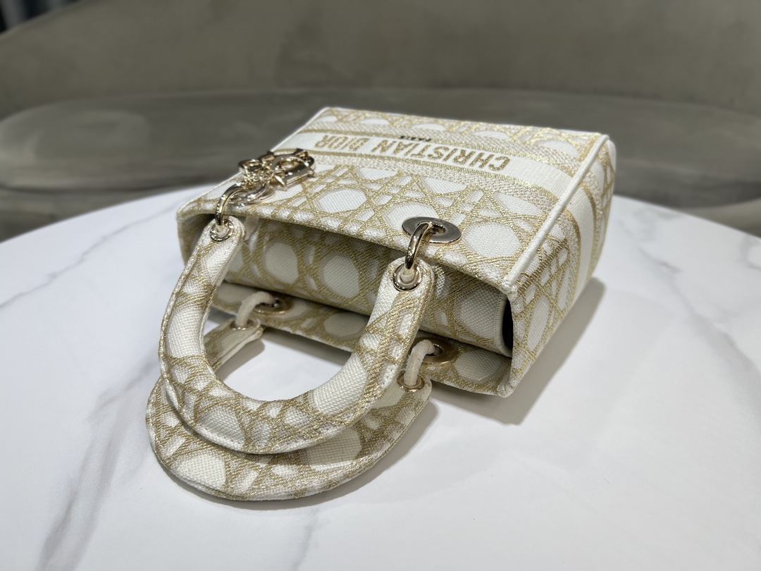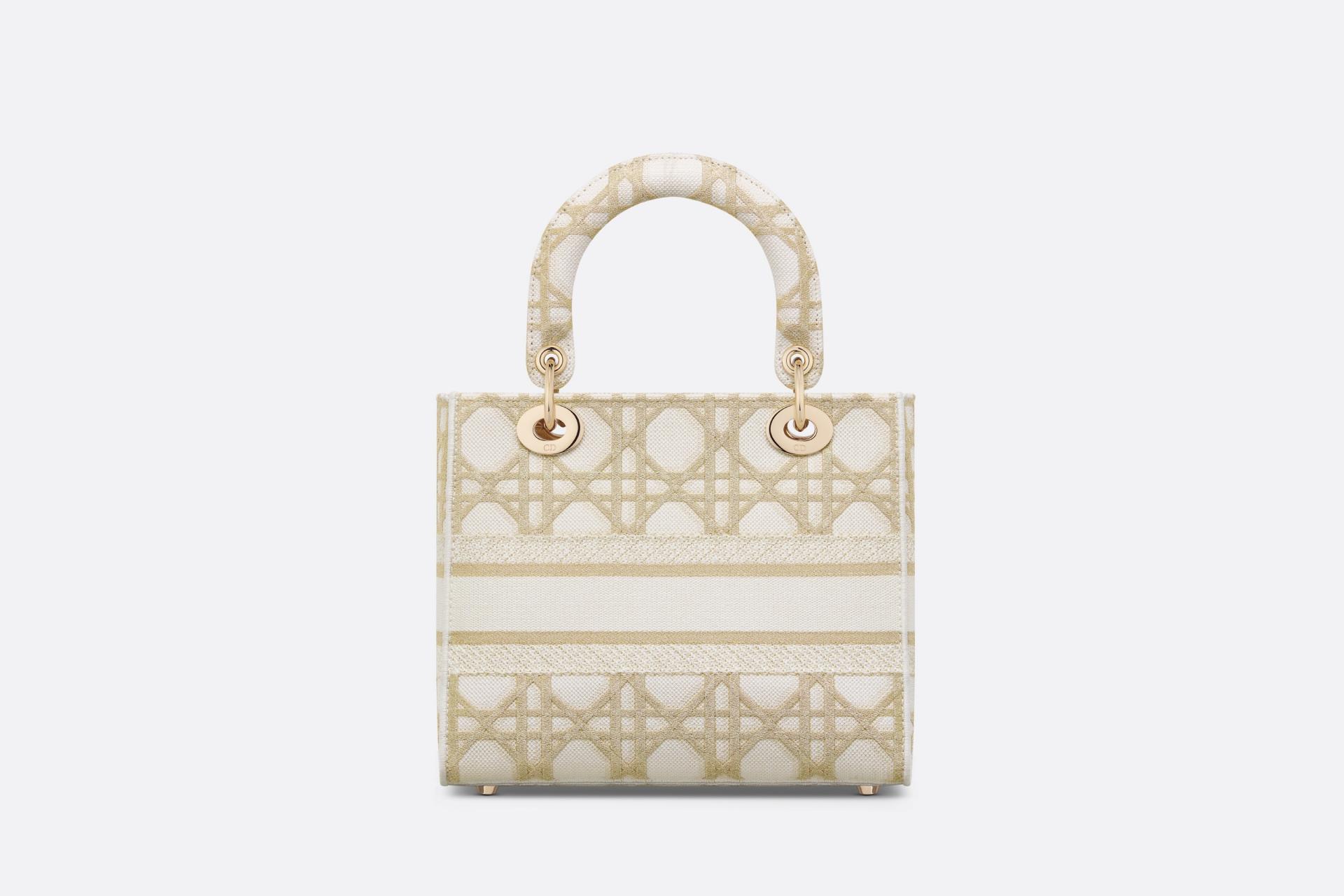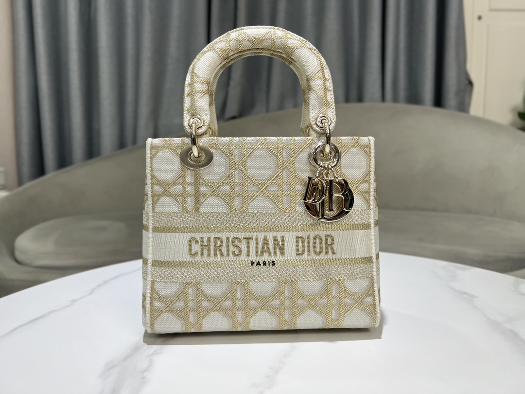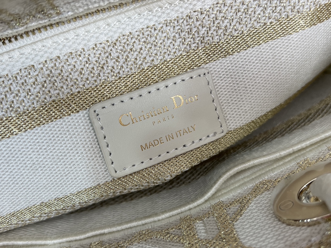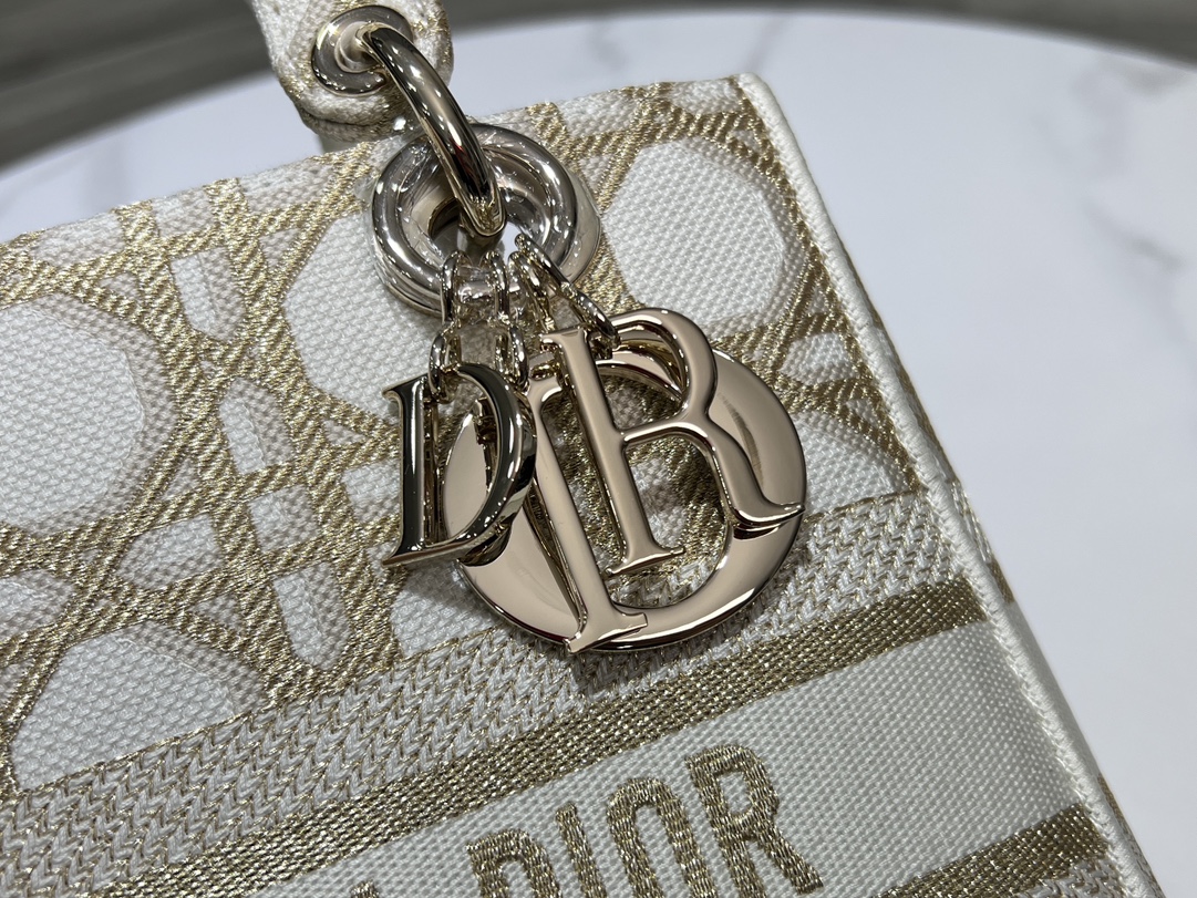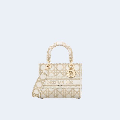 디올 레이디 D-Lite 화이트 골드 매크로까나쥬 자수 미디엄 백